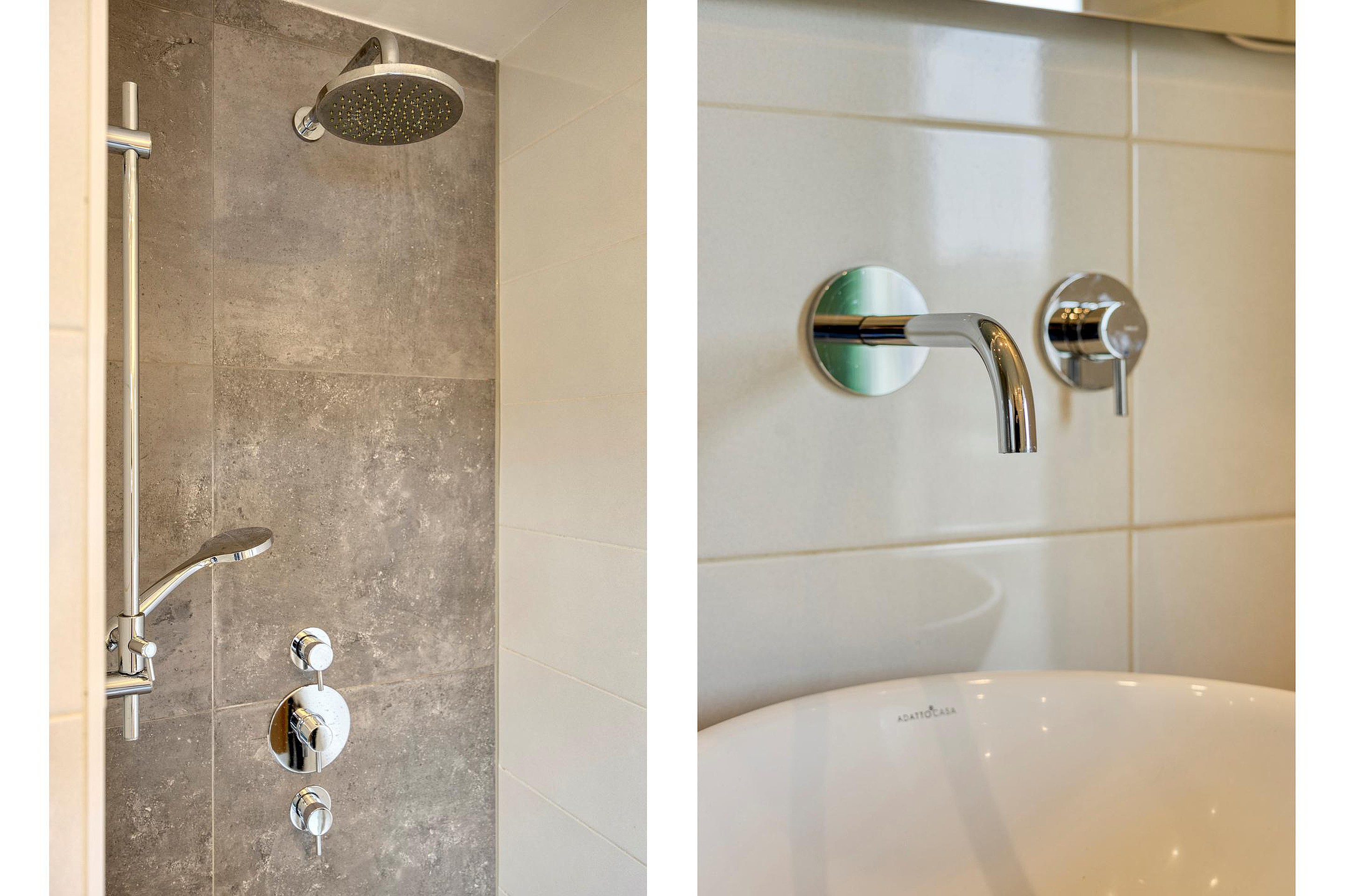 Ruime overloop met drie goed bemeten slaapkamers en een moderne badkamer met inloopdouche, wastafelmeubel en tweede hangend toilet. Vanuit de badkamer en de achter slaapkamer is er toegang tot een royaal dakterras, ideaal voor bijvoorbeeld de was. 2 kamers zijn groot genoeg voor 2 persoonsbedden, de 3e is ideaal als werkkamer of babykamer. Opnieuw zie je op deze etage hier veel originele details terug. Door naar de zolder.