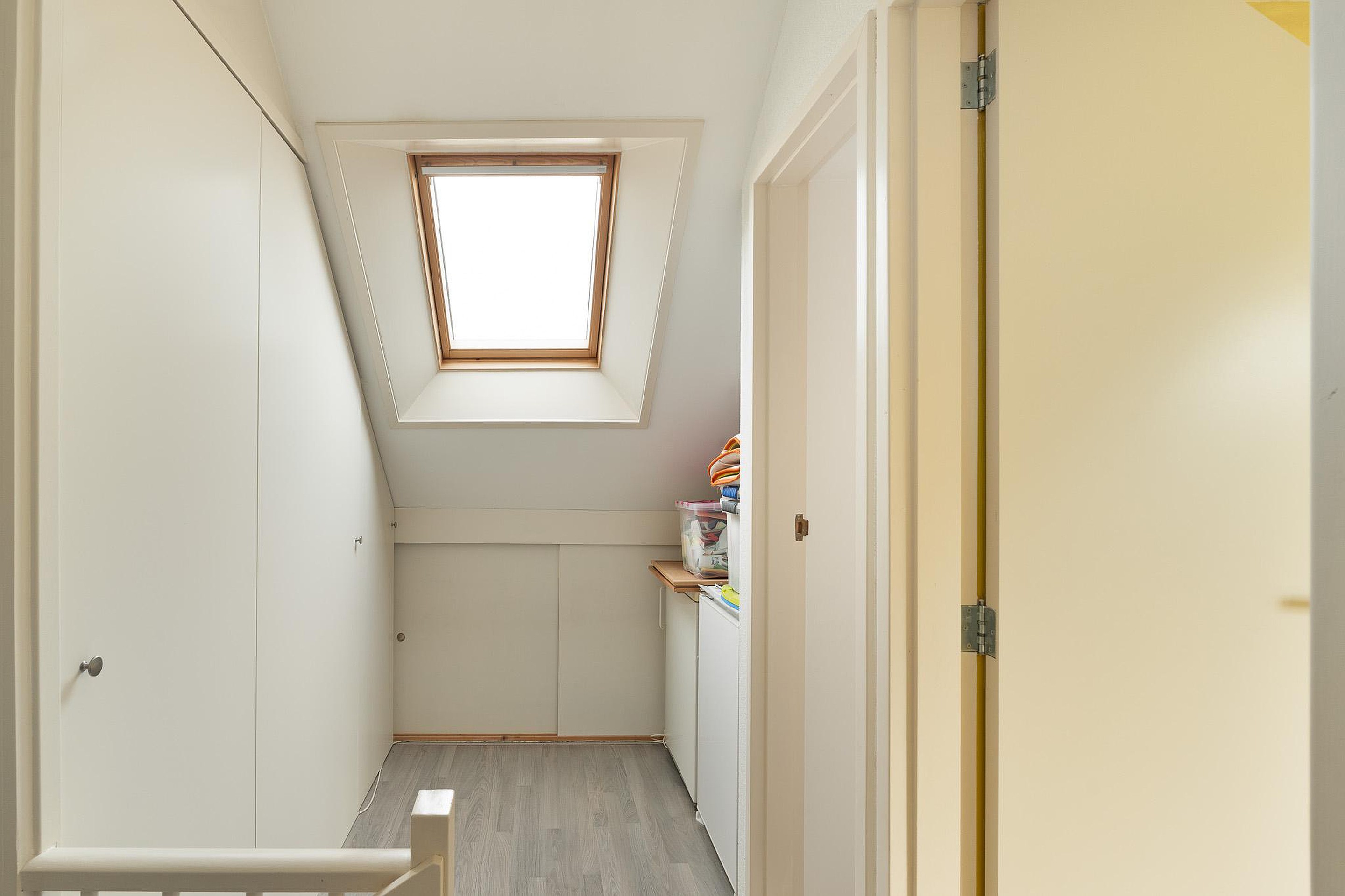 De tweede verdieping is praktisch ingedeeld en verrassend ruim. Op de overloop bevinden zich vaste kasten en de opstelling van de CV-ketel (2011). Ook hier ligt een laminaatvloer die doorloopt over de gehele verdieping.