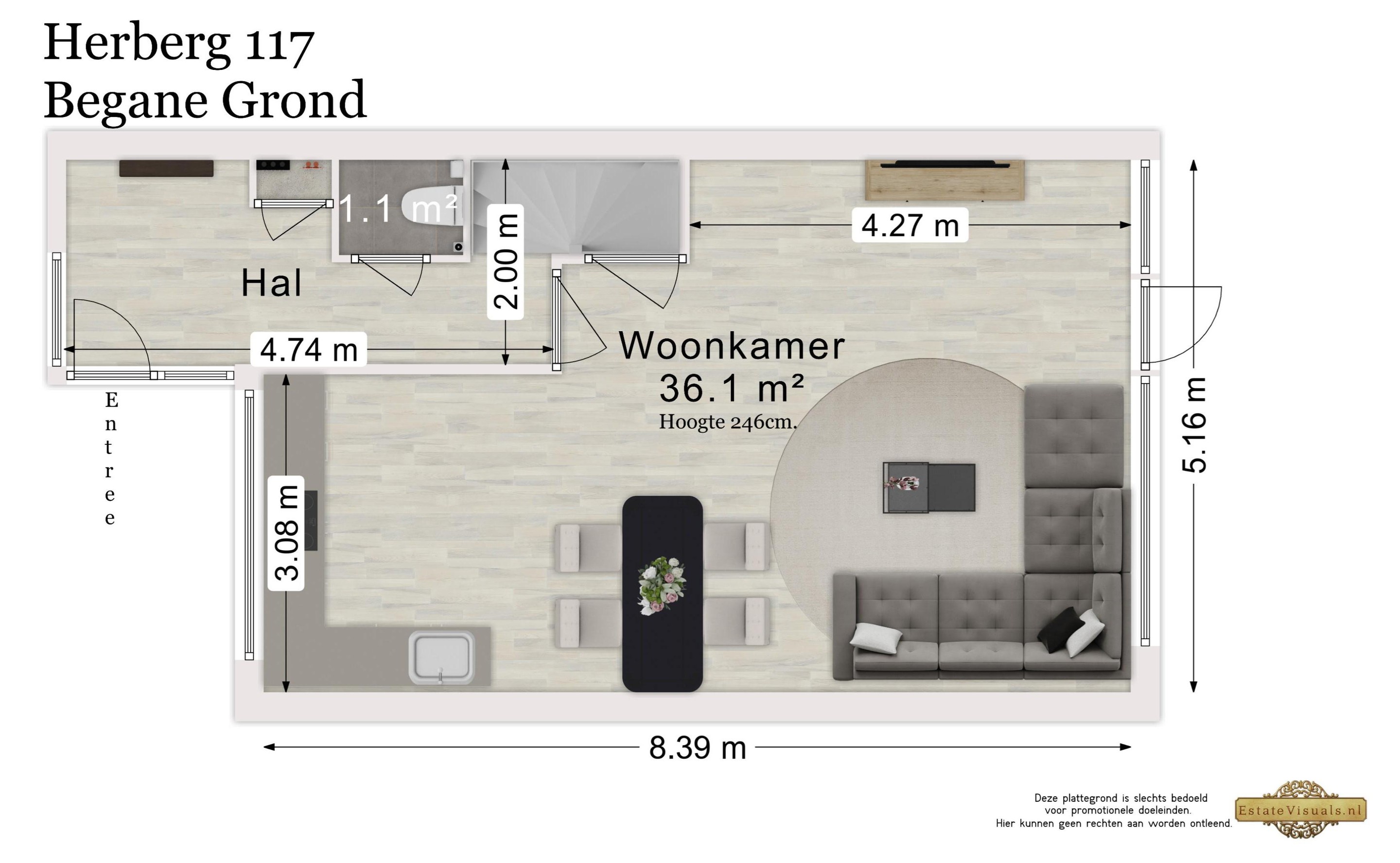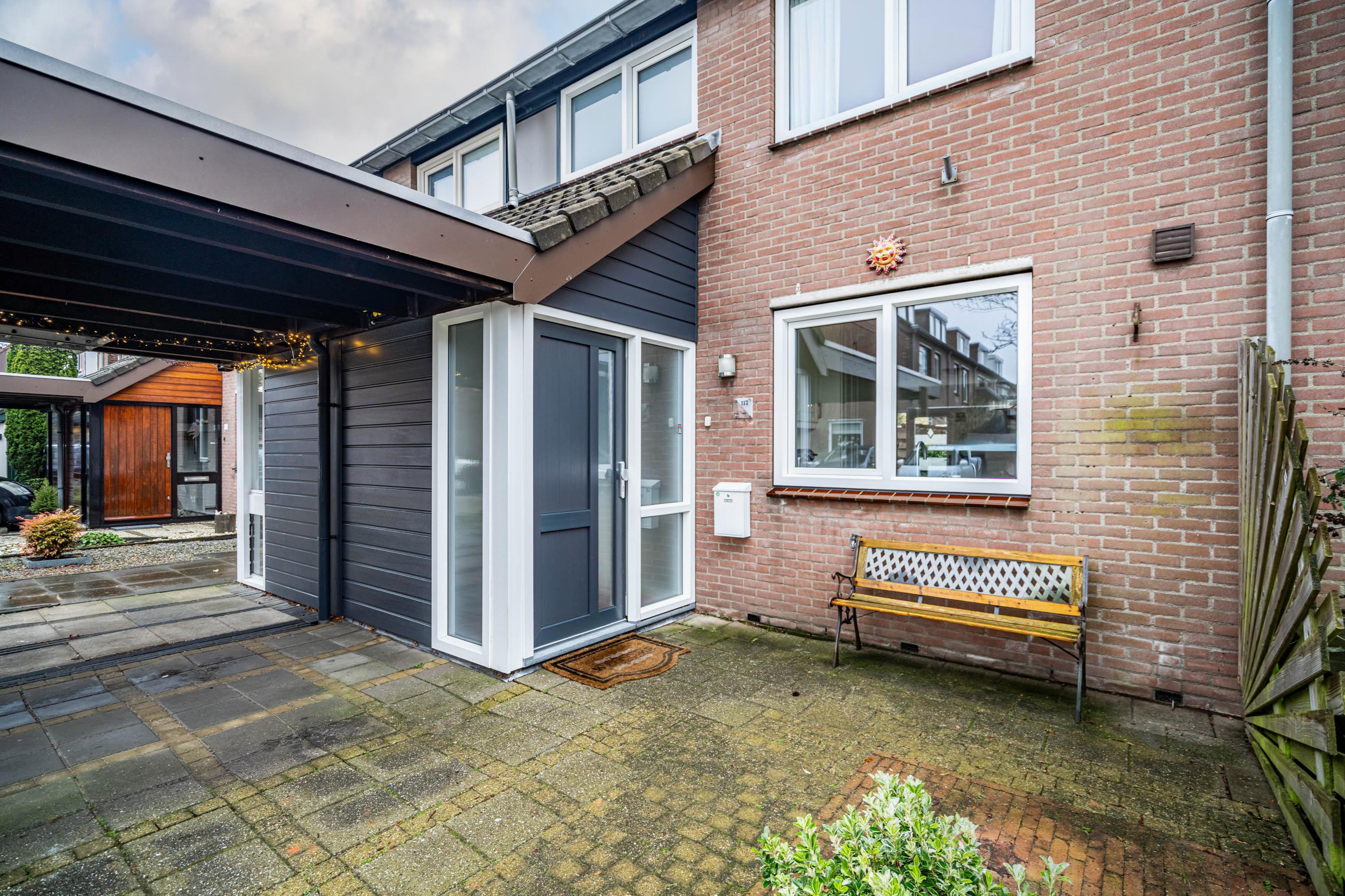 Voortuin met carport, ruime hal met meterkast, toilet met fonteintje en een lichte woon-eetkamer met trapkast. De keuken bevindt zich aan de voorzijde van de woning en biedt veel kastruimte en alle benodigde inbouwapparatuur. De gehele begane grond is voorzien van een fraaie tegelvloer.