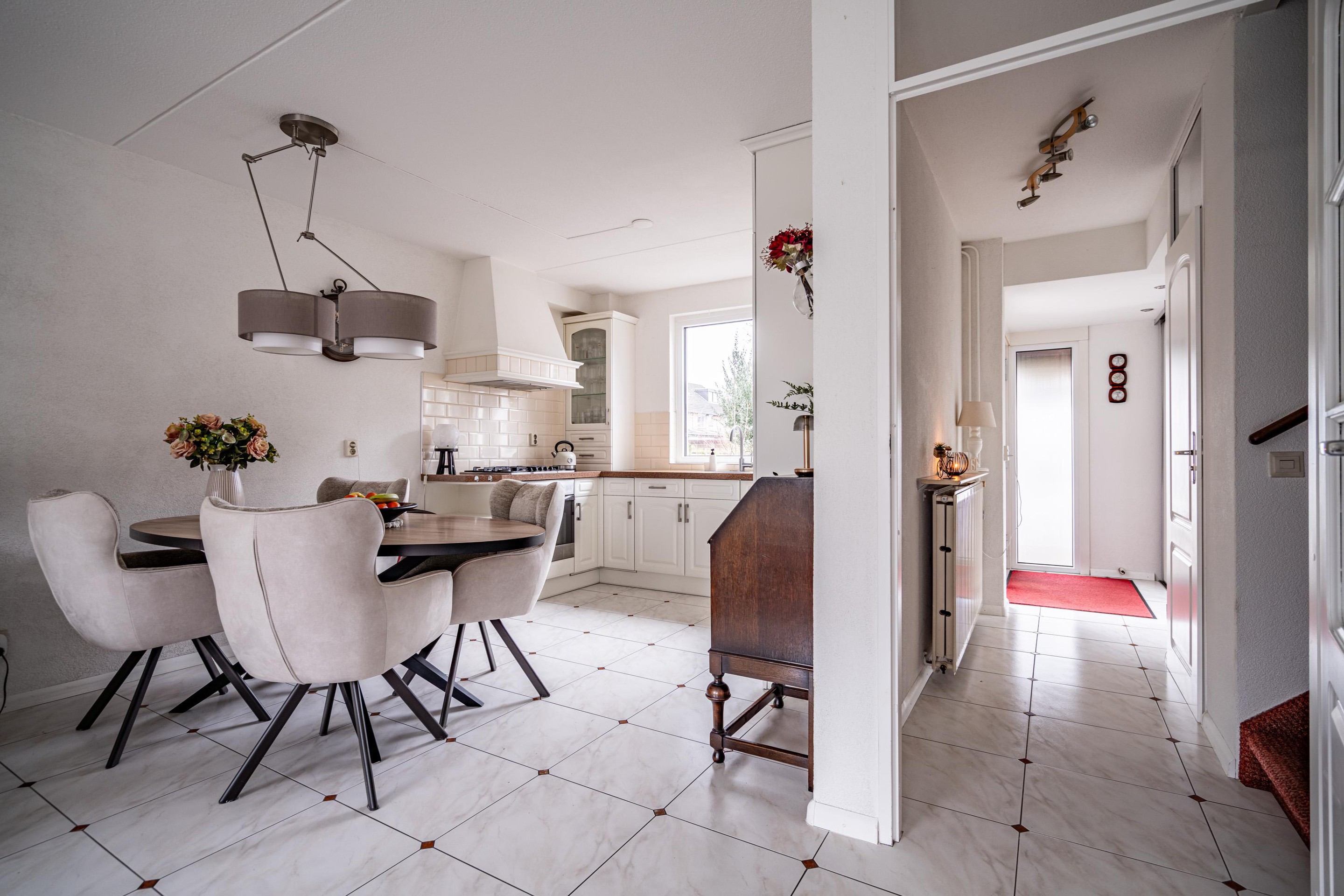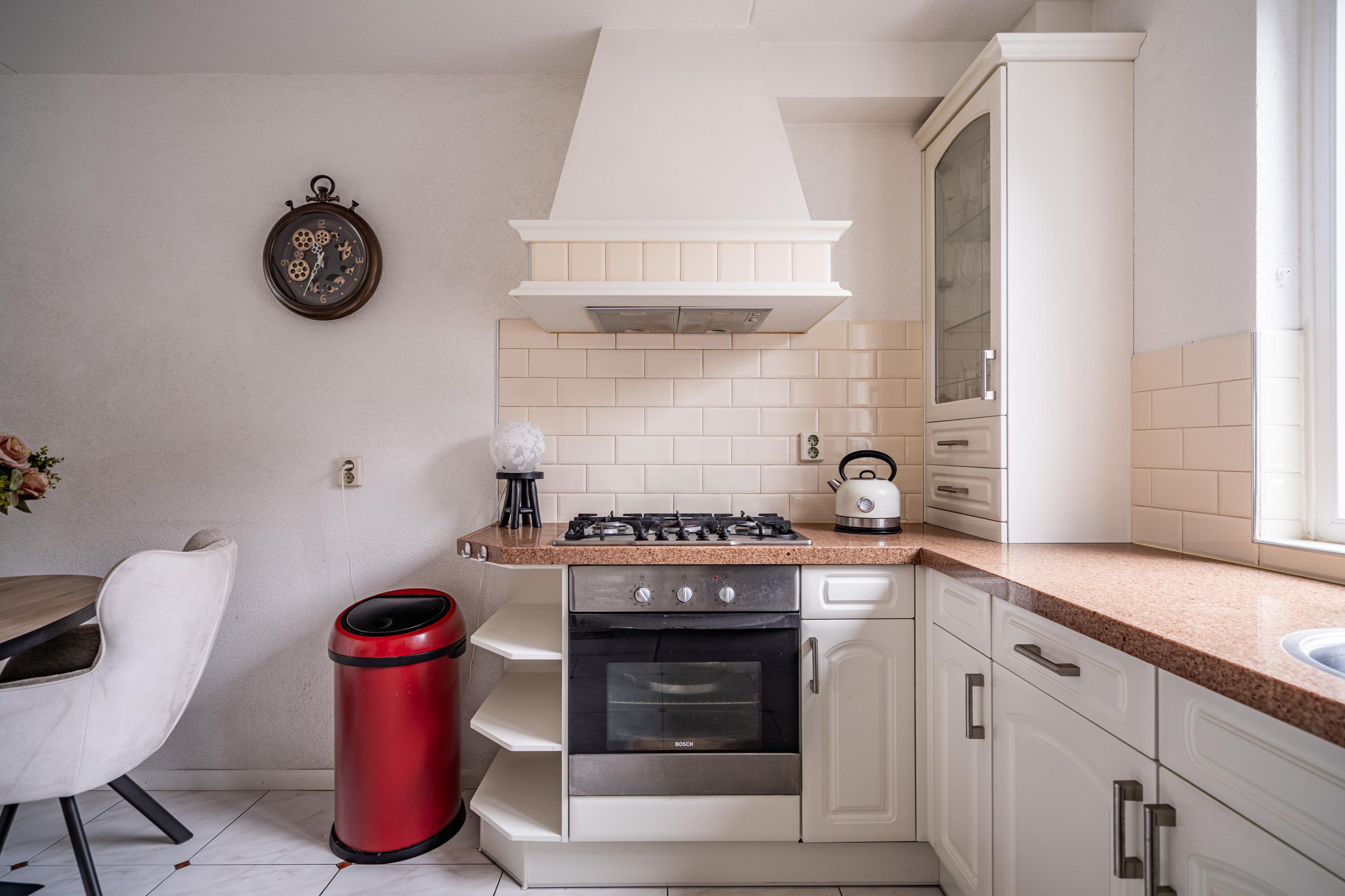 Bij binnenkomst ervaar je direct de prettige indeling en het ruime gevoel. De woning beschikt over een royale woon- en eetkamer met een open U-vormige keuken, compleet uitgerust met diverse inbouwapparatuur zoals een kookplaat, afzuigkap, oven, vaatwasser (2025) en een koelkast met vriezer (2025). Via de woonkamer heb je toegang tot de ruime achtertuin met stenen berging en een achterom.
