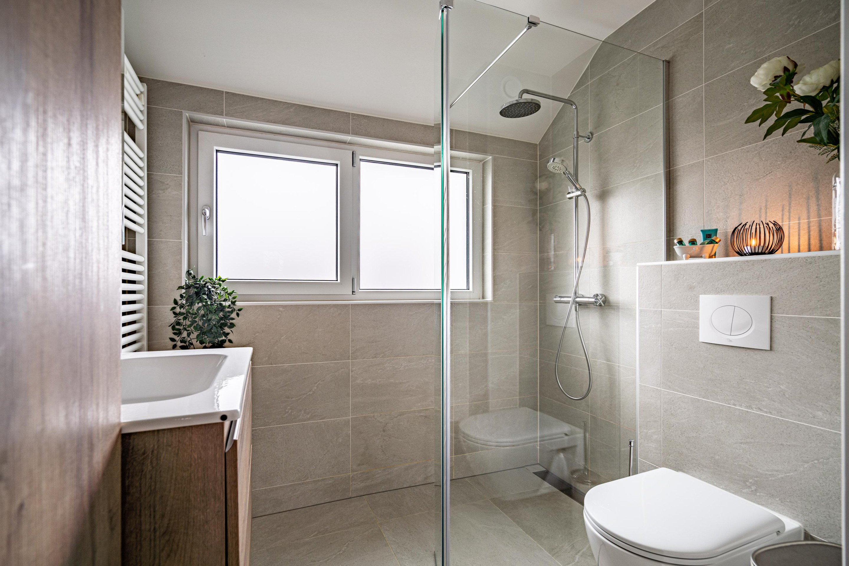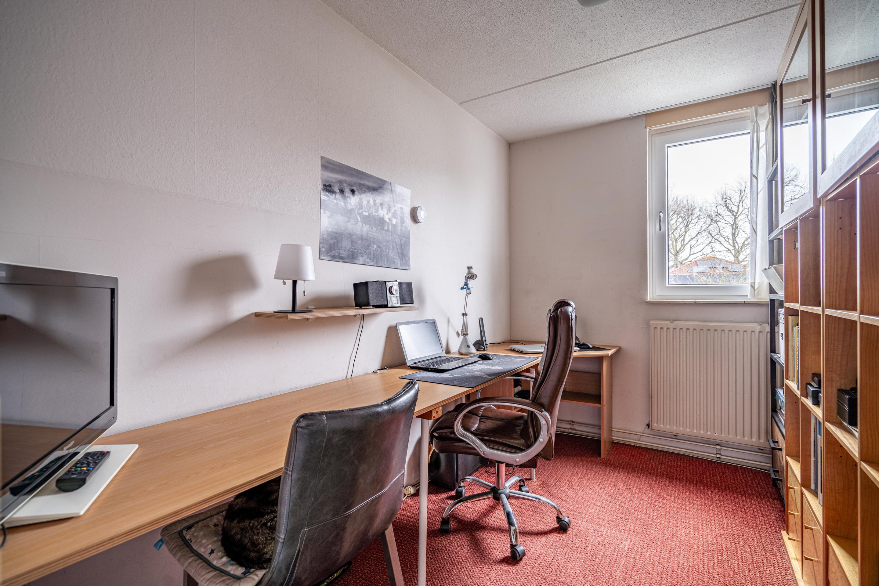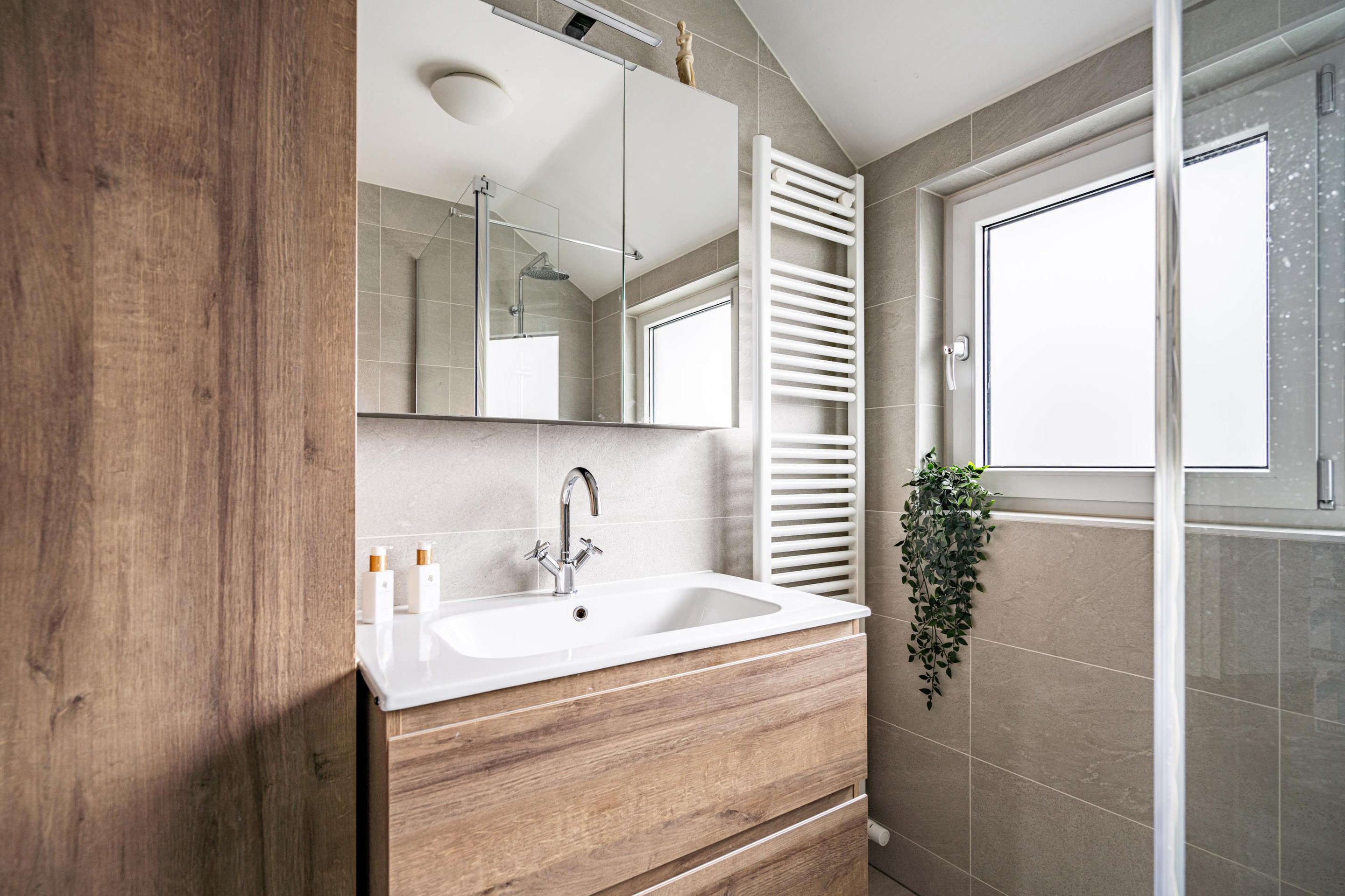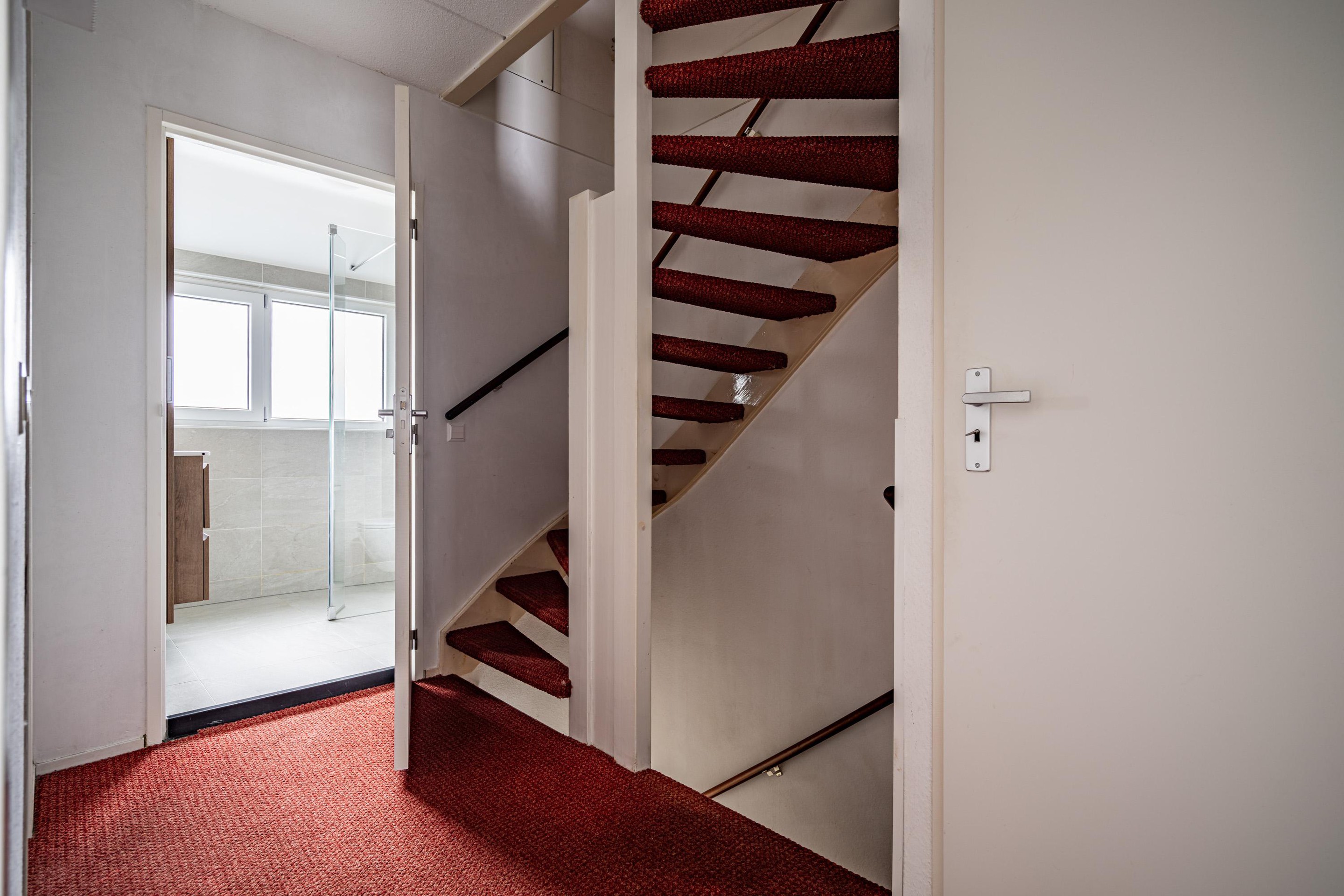 Eerste verdieping Overloop met vaste kast, twee ruime slaapkamers aan de voor- en achterzijde en een derde slaapkamer aan de achterzijde. De volledig betegelde badkamer aan de voorzijde beschikt over een inloopdouche, wastafelmeubel, handdoekradiator en een tweede toilet. Dankzij het grote raam is er veel natuurlijke lichtinval.