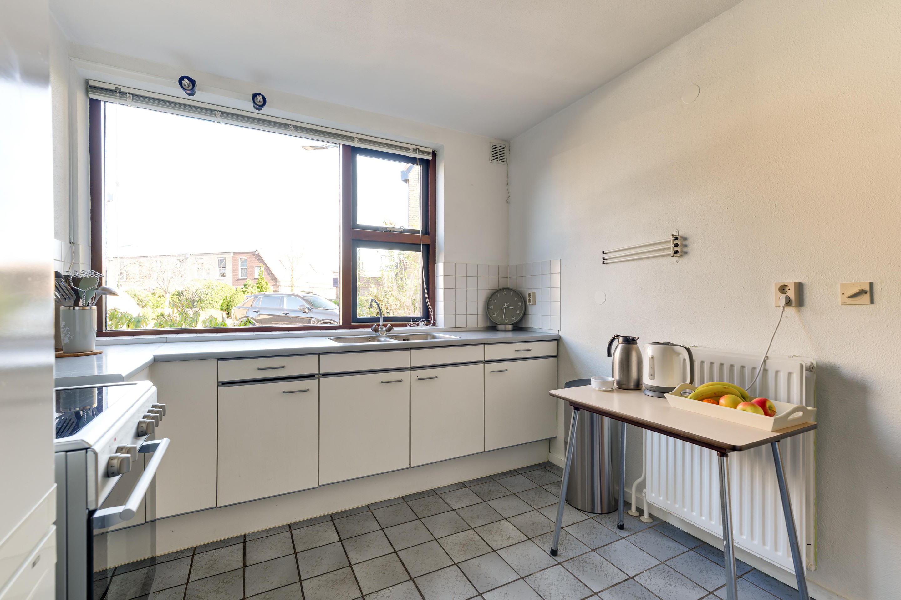 The living room is spacious and garden-facing: a wonderful living area where you come together after a long day, where children can play, and where you enjoy a view of a green oasis. The garden itself is notably large—perfect for children to play freely, for long summer days outdoors, or simply to create multiple pleasant seating areas.