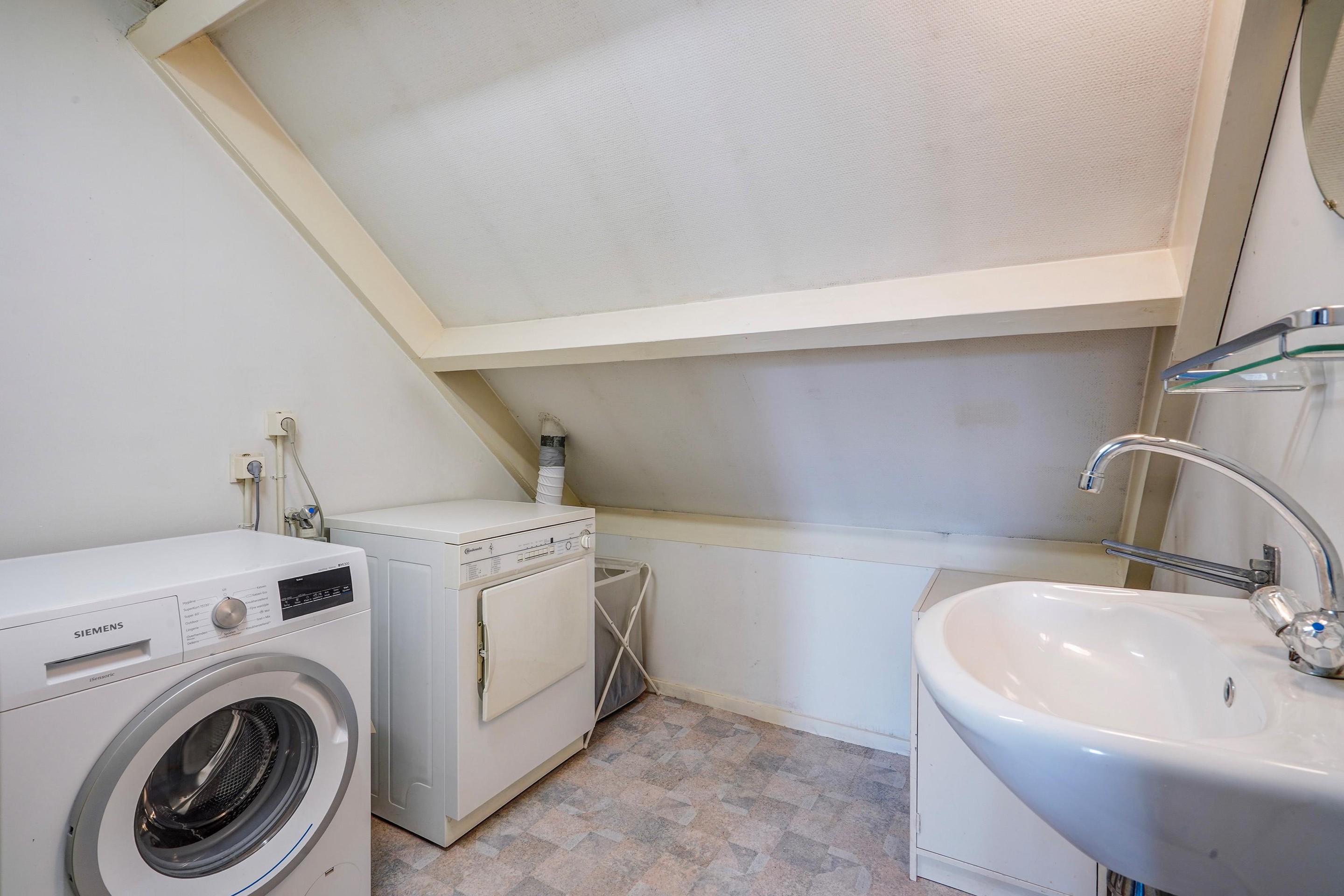 Overloop met bergruimte en toegang tot een derde slaapkamer. Aan de achterzijde is een dakkapel geplaatst, wat zorgt voor extra ruimte en licht. Tevens bevindt zich op deze verdieping een praktische wasruimte met de mogelijkheid tot het realiseren van een tweede badkamer of een dakkapel aan de voorzijde voor het realiseren van een extra slaapkamer
