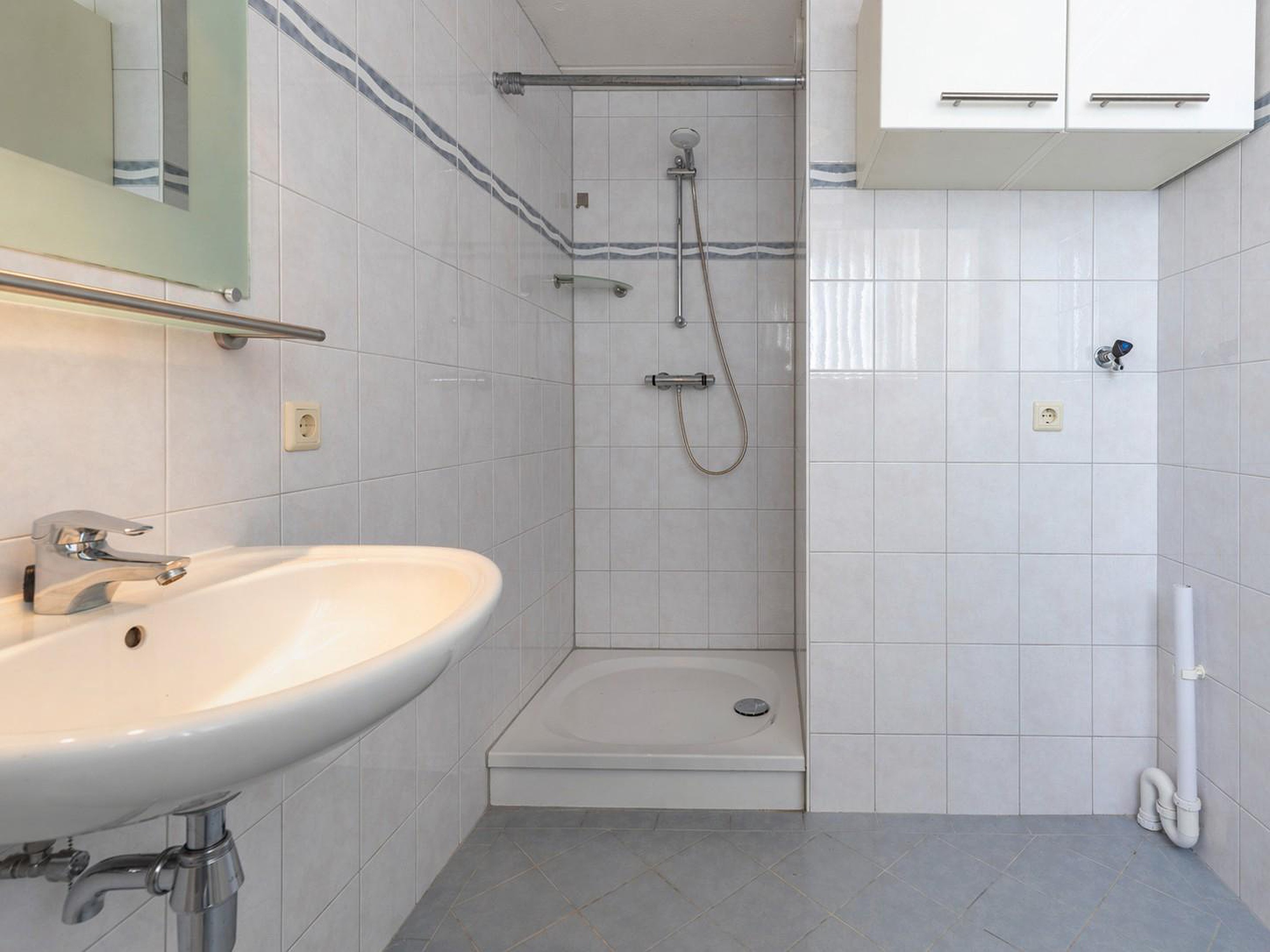 De badkamer is functioneel ingericht en voorzien van een douche en een wastafel. Daarnaast beschikt deze verdieping over een praktische aparte wasruimte, ideaal voor de opstelling van de wasapparatuur.