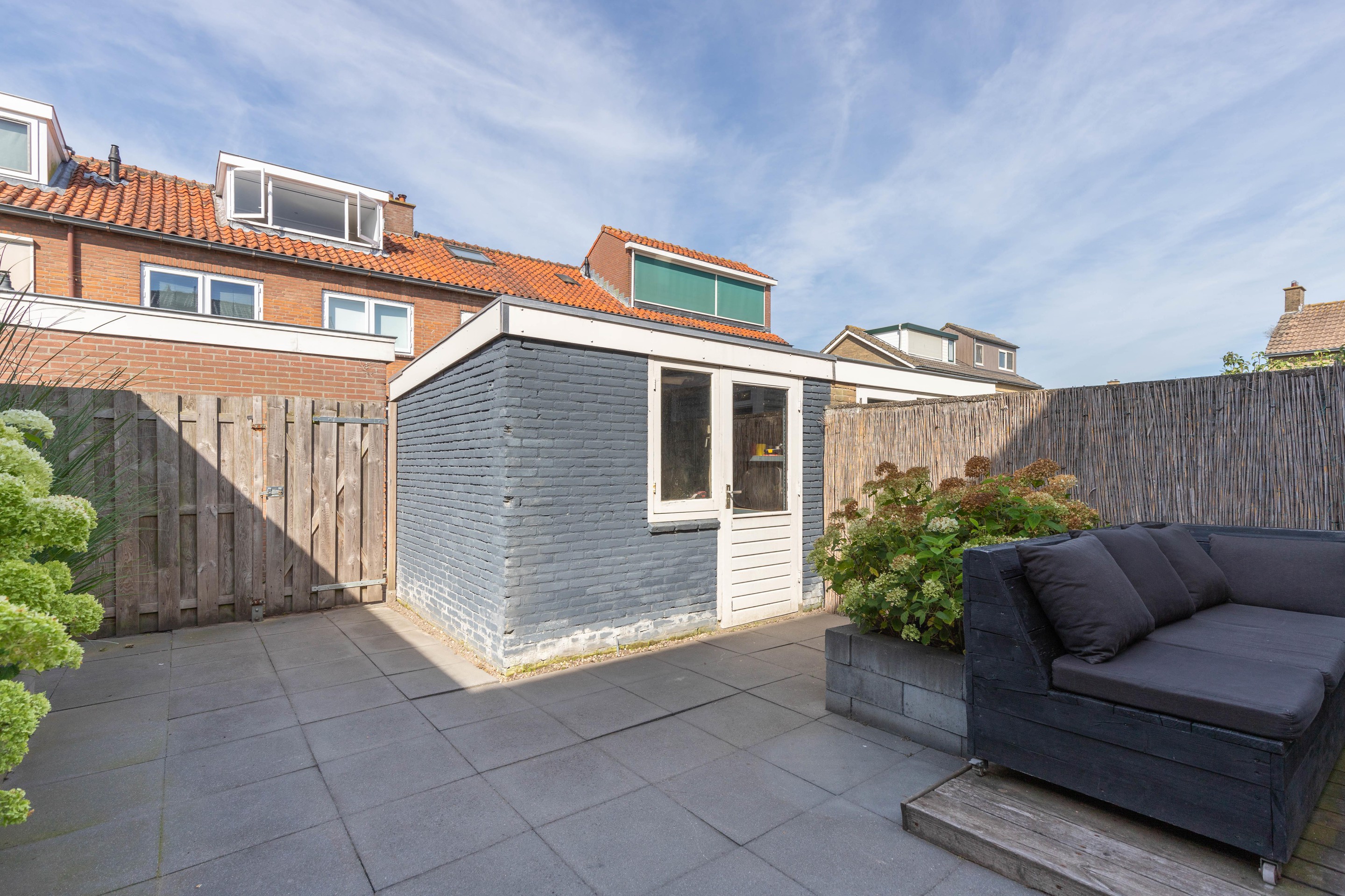 Achterin de tuin staat een praktische stenen berging, ideaal voor fietsen, tuingereedschap of als extra opslagruimte. De tuin is volledig omsloten, wat een veilig en