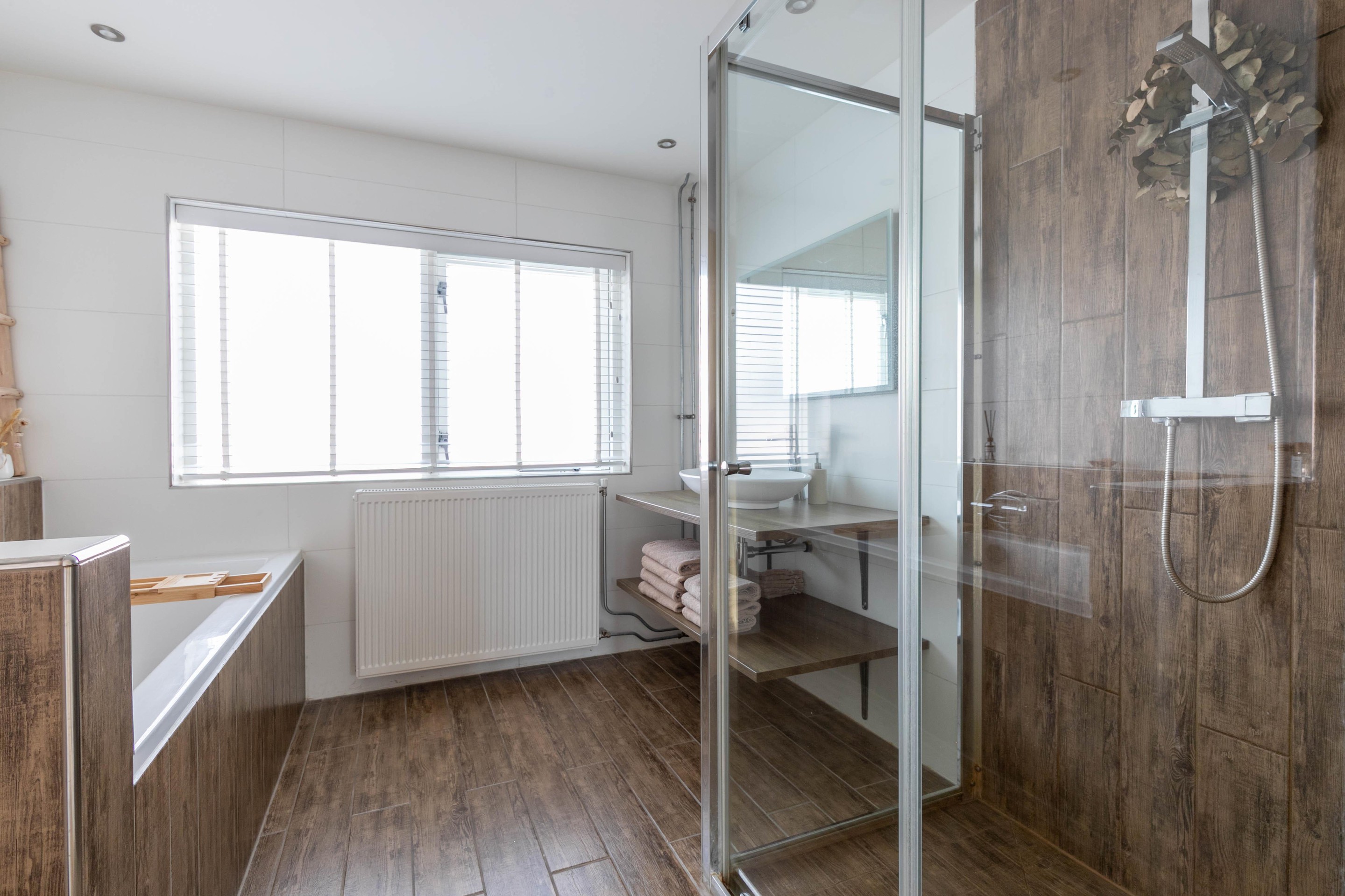 Eerste verdieping Deze etage is tevens volledig vernieuwd. Vanaf de ruime overloop zijn er twee ruime slaapkamers en een luxe badkamer met ligbad, inloopdouche, hangend toilet en