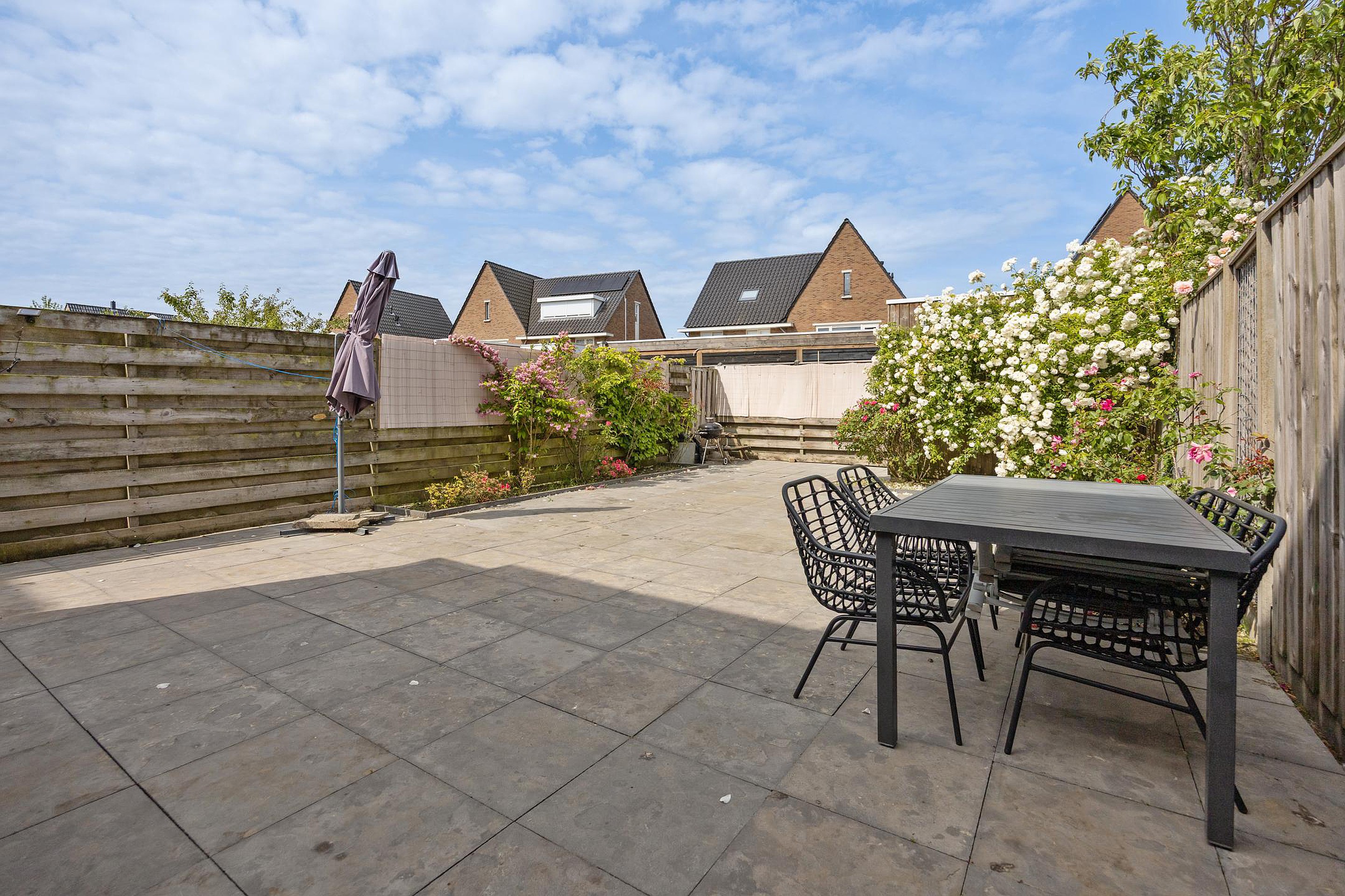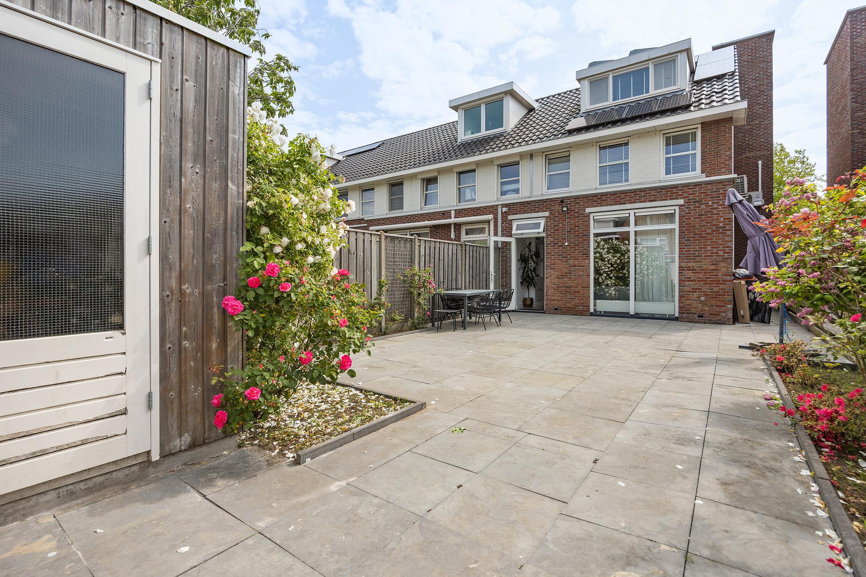 Tuin De achtertuin is fraai aangelegd, beschikt over een tuinhuis/berging met werkbank, en heeft een gunstige zonligging op het westen — ideaal voor de middag- en avondzon. Aan de voorzijde is ruimte om op eigen terrein te parkeren.