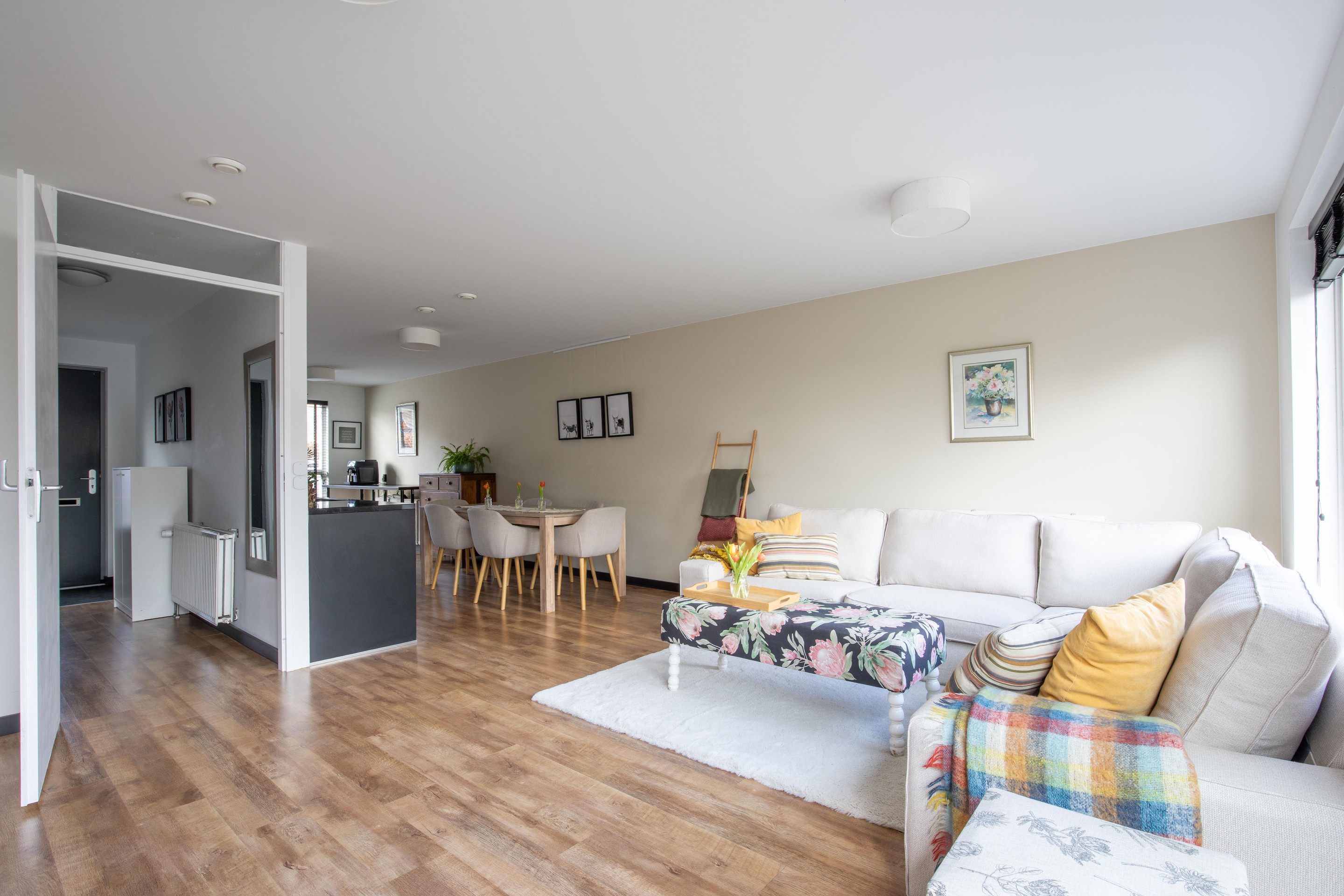 De gehele begane grond is afgewerkt met een hoogwaardige vloer en strak gestucte wanden.