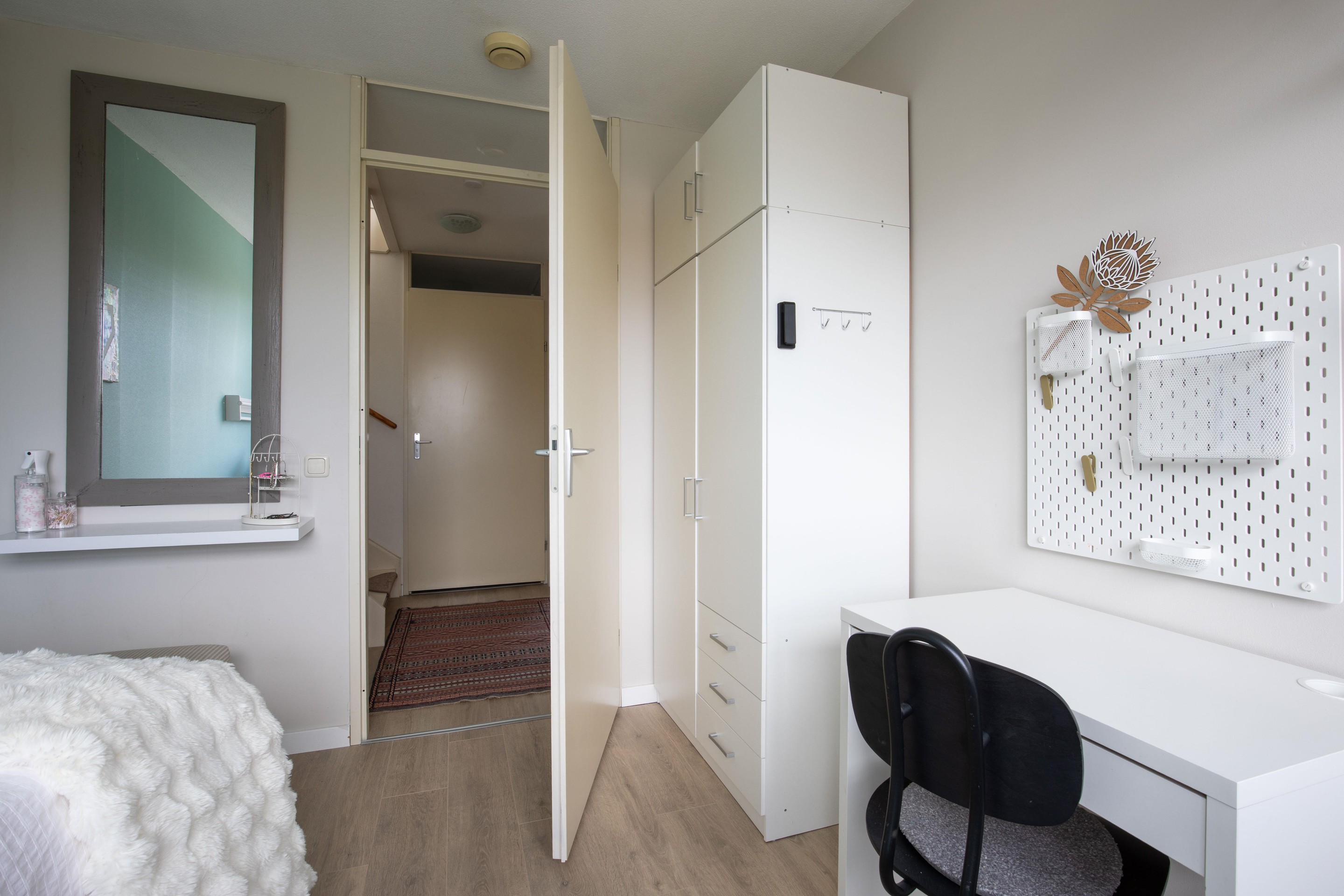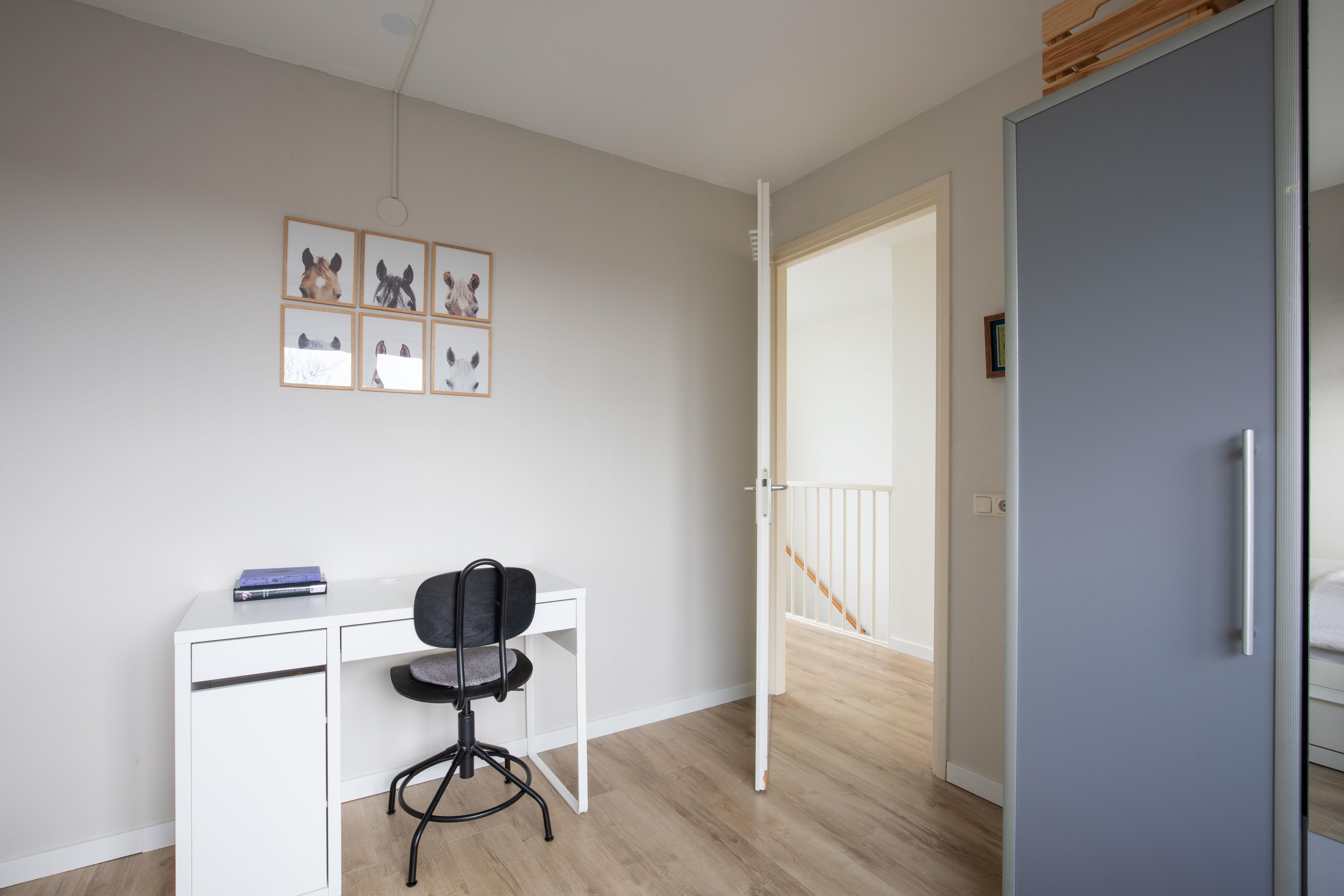 De verdieping is afgewerkt met doorlopend laminaat.