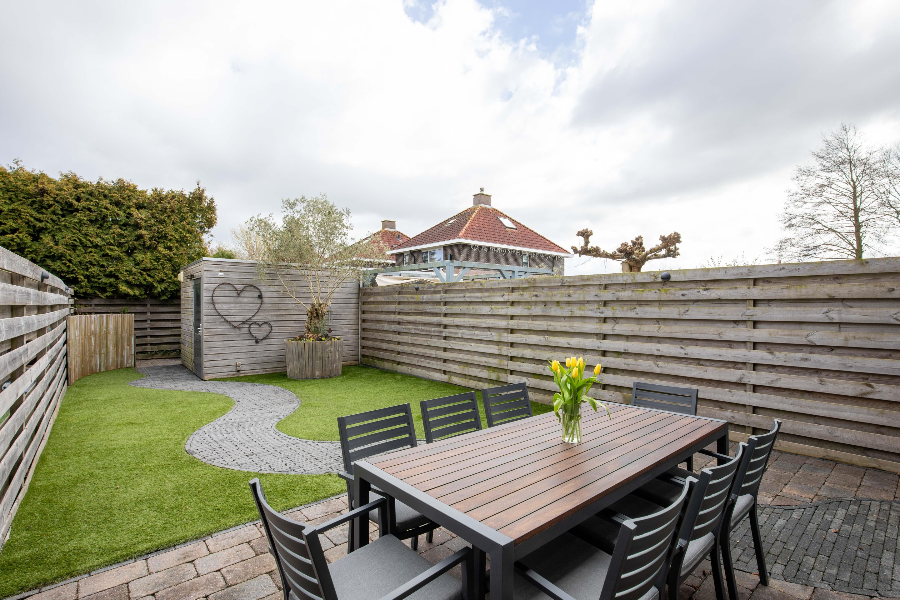 De voortuin is georiënteerd op het westen/noordwesten, waardoor u hier kunt genieten van de middag- en avondzon.