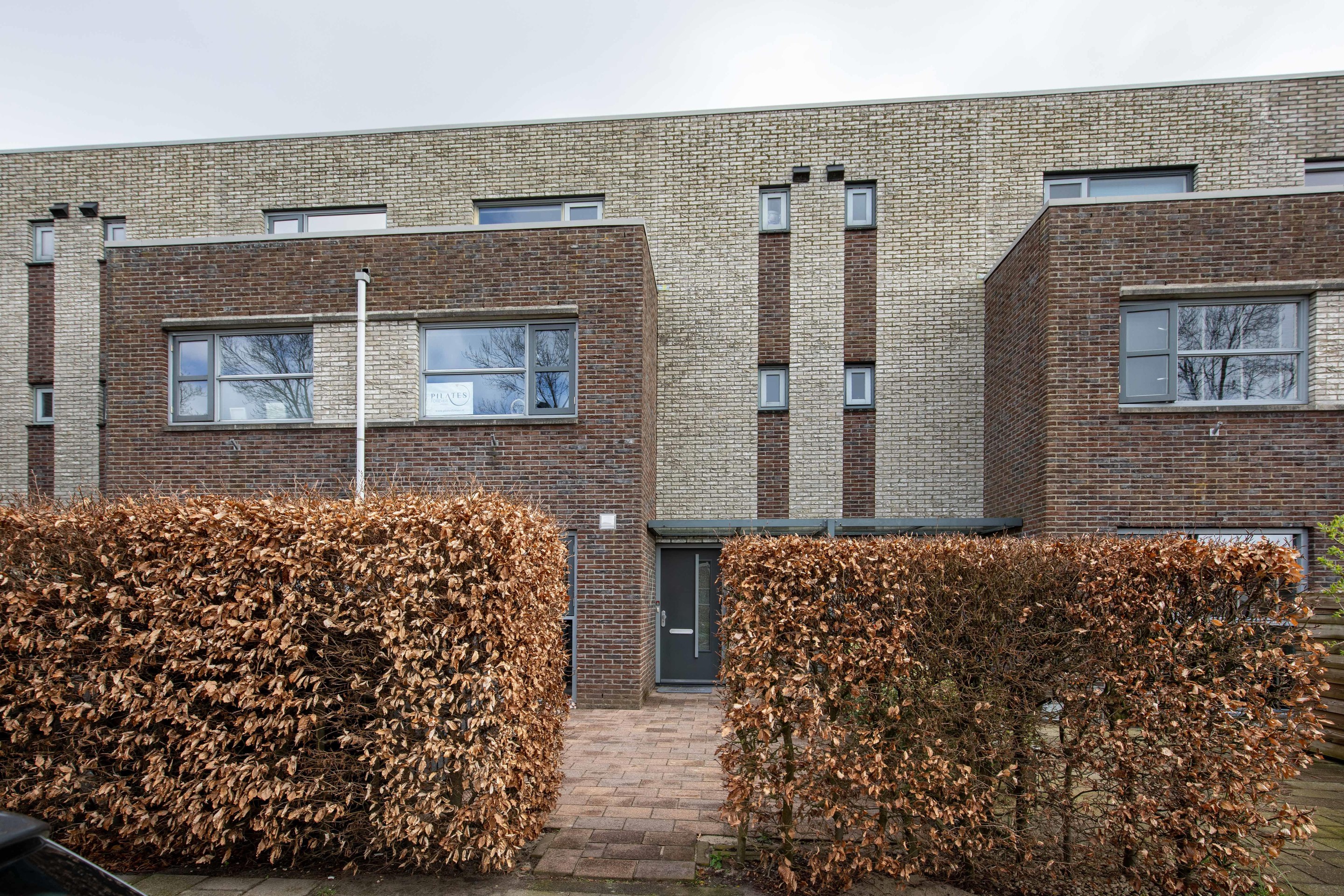Via de onderhoudsvriendelijke voortuin met nette haag en overdekte entree bereikt u de woning. De ruime hal biedt toegang tot een modern toilet met zwevend closet, de trapopgang en de woonkamer.
