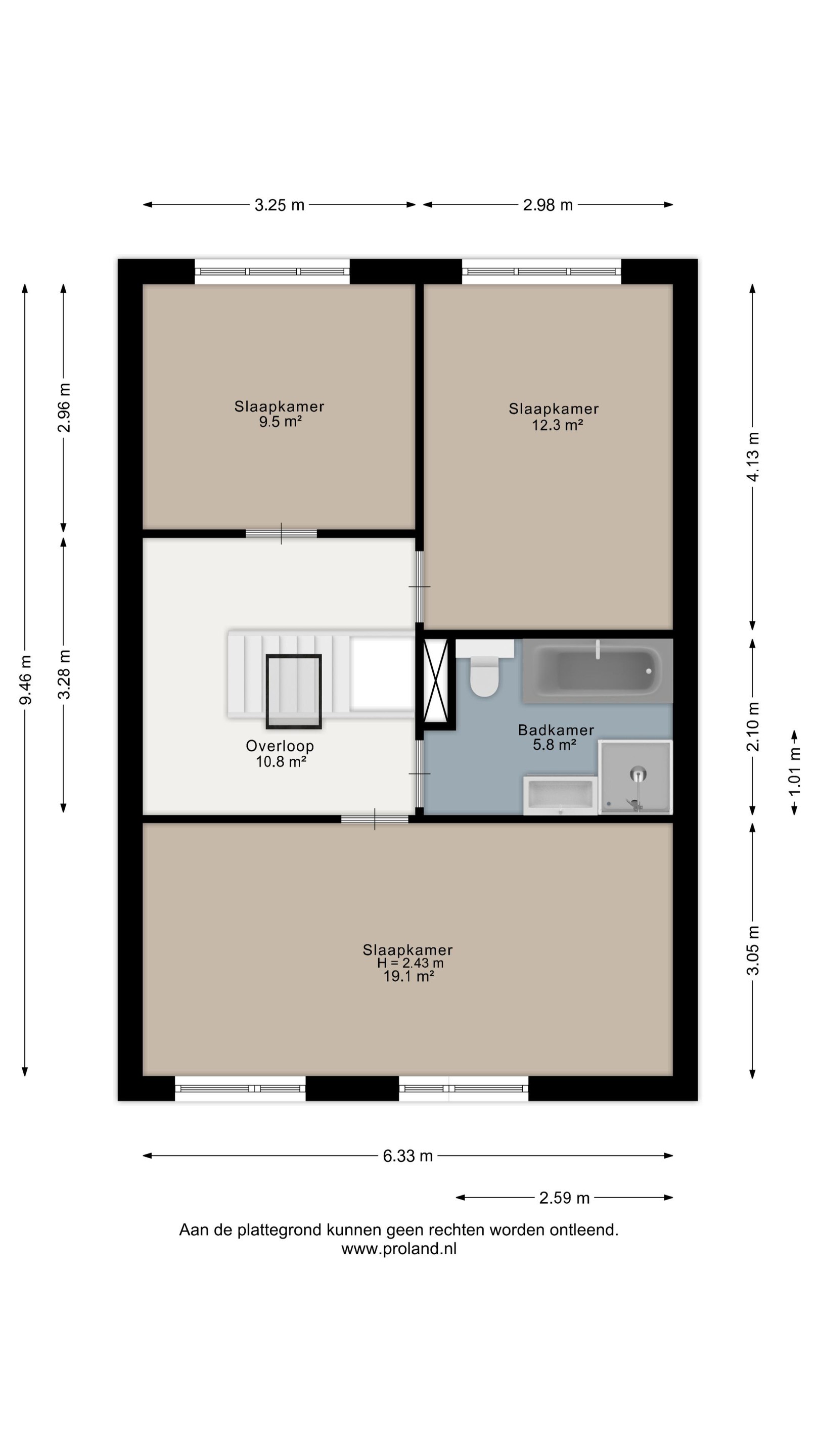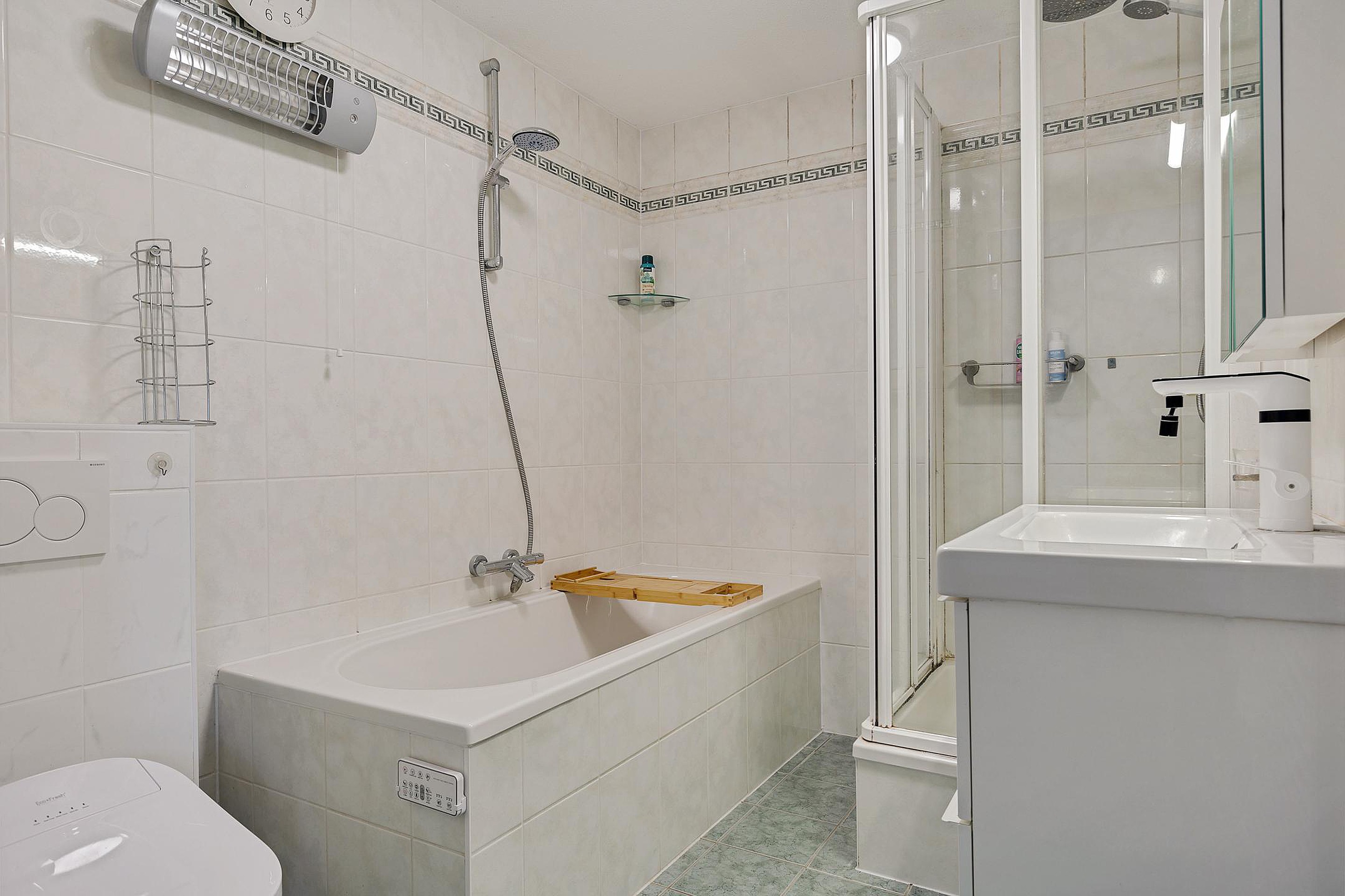 Op deze verdieping bevinden zich maar liefst drie lichte en goed bemeten slaapkamers. De licht betegelde badkamer is compleet uitgevoerd en beschikt over een ligbad, separate douche, toilet en wastafel.