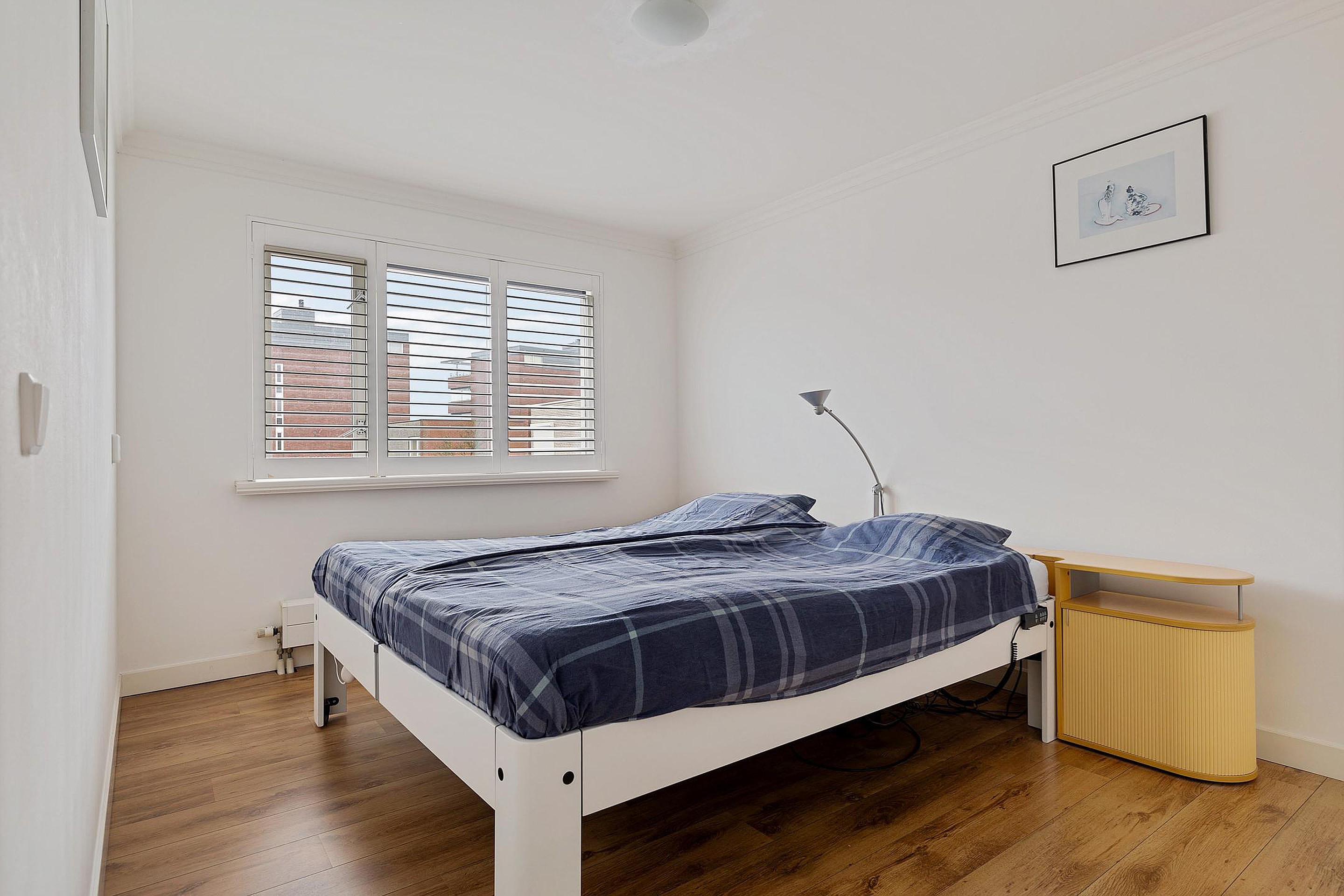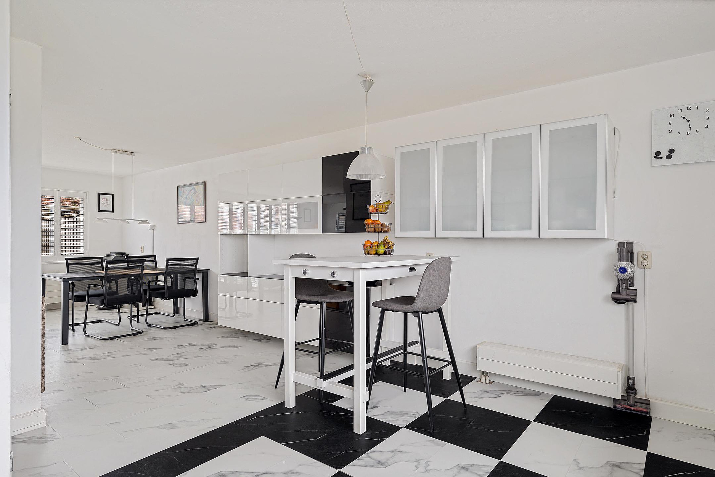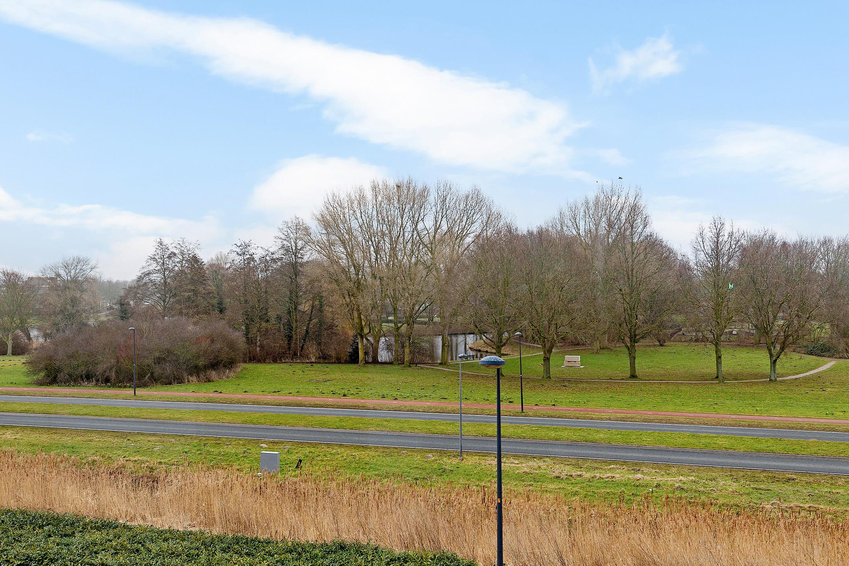 Aan de voorzijde bevindt zich de open keuken, uitgevoerd in een stijlvolle opstelling en voorzien van diverse inbouwapparatuur en een fraai aanrechtblad. Vanuit hier geniet u van een vrij en groen uitzicht over de straat en het park, wat zorgt voor een aangename lichtinval en een ruimtelijk gevoel.