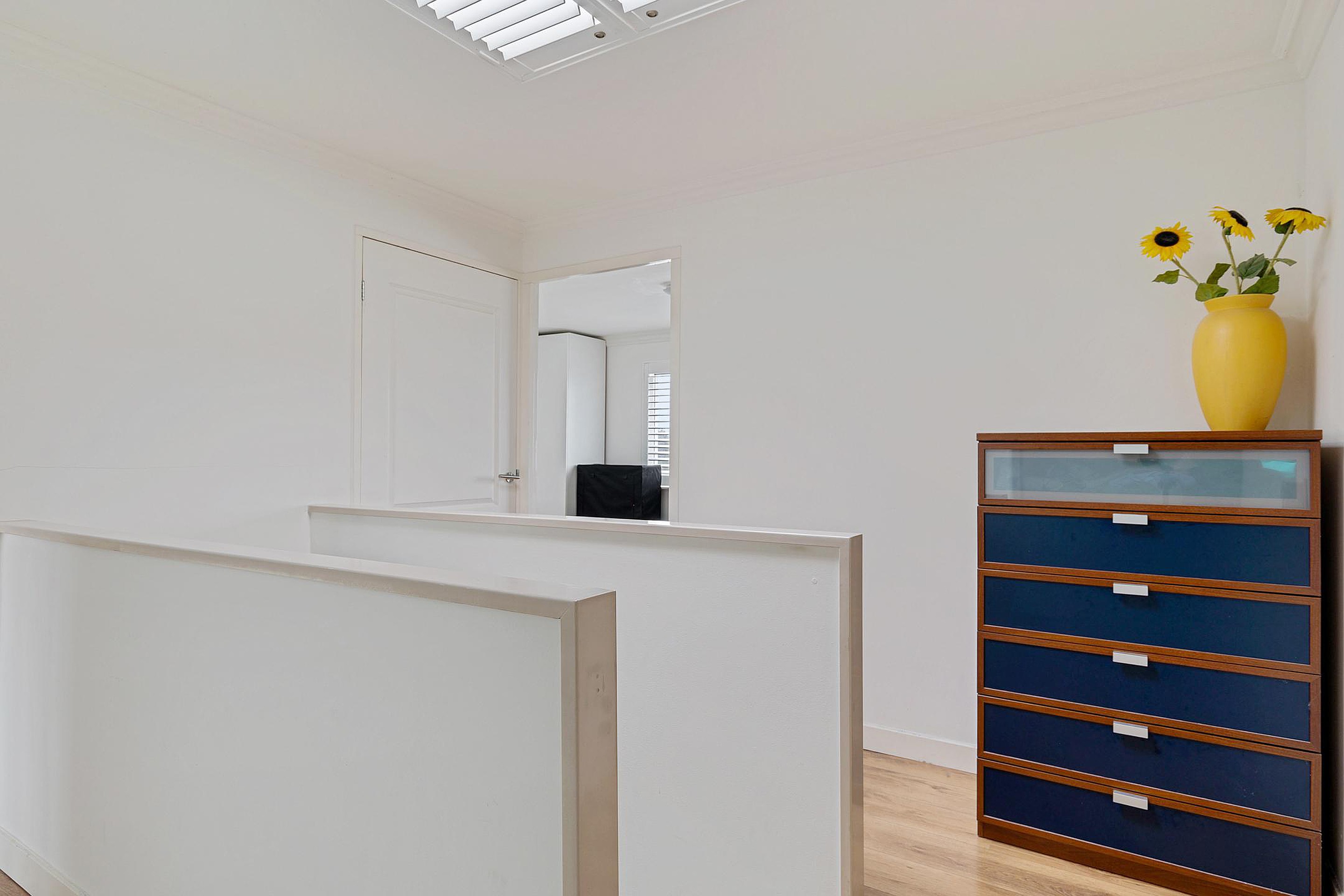 Tweede verdieping De lichte overloop wordt op aangename wijze verlicht door een lichtkoepel, wat zorgt voor een prettige, natuurlijke lichtinval.