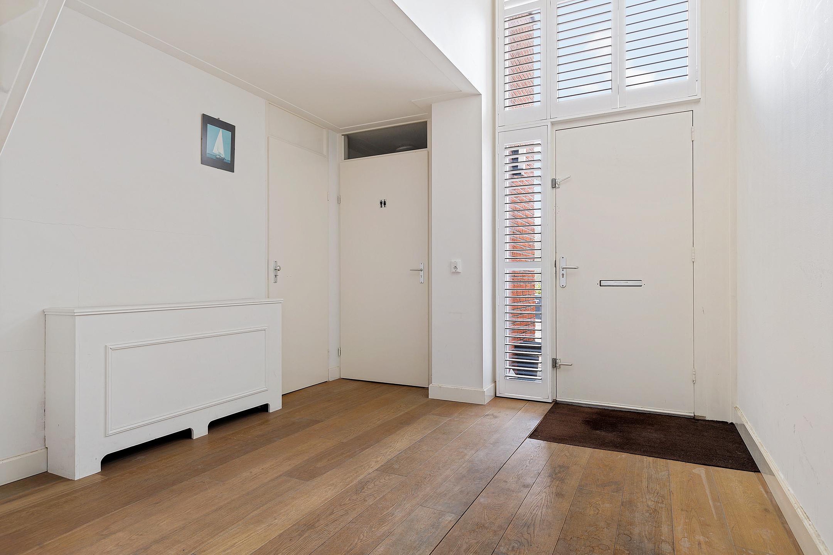Representatieve entree met ruime hal, de hoge raampartijen zijn voorzien van op maat gemaakte shutters, die niet alleen zorgen voor optimale lichtregulering, isolatie en privacy, maar tevens bijdragen aan de stijlvolle en hoogwaardige uitstraling van de woning.