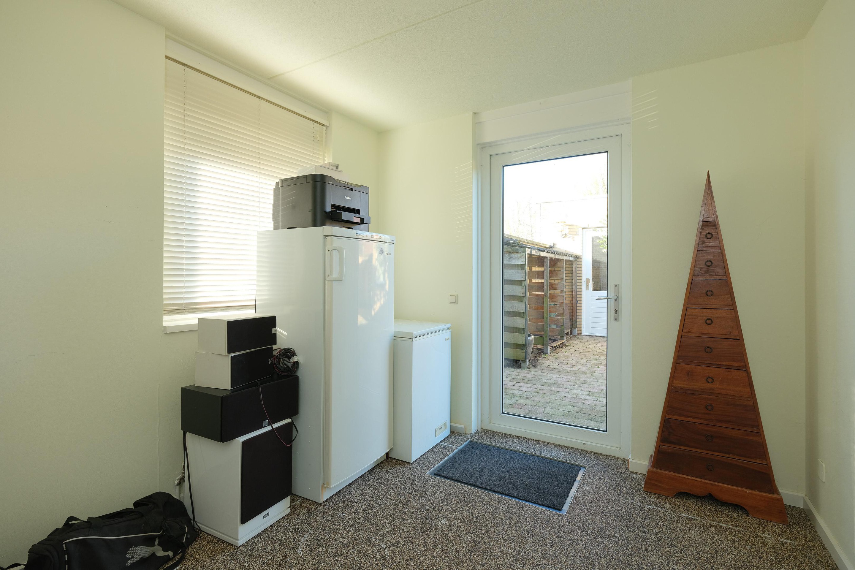 Vanuit de hal is ook de extra woonruimte te bereiken: een extra woon/-werk/ slaapkamer, gelegen aan de voorzijde met eigen badkamer welke is voorzien van volledige betegeling, een douche, toilet en wastafel. Aan de achterzijde is nog een woon/werk kamer gerealiseerd met toegang tot de tuin. Prima te gebruiken als hobbykamer of “eigen” ruimte voor een wat ouder kind die zich af en toe terug wil trekken. De gehele begane grond is voorzien van een epoxy grindvloer. De begane grond beslaat in totaal ca. 85 m2 woonoppervlakte.