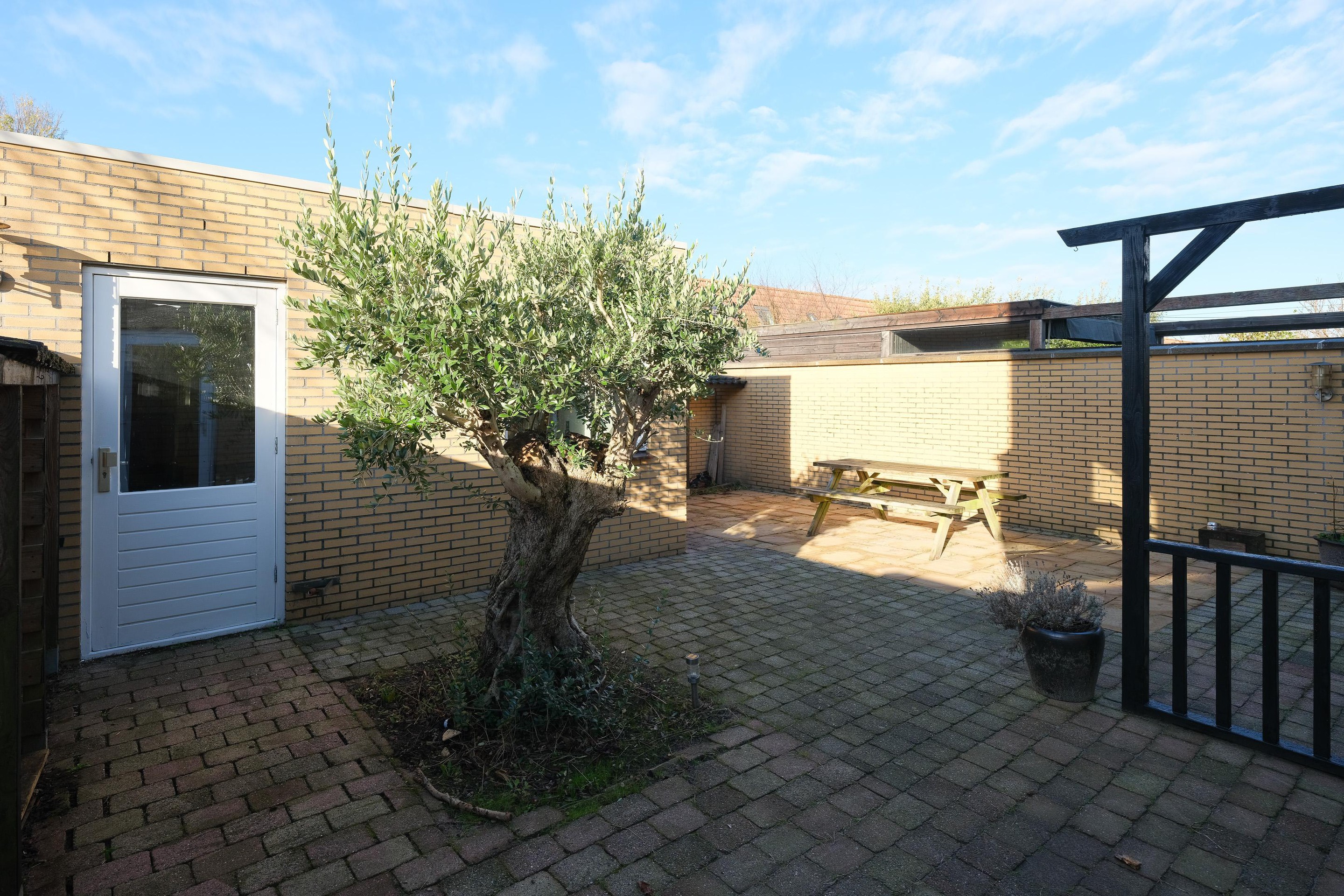De voortuin is bestraat en geeft de gelegenheid om een auto op eigen terrein te parkeren. Voor de deur en aan de zijkant is er overigens voldoende gratis parkeergelegenheid.