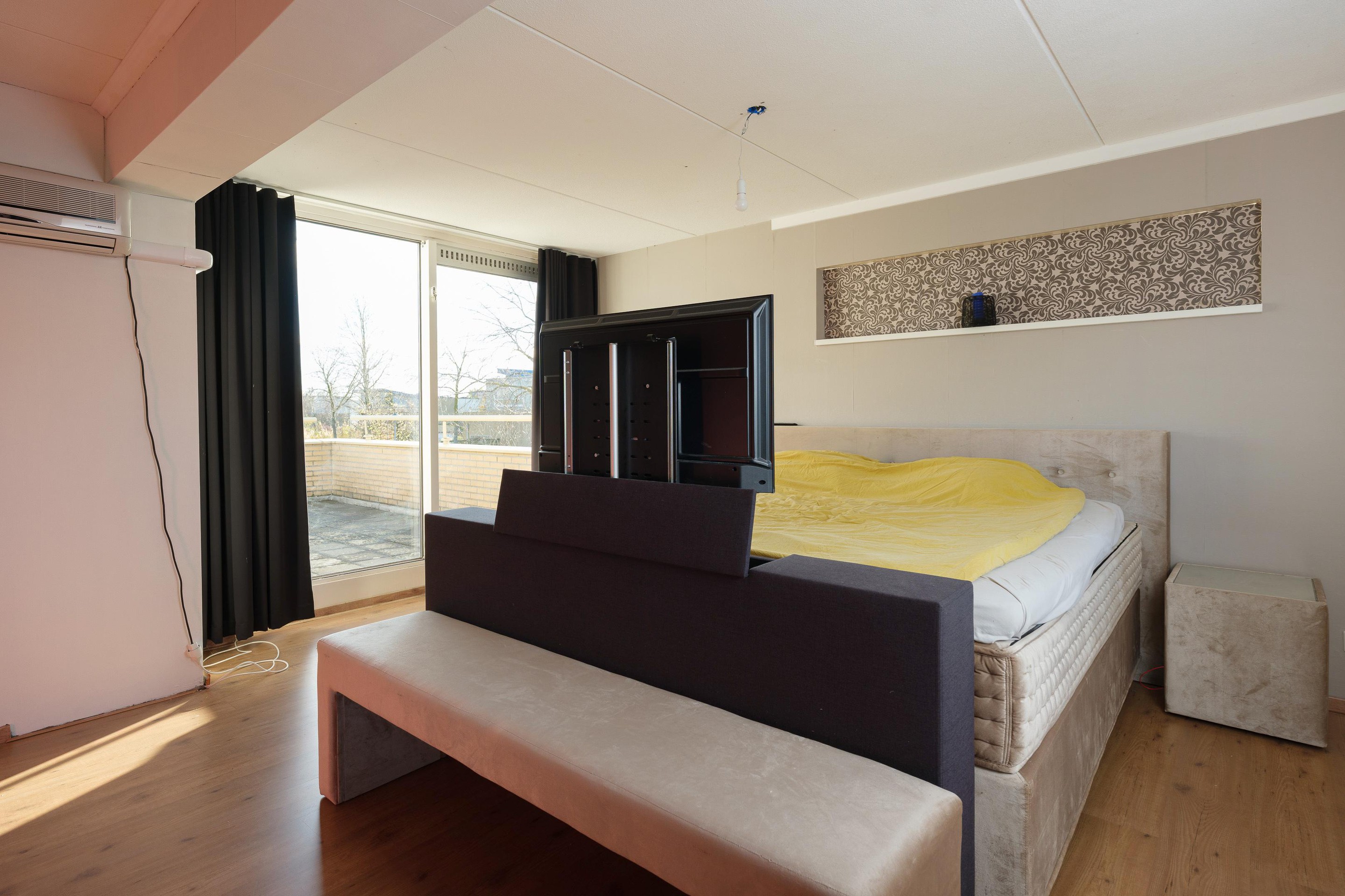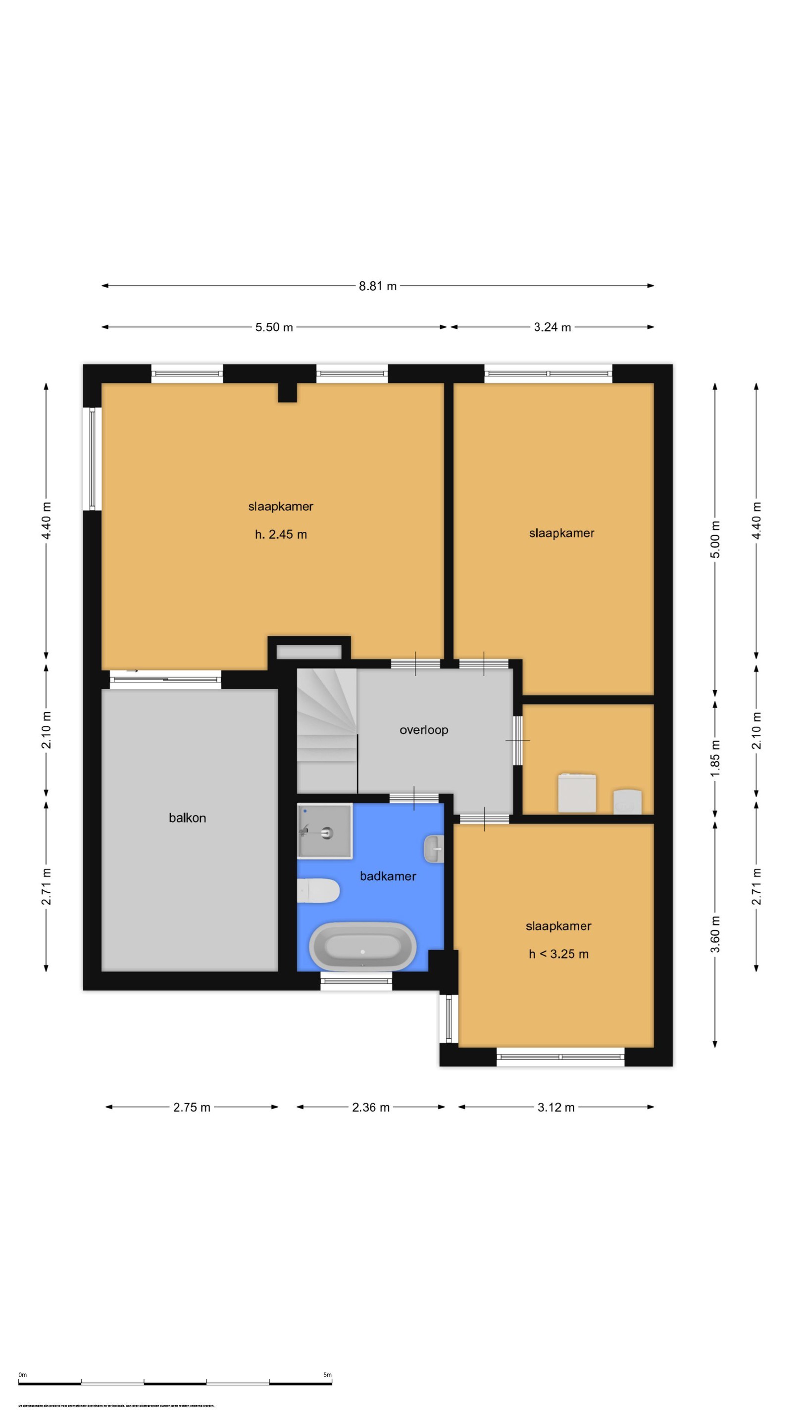 Eerste verdieping De eerste verdieping is een stuk groter dan “standaard”. Wat deze hoekwoning o,a, onderscheidt van andere woningen in de straat, is de extra ruime slaapkamer 24m2) met airconditioning en via een schuifpui toegang tot het dakterras met een fraai uitzicht over de groenstrook en ‘het Bovenwater’.