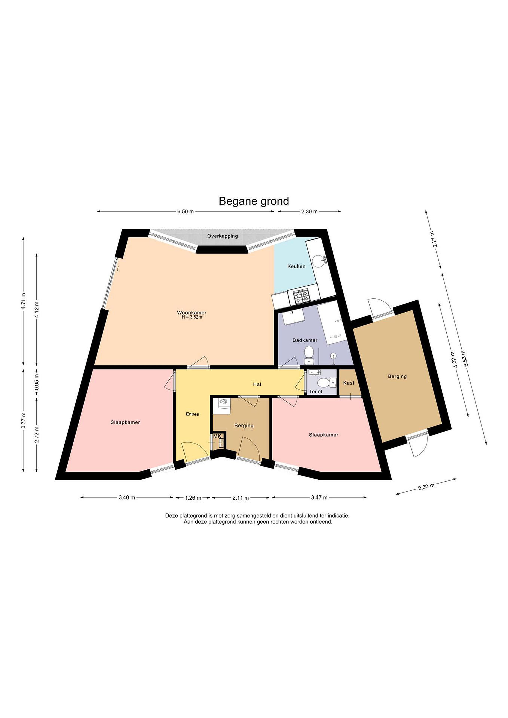 Begane grond entree/hal, slaapkamer, berging met cv-opstelling en witgoedaansluiting, 2e slaapkamer met bergkast, toilet, badkamer voorzien van ligbad, inloopdouche, wastafelmeubel en toilet. Woonkamer met schuifpui naar de tuin aan het vaarwater. Open keuken voorzien van inbouw apparatuur.