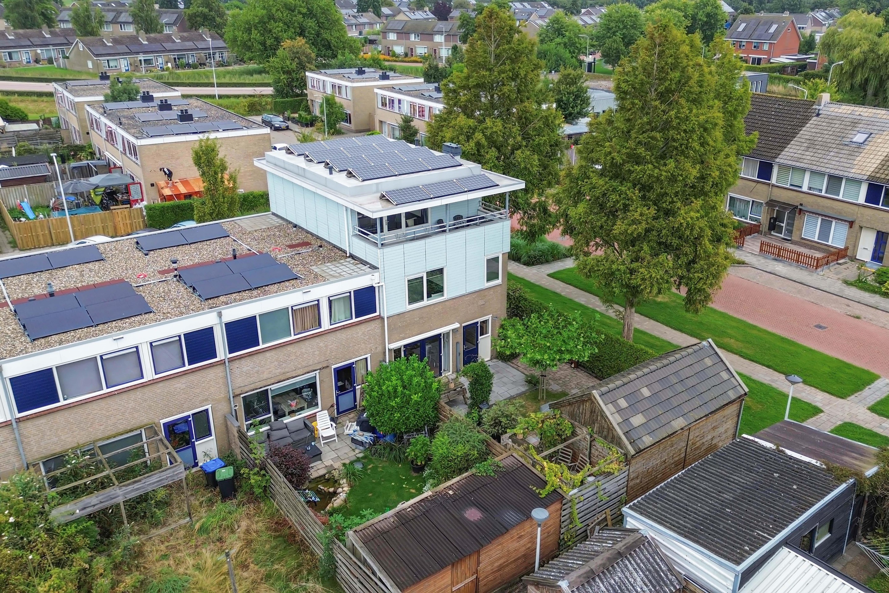 Op de eerste verdieping treft u drie ruime slaapkamers, een inloopkast en een royale badkamer. De tweede verdieping biedt nog twee slaapkamers, een praktische berging en toegang tot een dakterras. De woning is bovendien uitgerust met vijftien zonnepanelen, wat bijdraagt aan een duurzame en energiezuinige woonstijl.