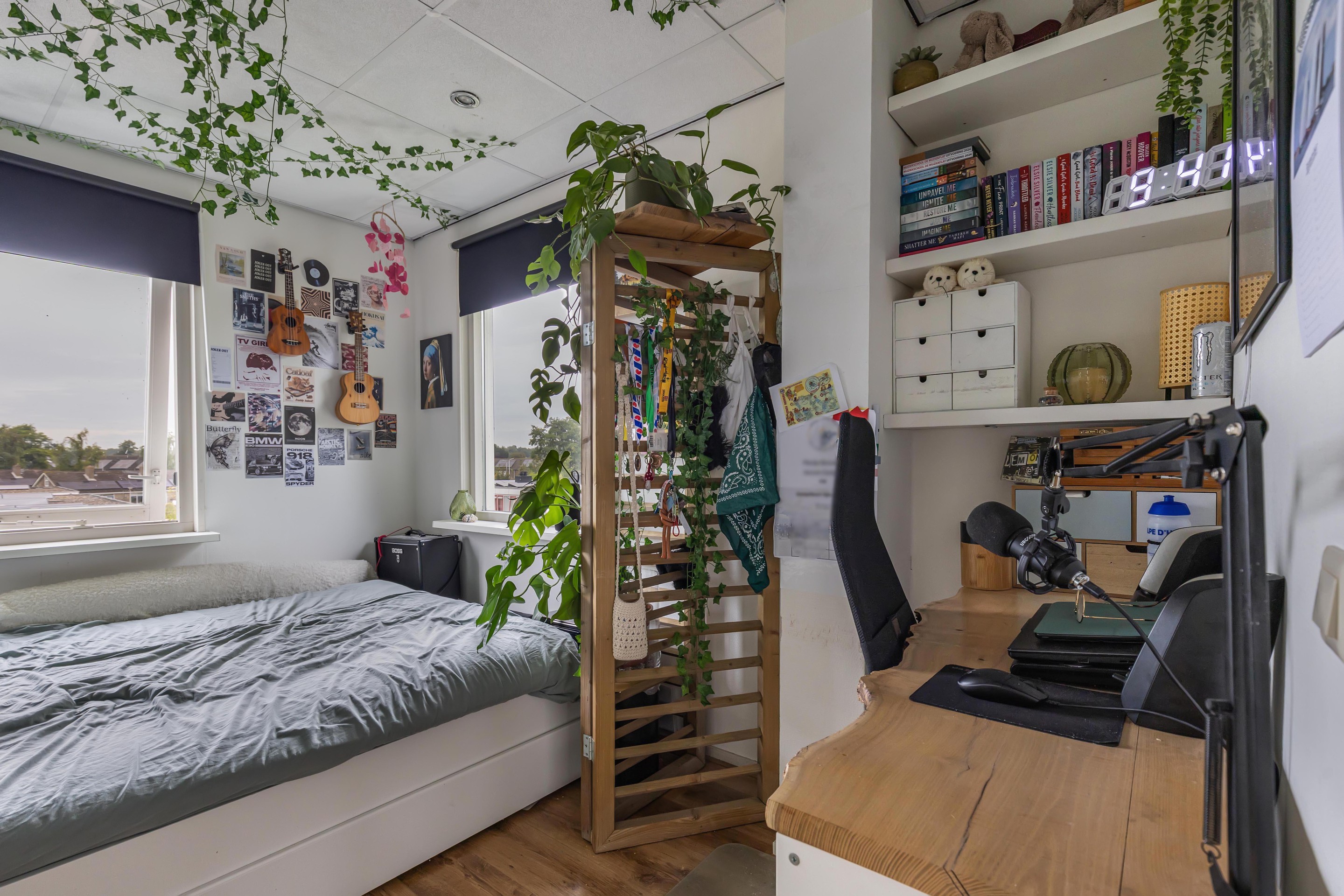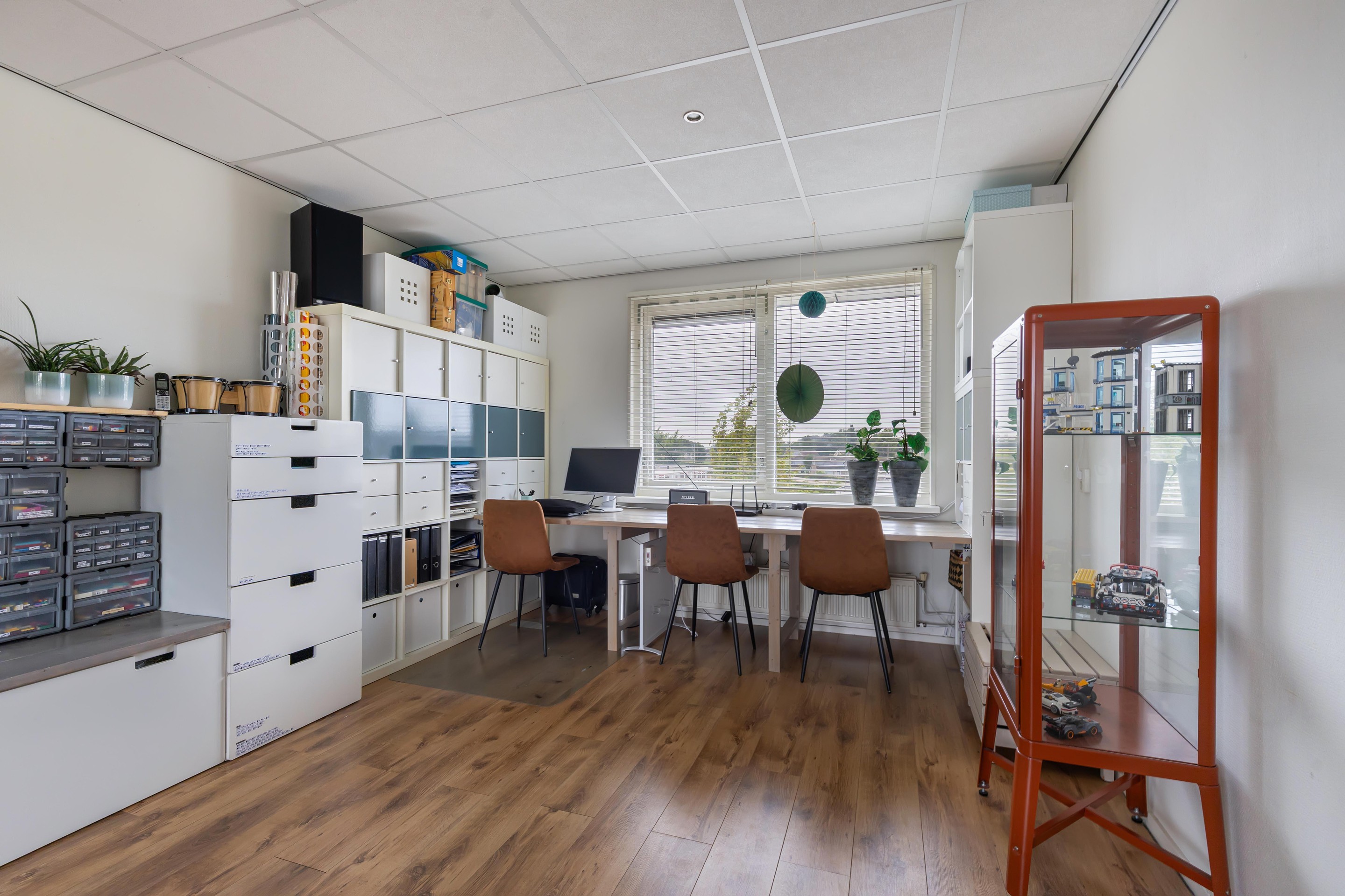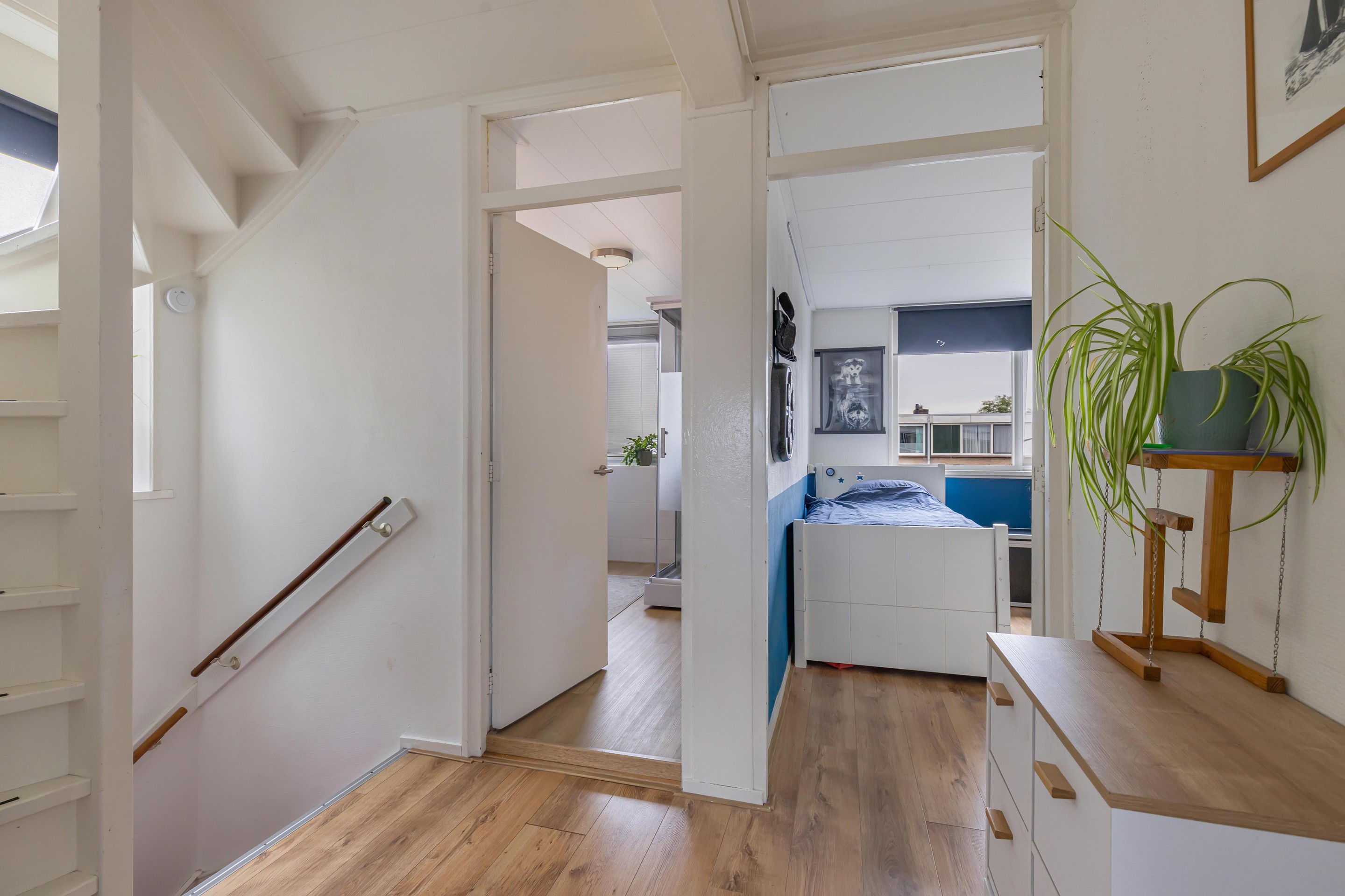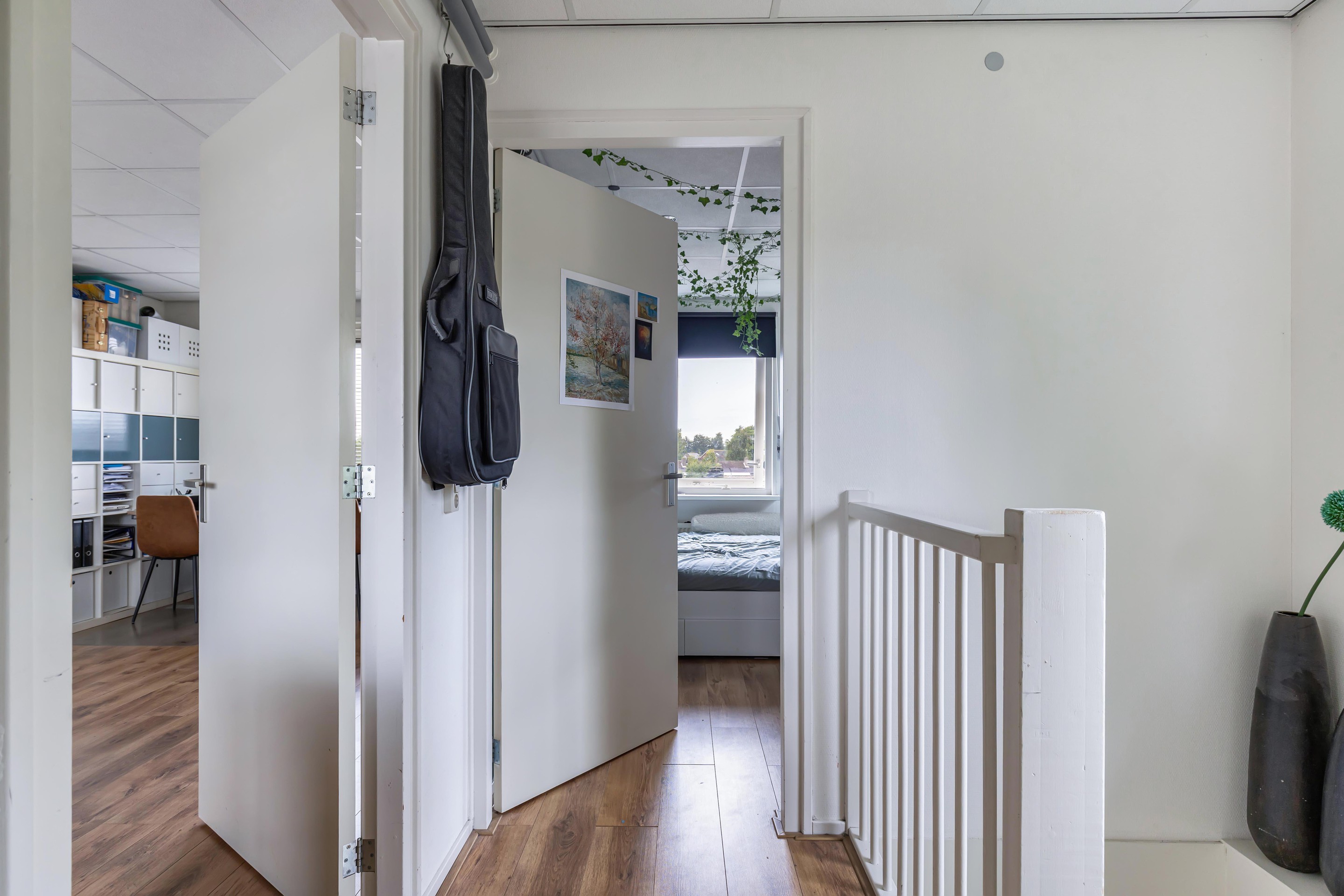 Tweede verdieping overloop, berging met cv-opstelling en witgoedaansluiting, een 4e slaapkamer en nog een extra ruimte van maar liefst 26 m2 welke ingericht kan worden als 5e slaapkamer maar ook nog opgedeeld kan worden of gebruikt kan worden als thuiswerkplek, hobbyruimte met toegang tot het zonnige dakterras met fraai uitzicht