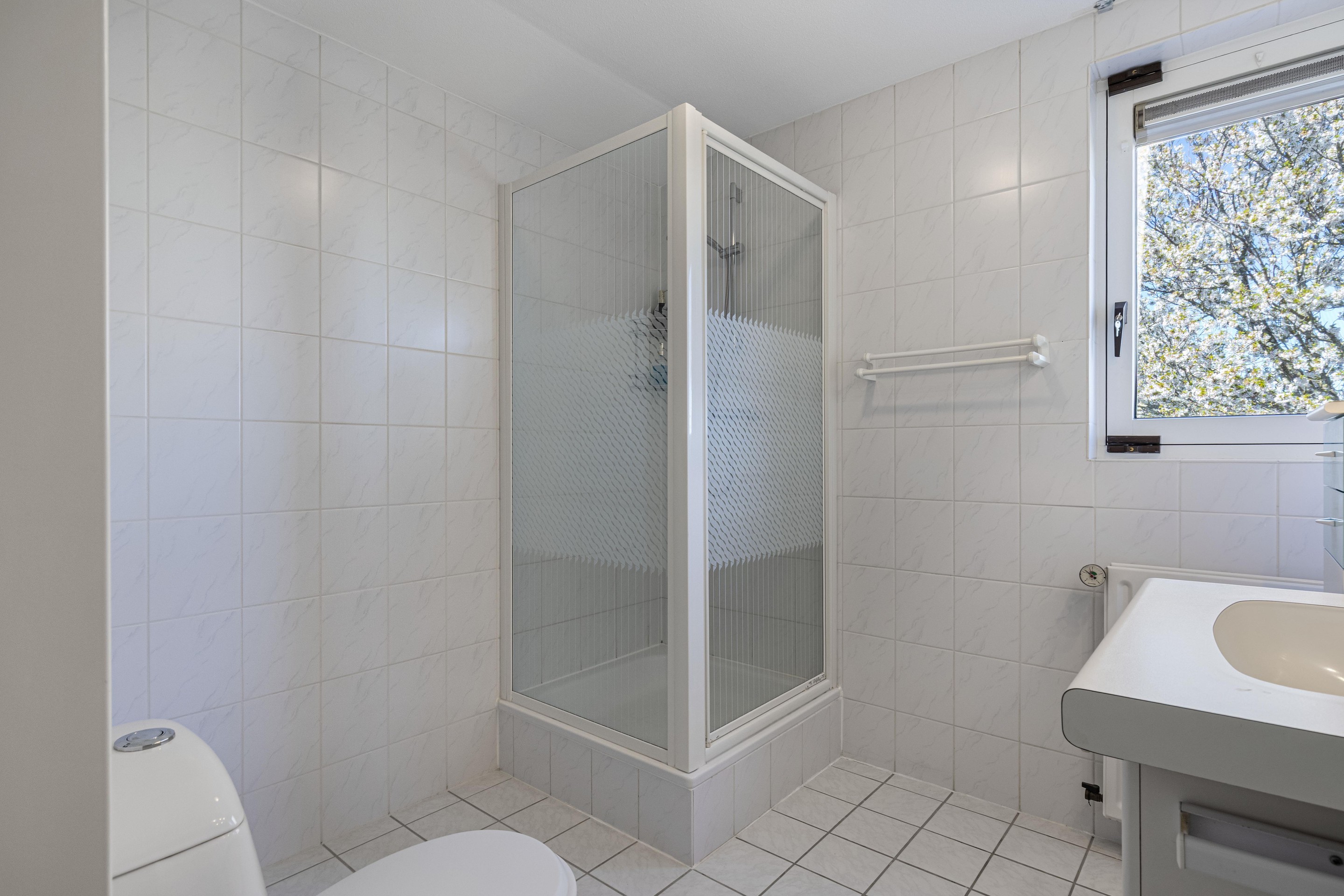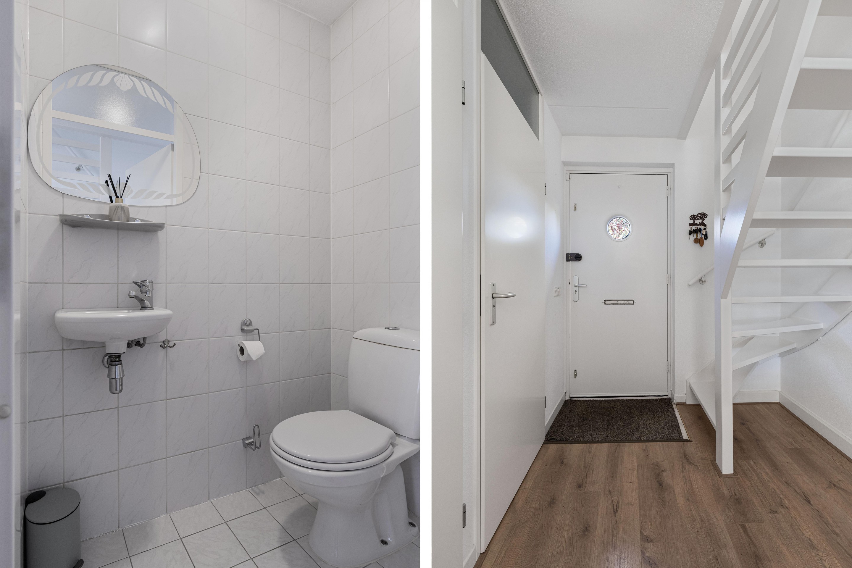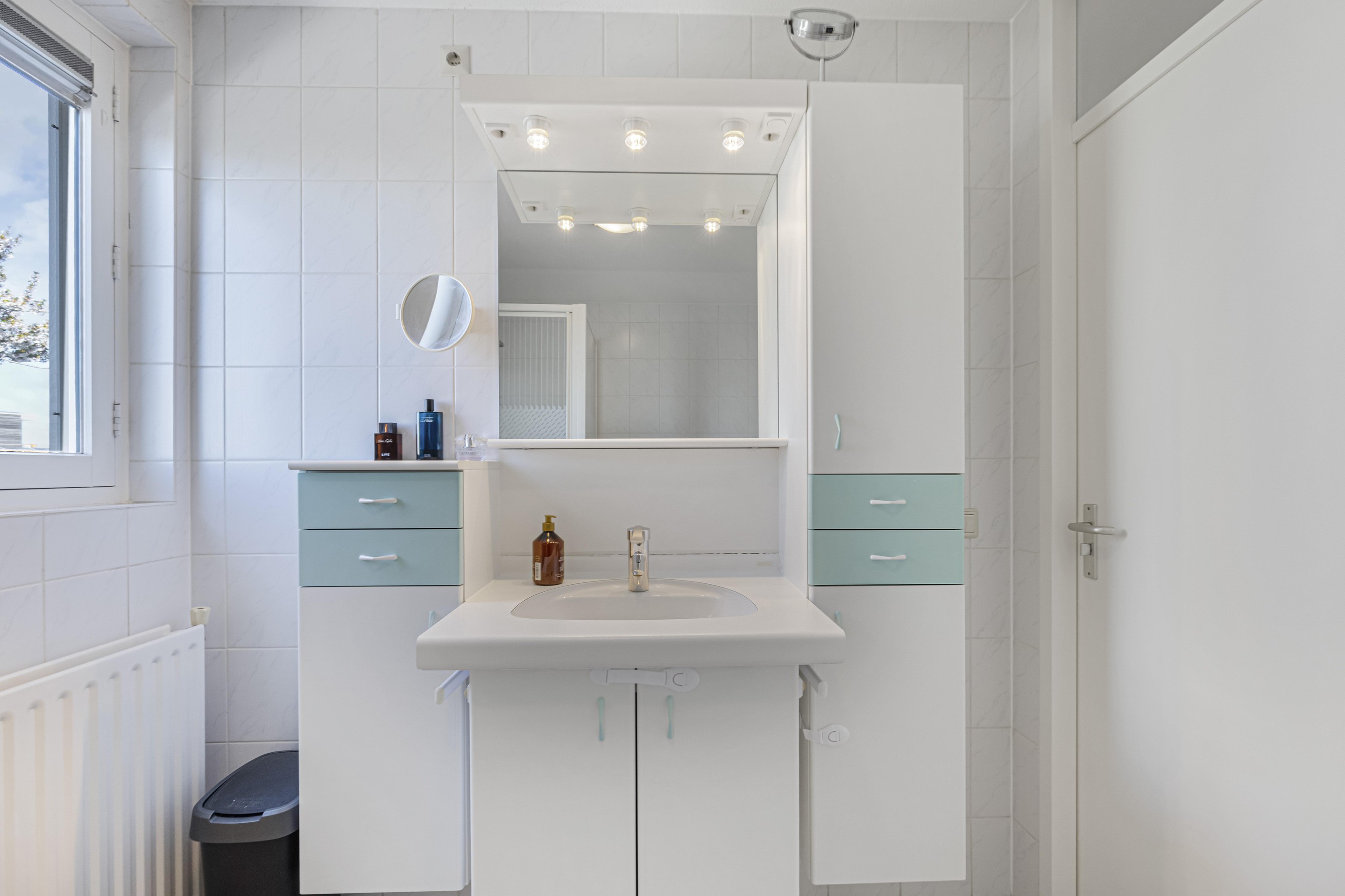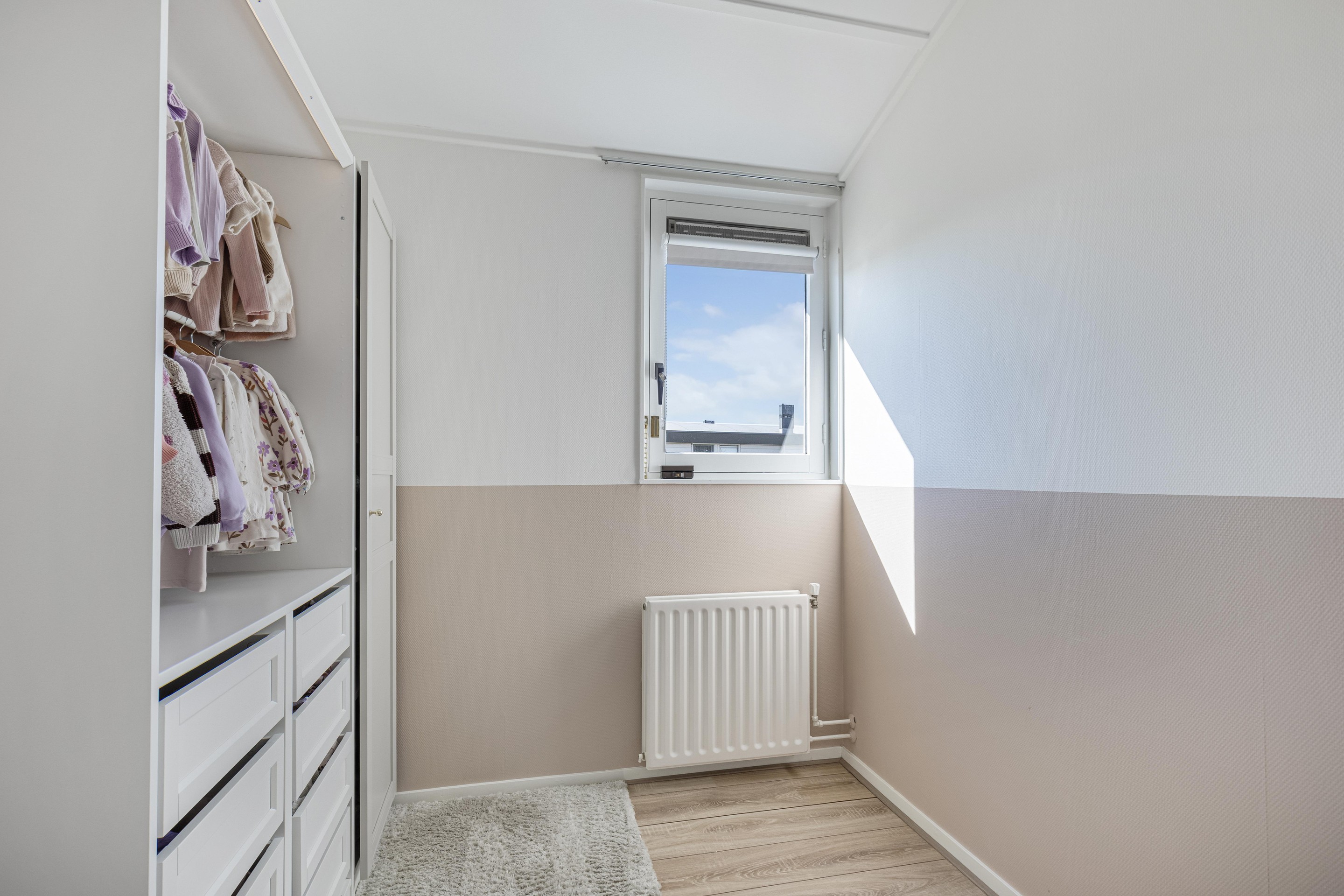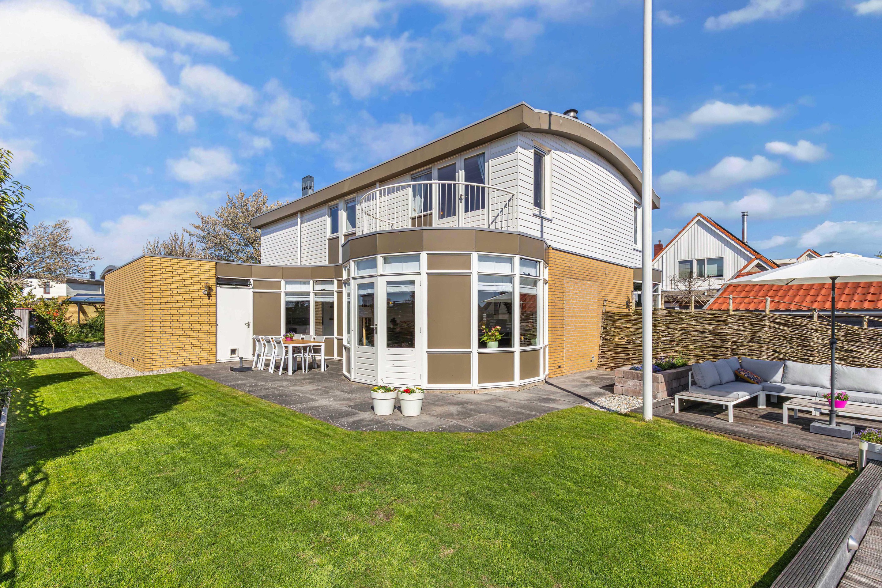 De woning zelf heeft een verrassend lichte en speelse uitstraling. De woonkamer valt direct op door de organisch vormgegeven pui met openslaande deuren naar de tuin, waardoor binnen en buiten op een natuurlijke manier in elkaar overlopen. De moderne keuken is van alle gemakken voorzien en sluit mooi aan op de leefruimte. Daarnaast zijn er een ruime bijkeuken en een berging, wat zorgt voor extra comfort en praktische mogelijkheden.