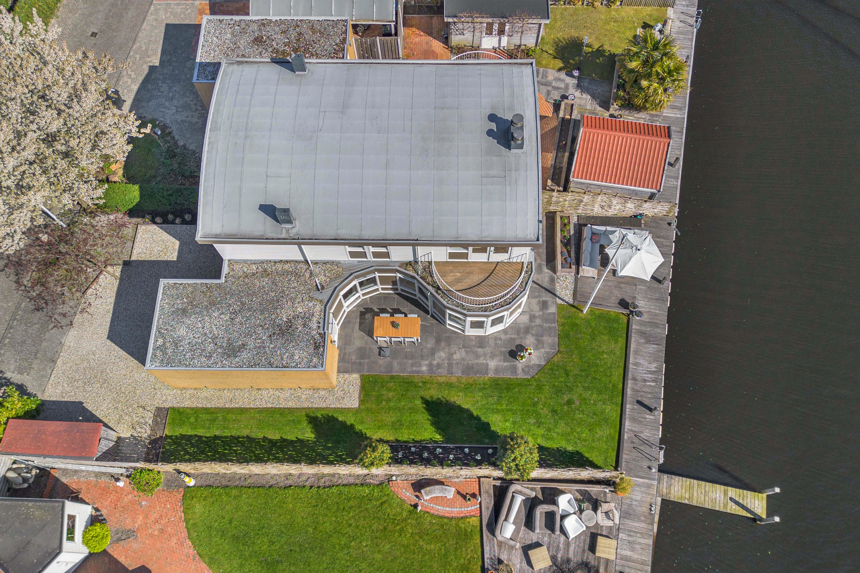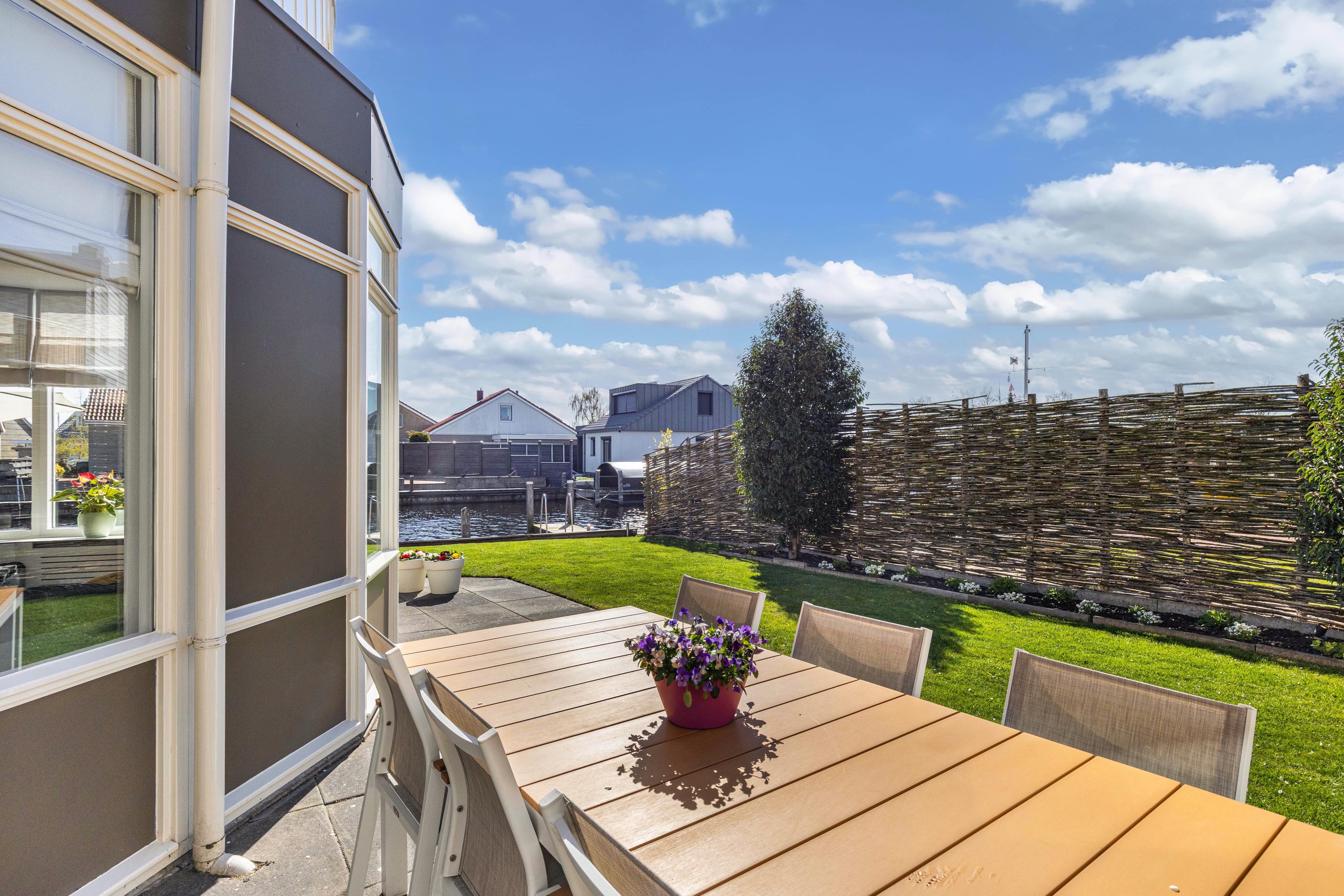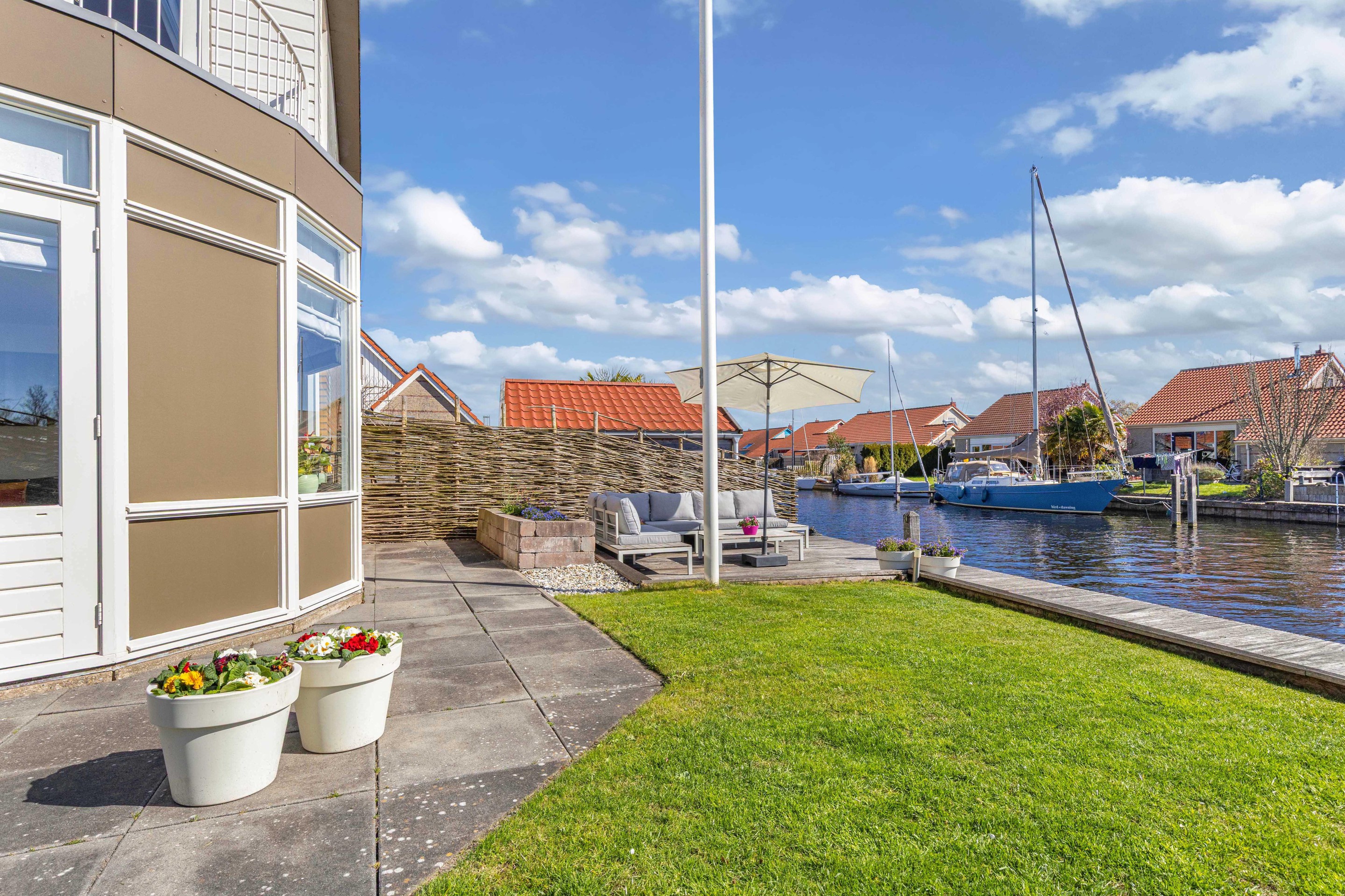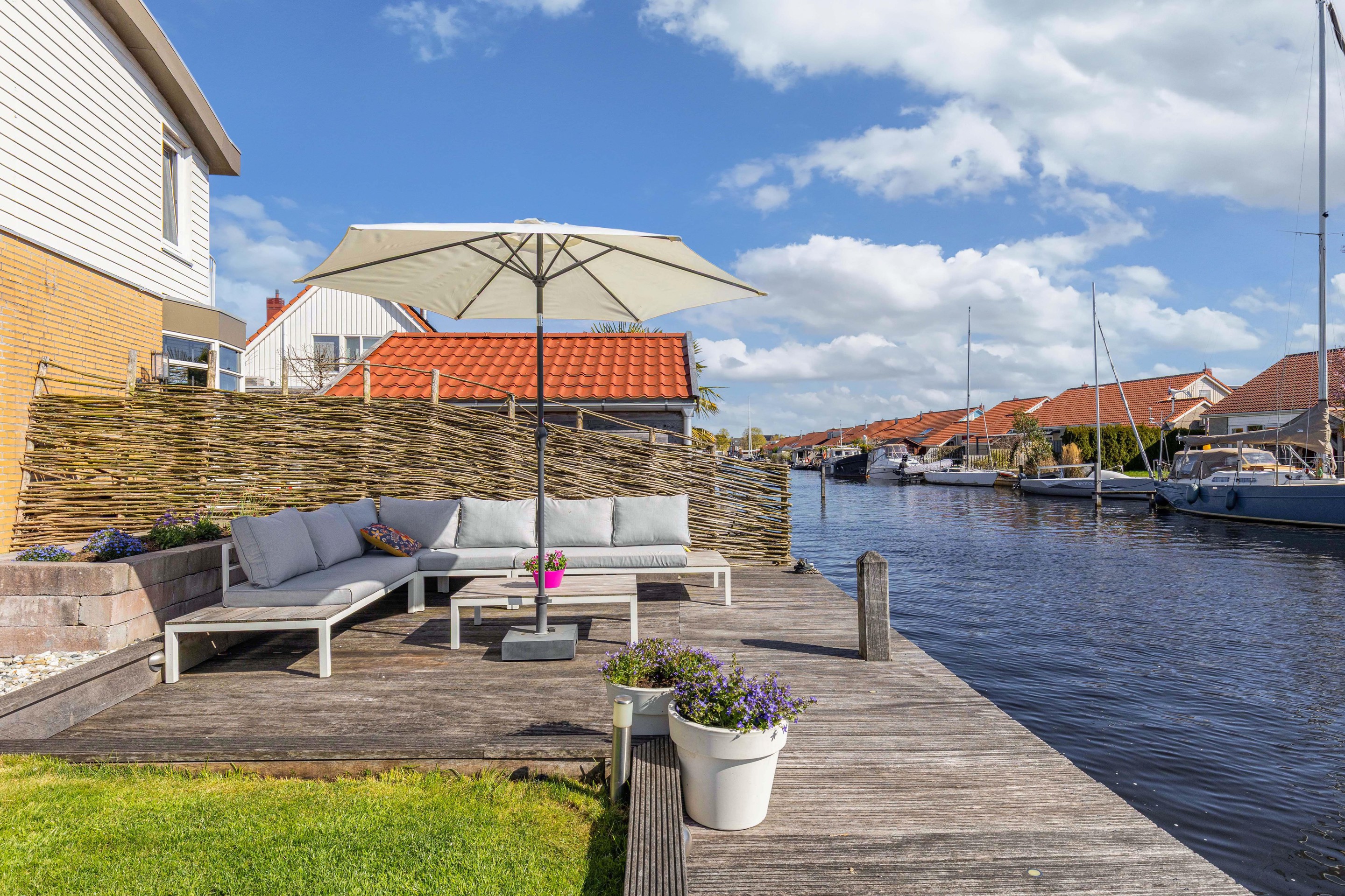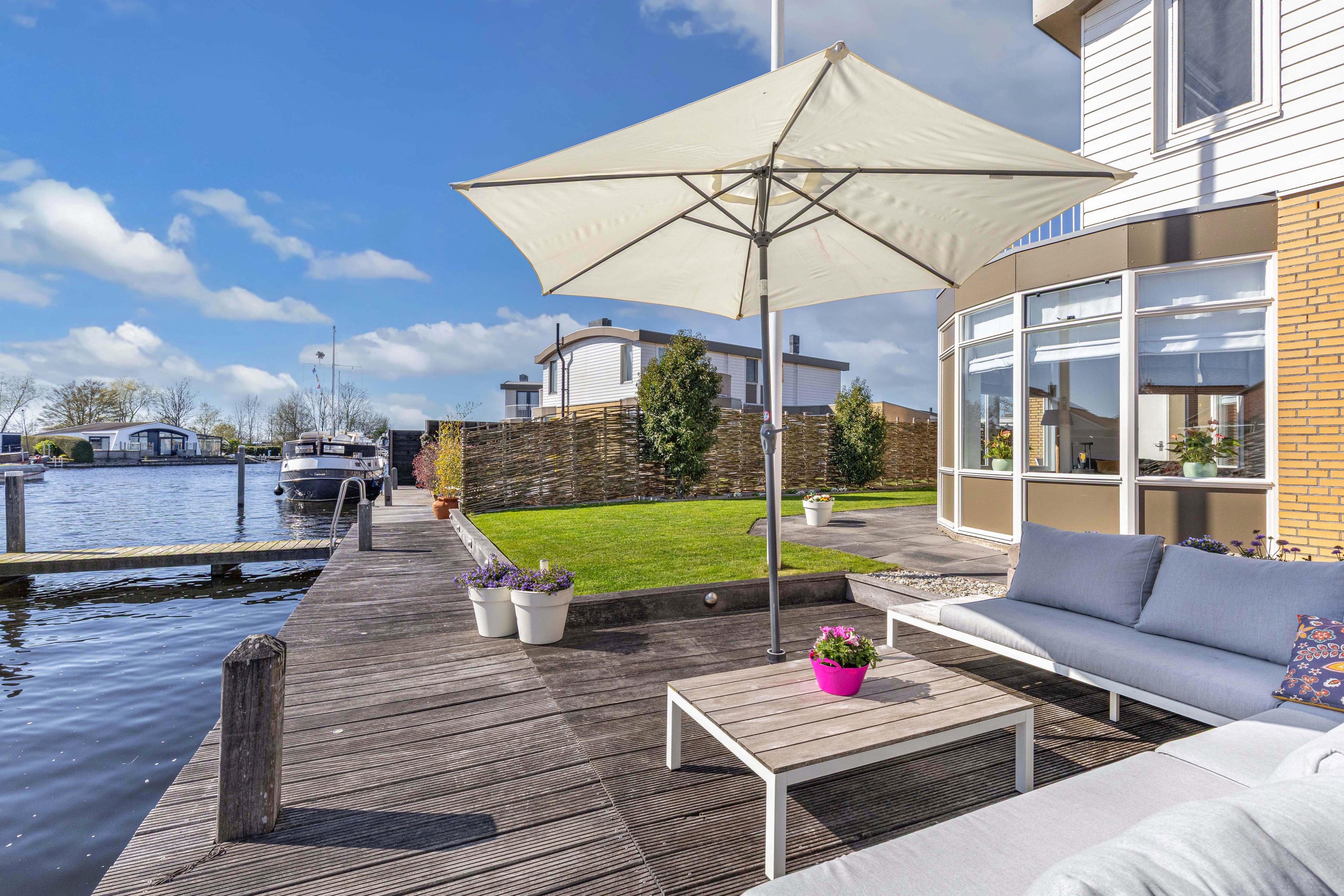 De fraaie tuin biedt meerdere terrassen en fijne plekjes om op elk moment van de dag van de zon en het buitenleven te genieten. Of je nu wilt ontspannen aan het water, gezellig wilt borrelen of juist de schaduw opzoekt, hier kan het allemaal.