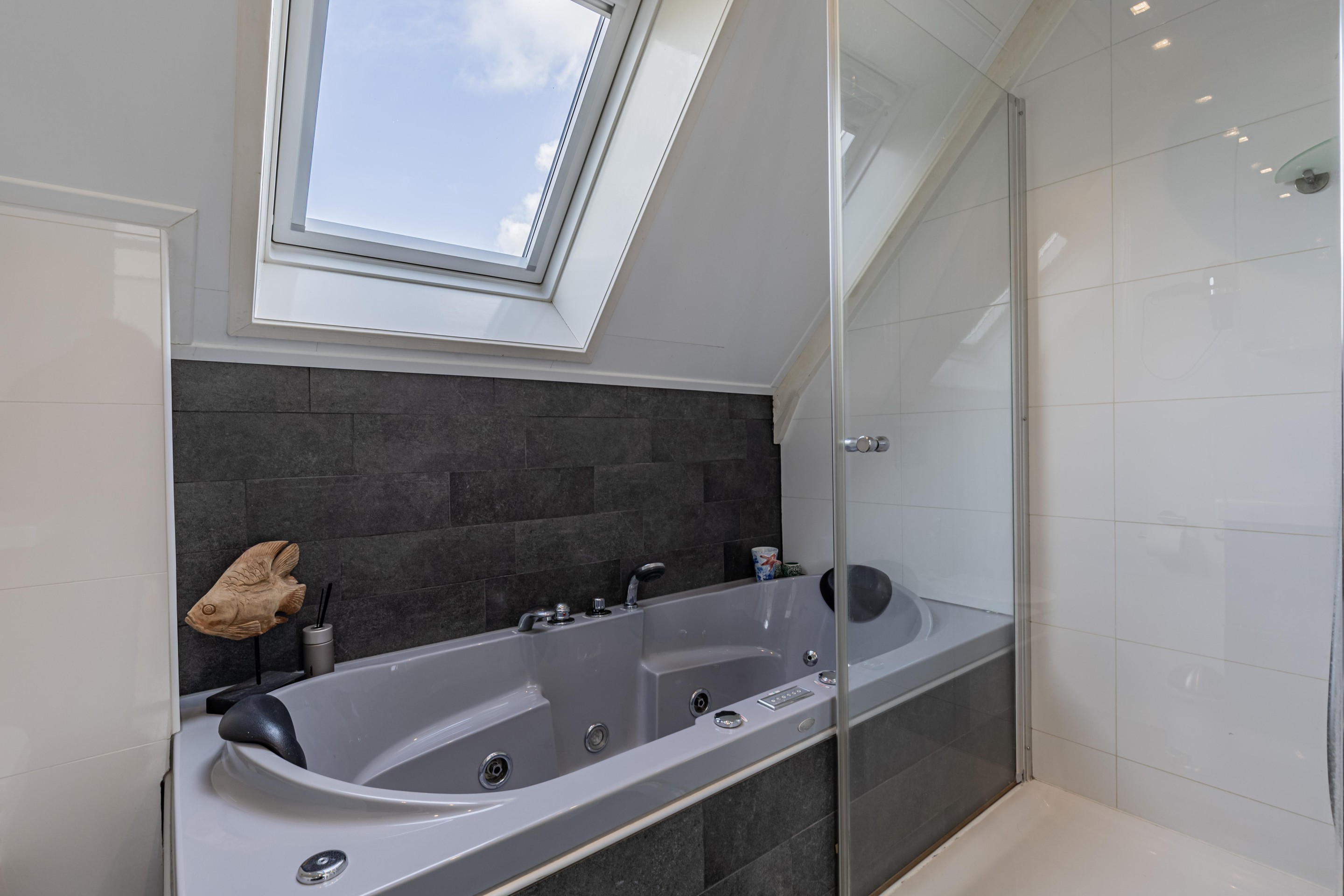 Op de verdieping bevinden zich twee ruime slaapkamers voorzien van airconditioning die beide comfortabel en licht zijn, samen met een moderne badkamer die is uitgerust met een Whirlpool ligbad, een heerlijke plek om te ontspannen na een dag op het water.