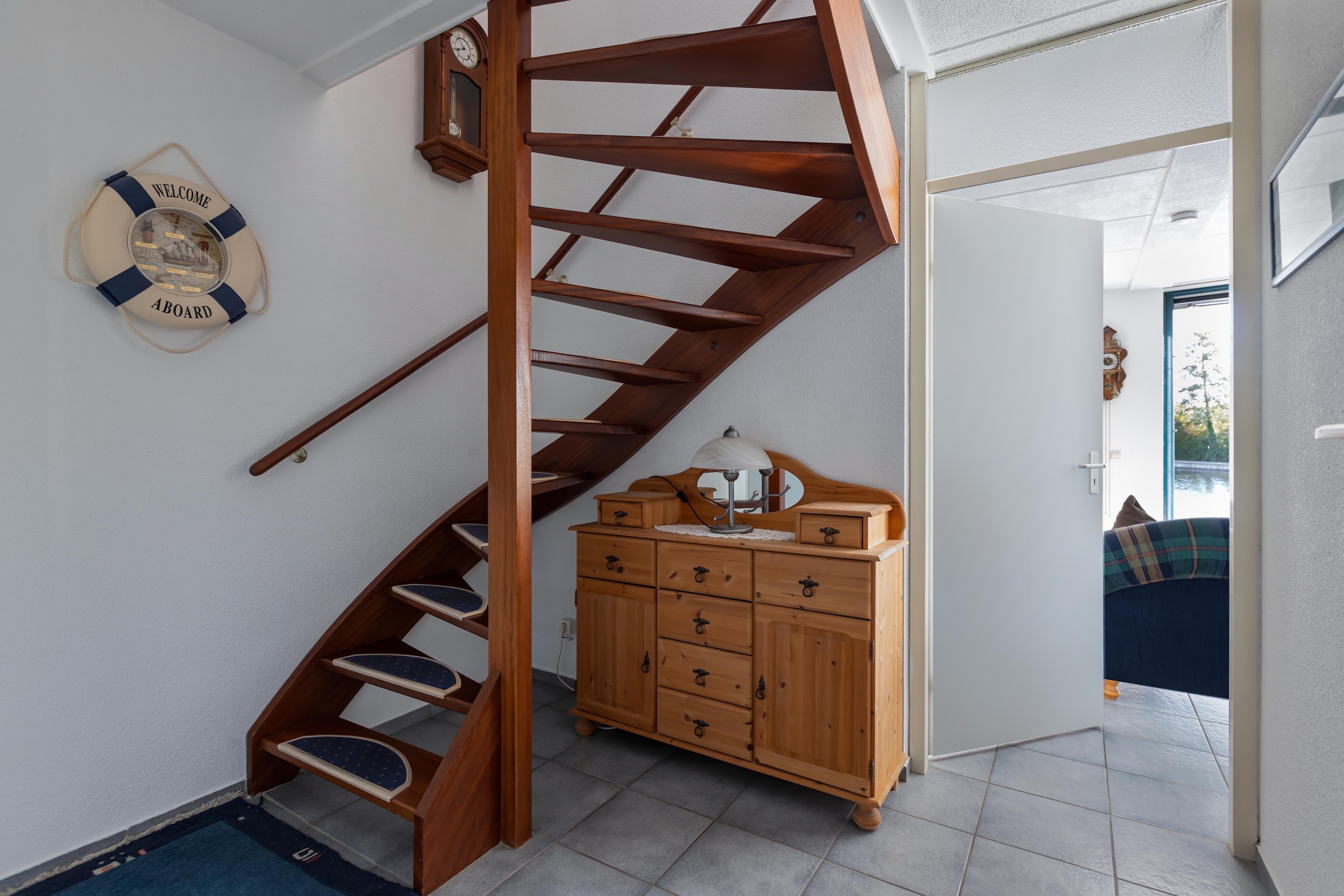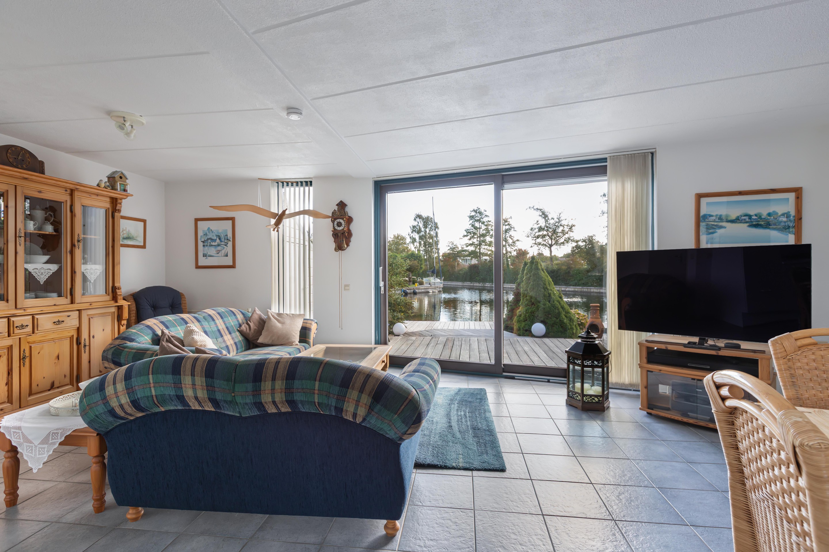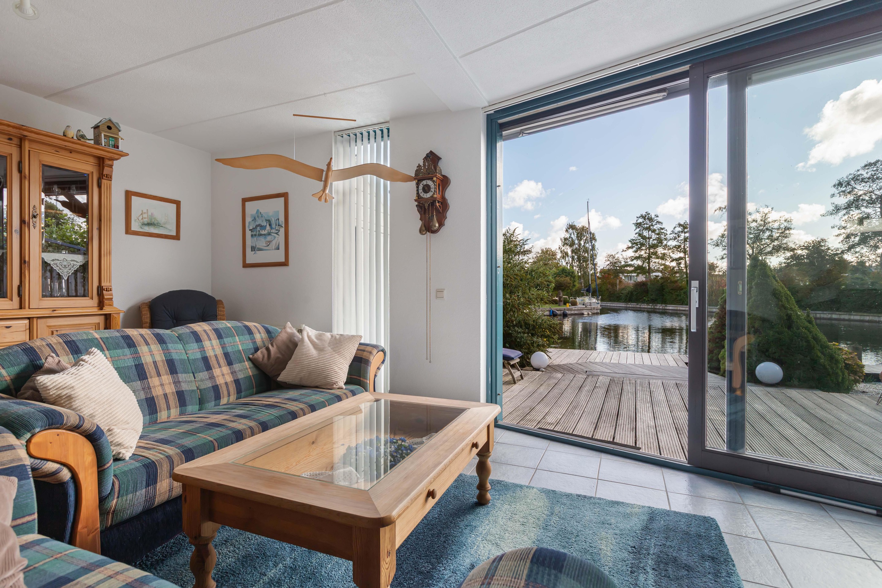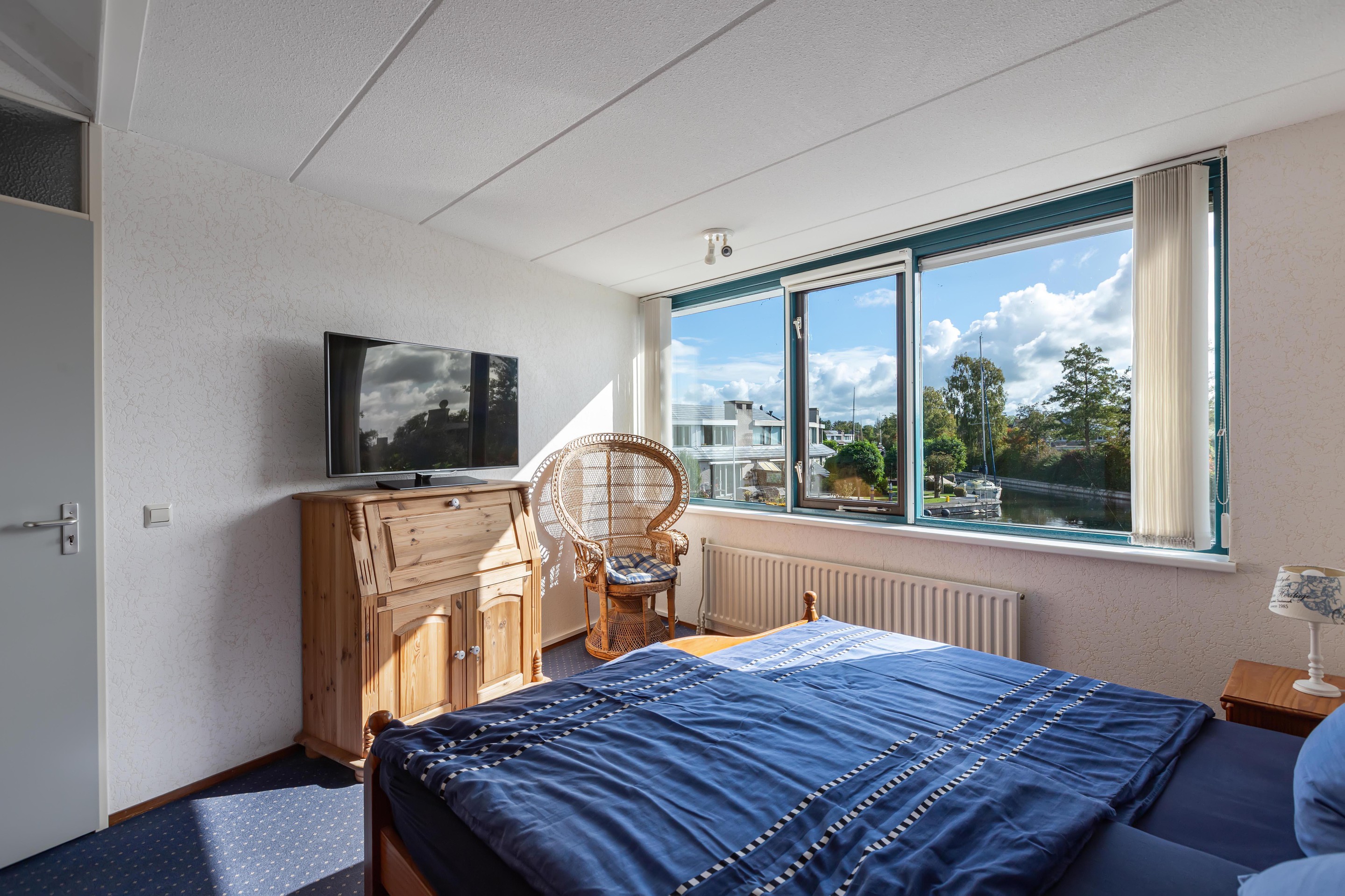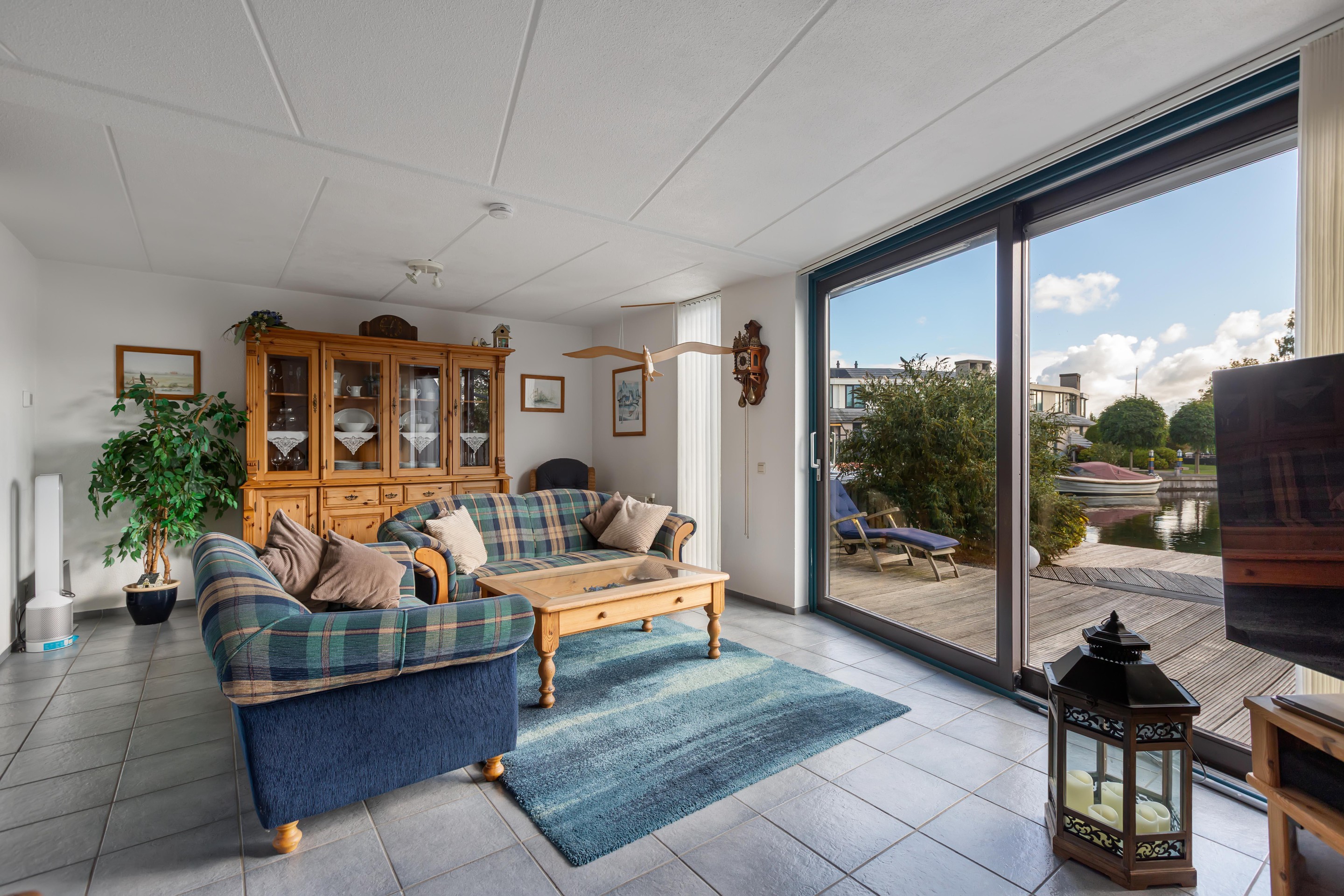 De woonkamer is gericht op de tuin en het water, waardoor binnen en buiten moeiteloos in elkaar overlopen. De achtertuin is fraai aangelegd met vlonders aan de waterkant: een ideale plek voor een kop koffie in de ochtendzon of een gezellige borrel met vrienden.