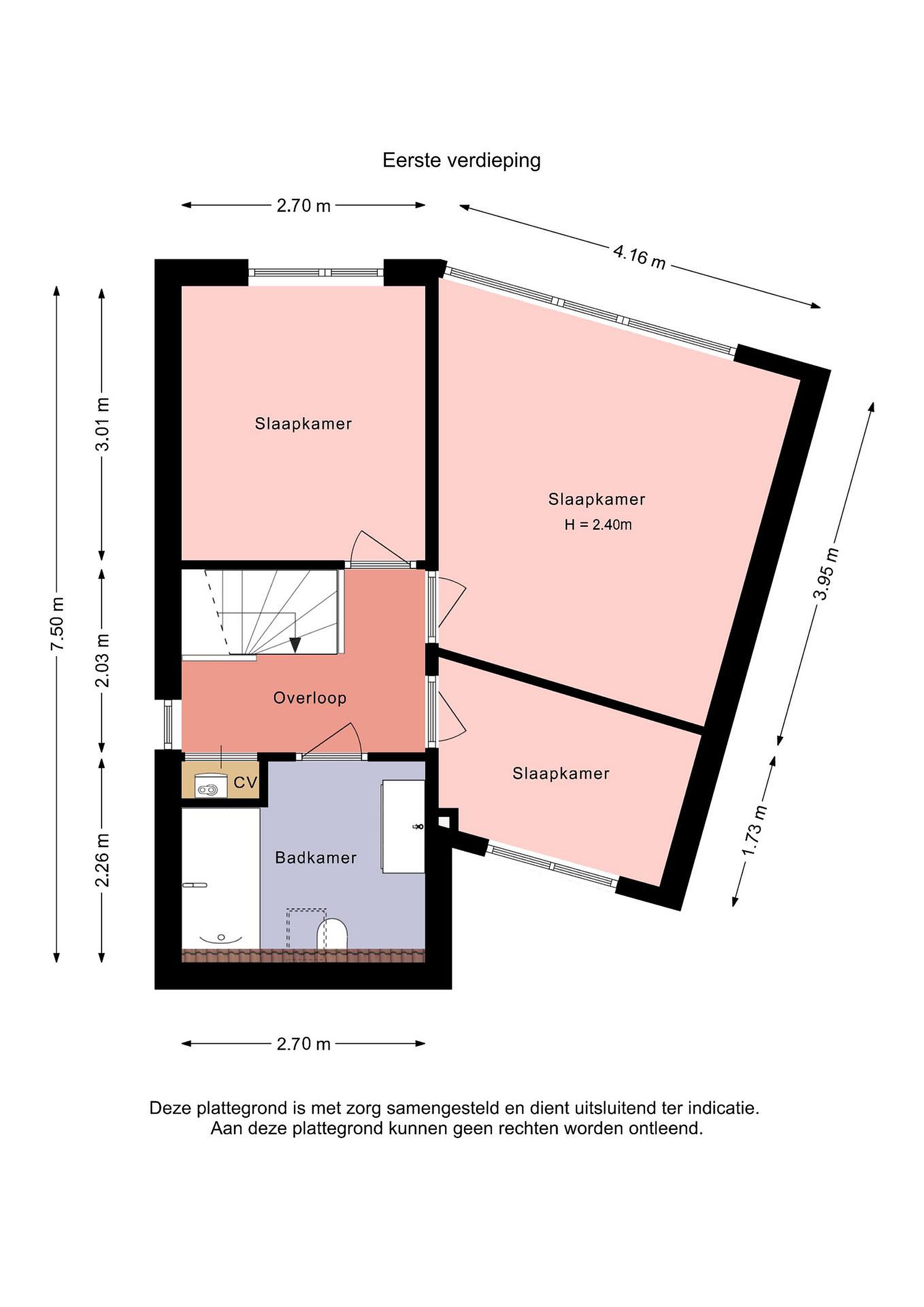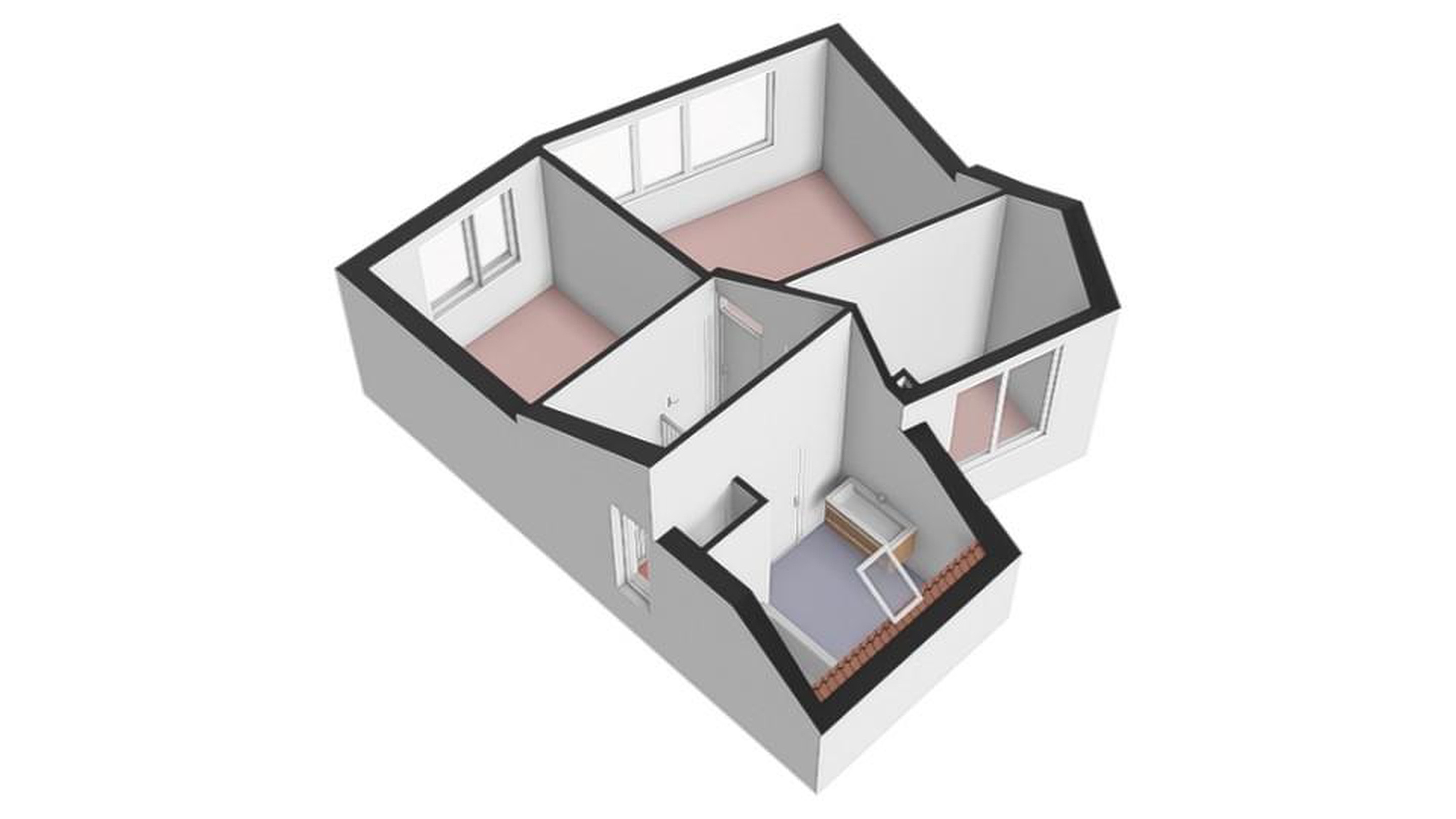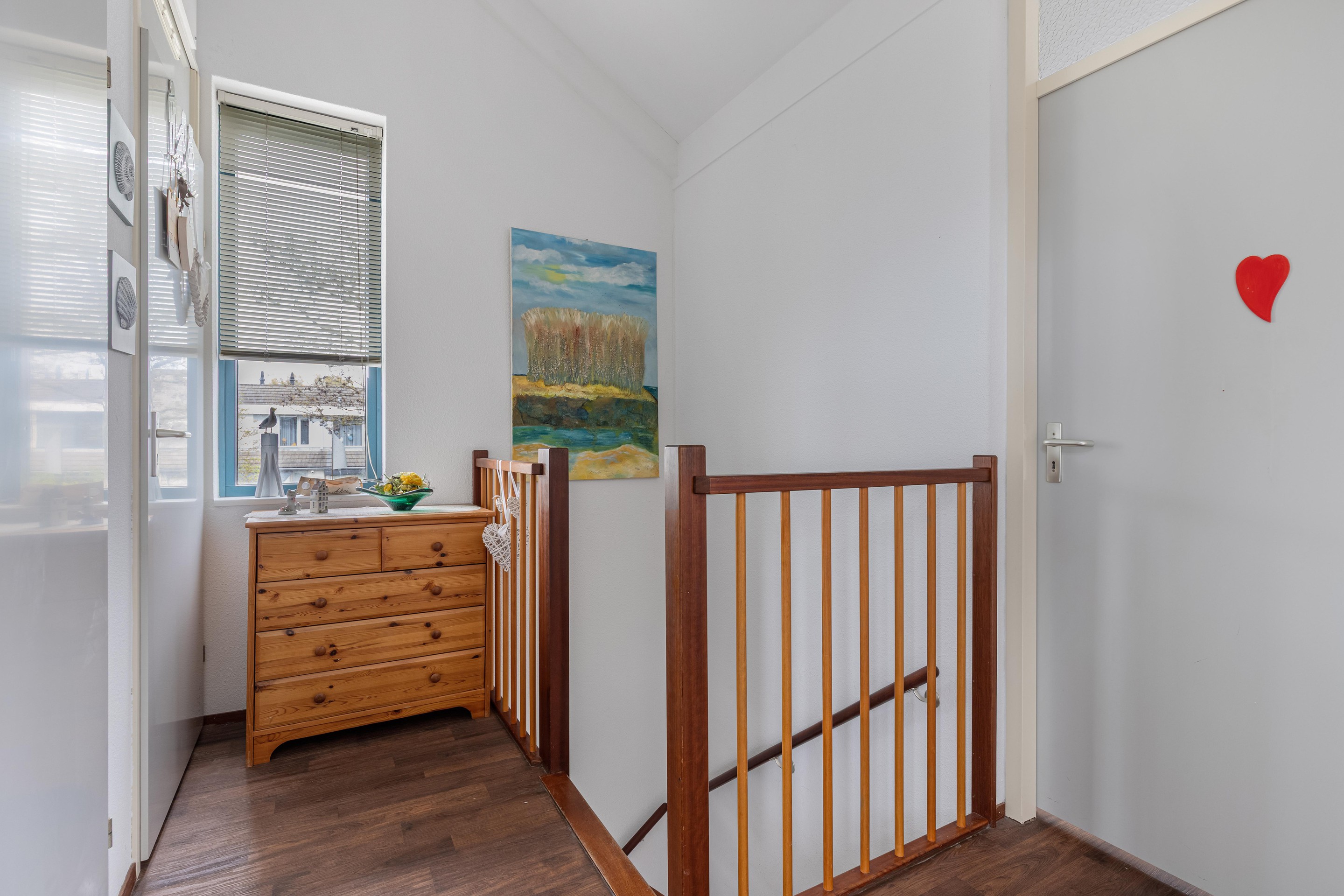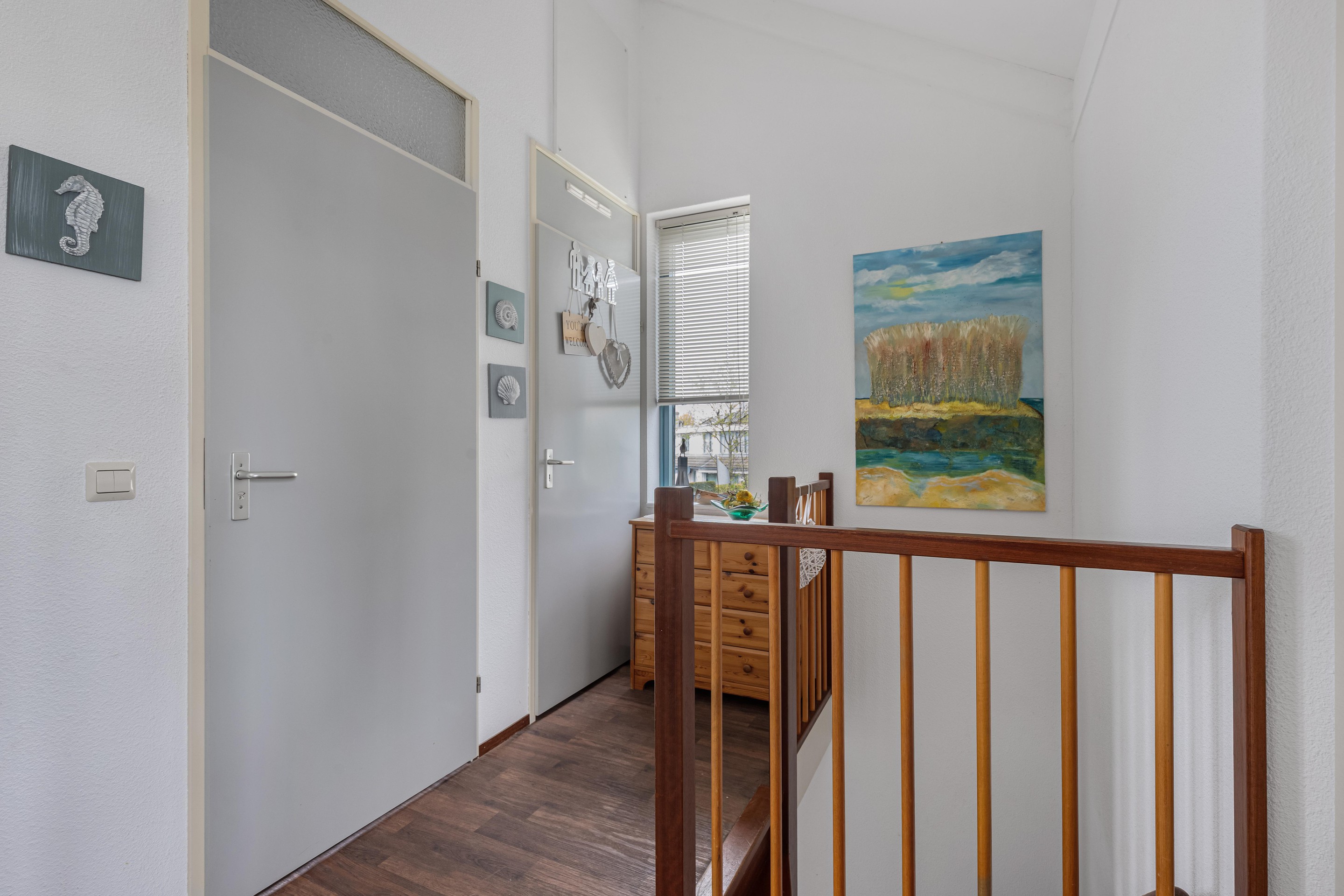 Eerste verdieping overloop, kast met cv-opstelling, 3 slaapkamers en moderne badkamer voorzien van ligbad met douche, toilet en wastafelmeubel.