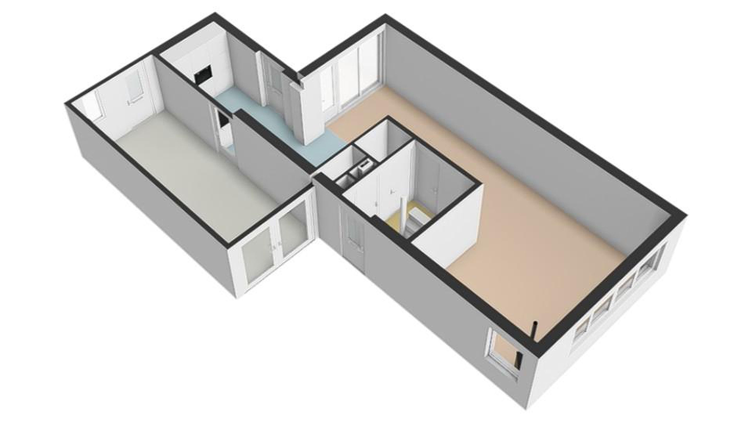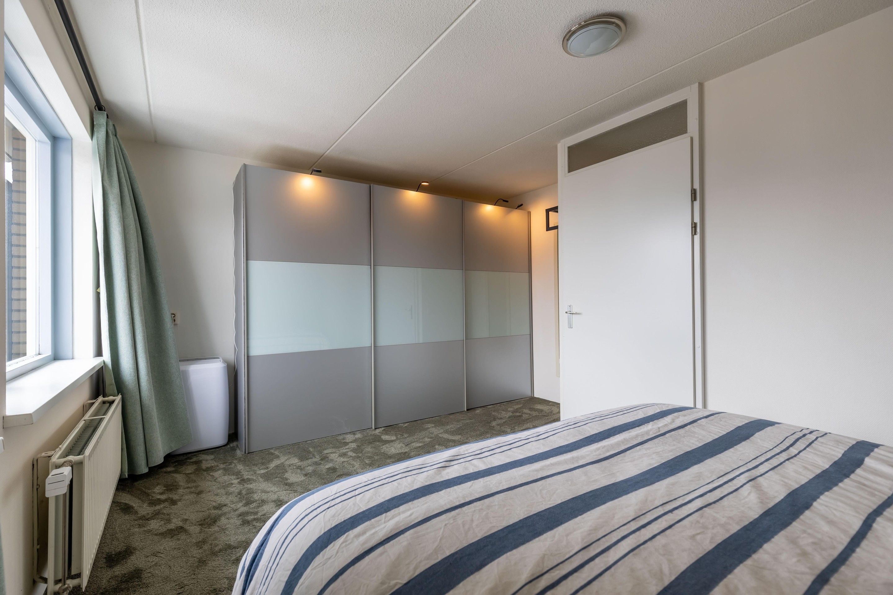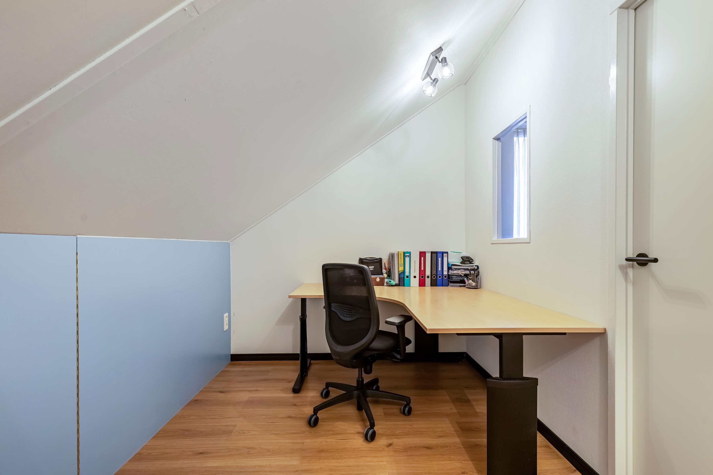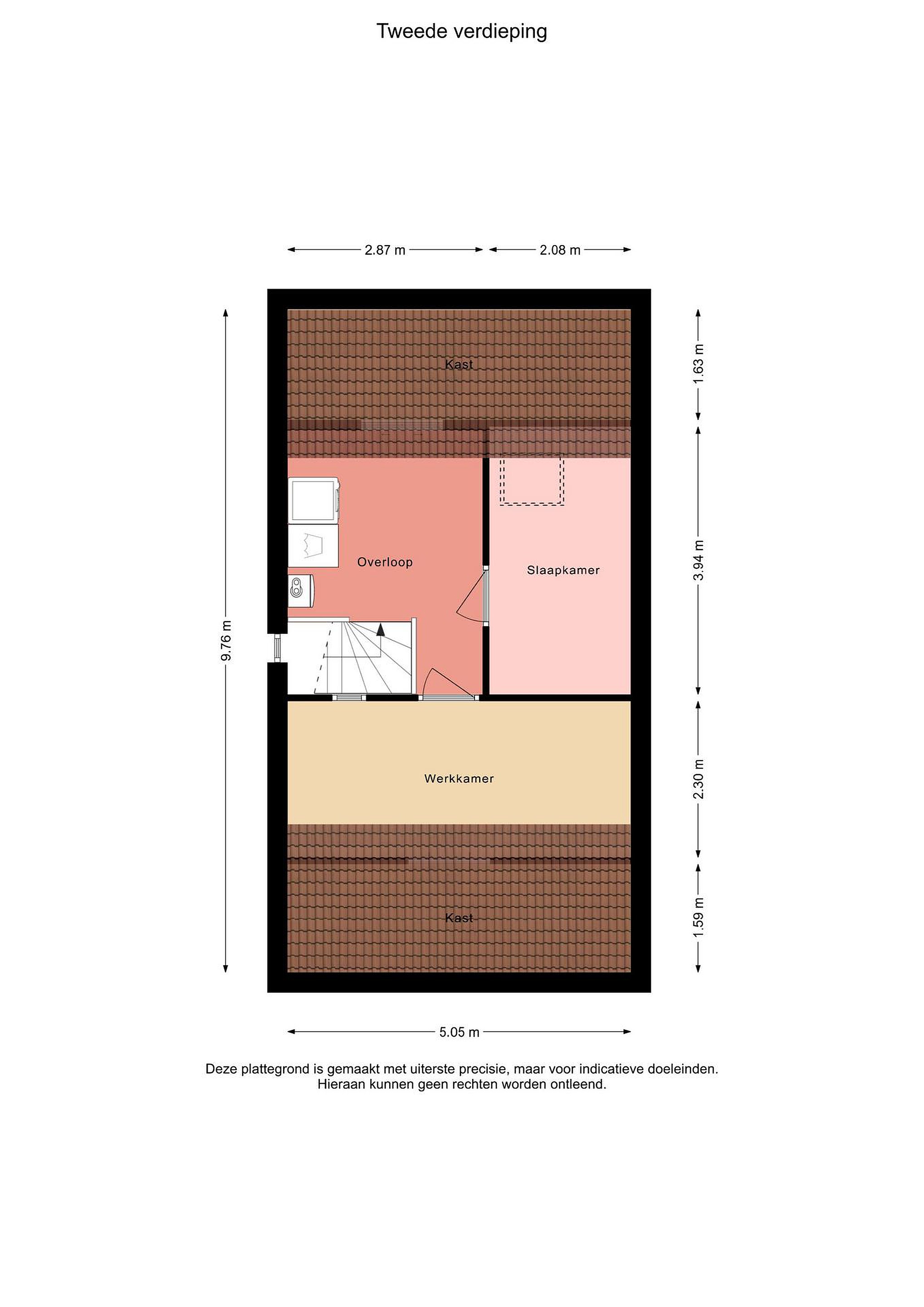 Tweede verdieping overloop met cv-opstelling en witgoedaansluiting, 2 (slaap)kamers.