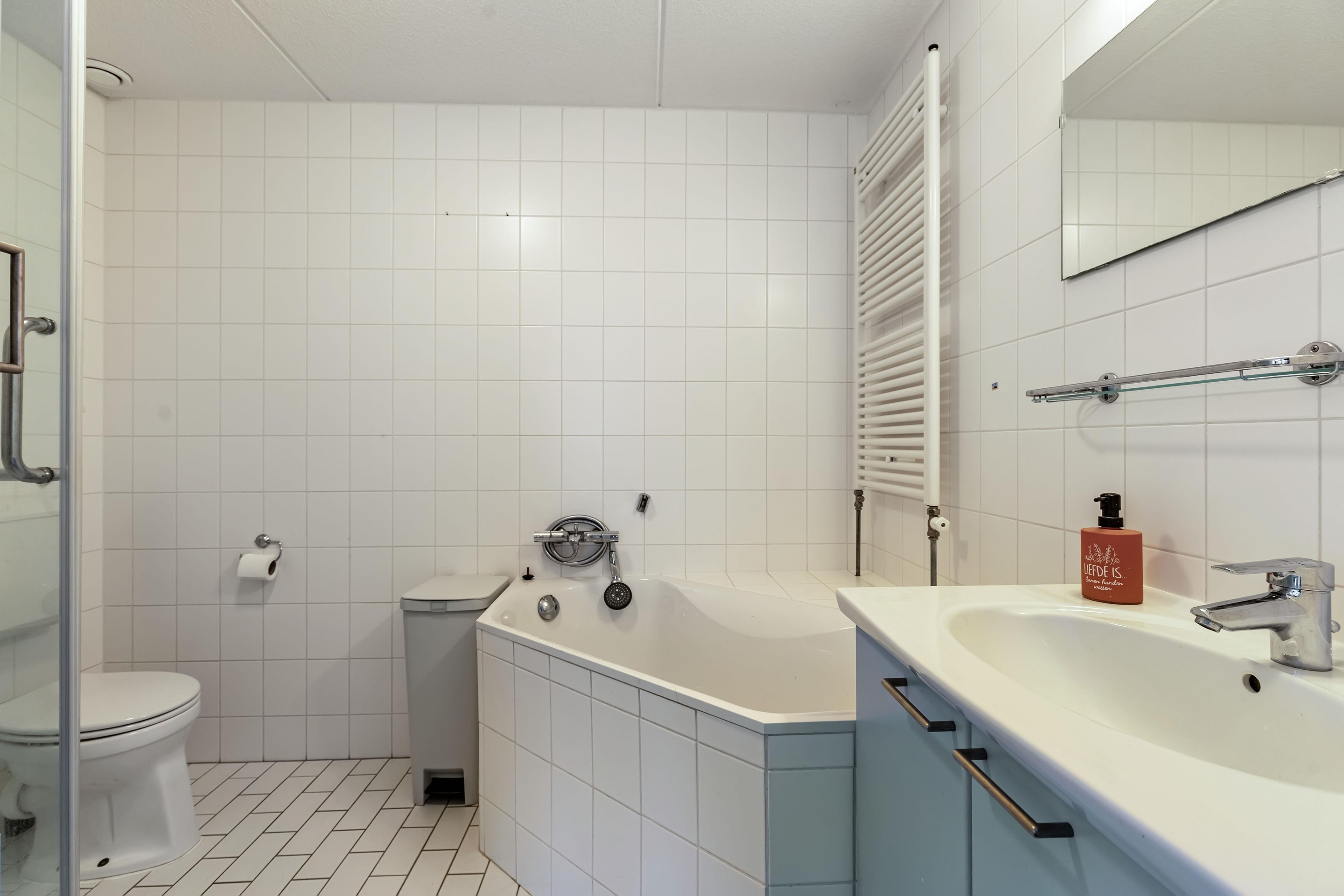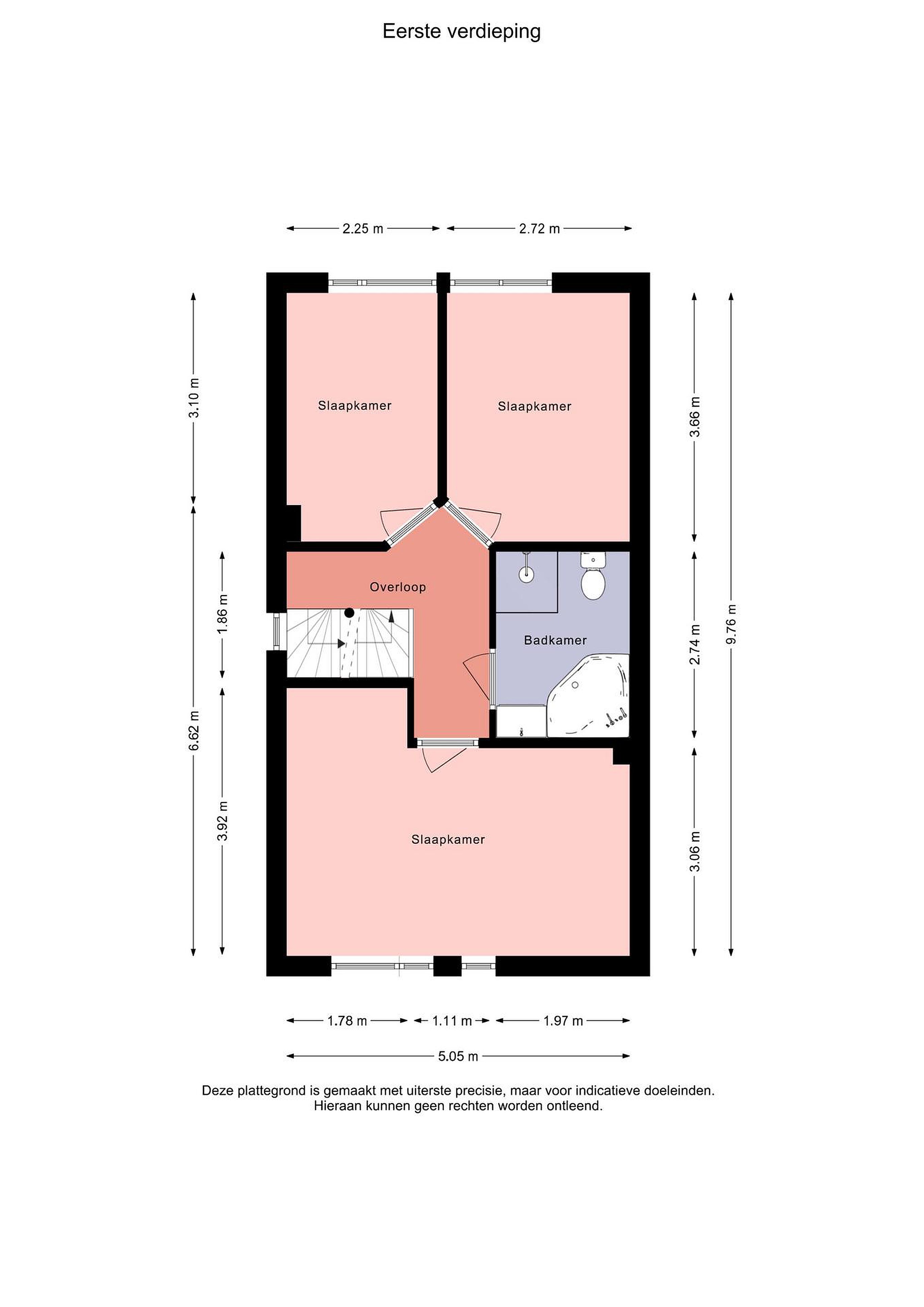 Eerste verdieping overloop, 3 slaapkamers, badkamer voorzien van: toilet, ligbad, douchehoek en wastafelmeubel.
