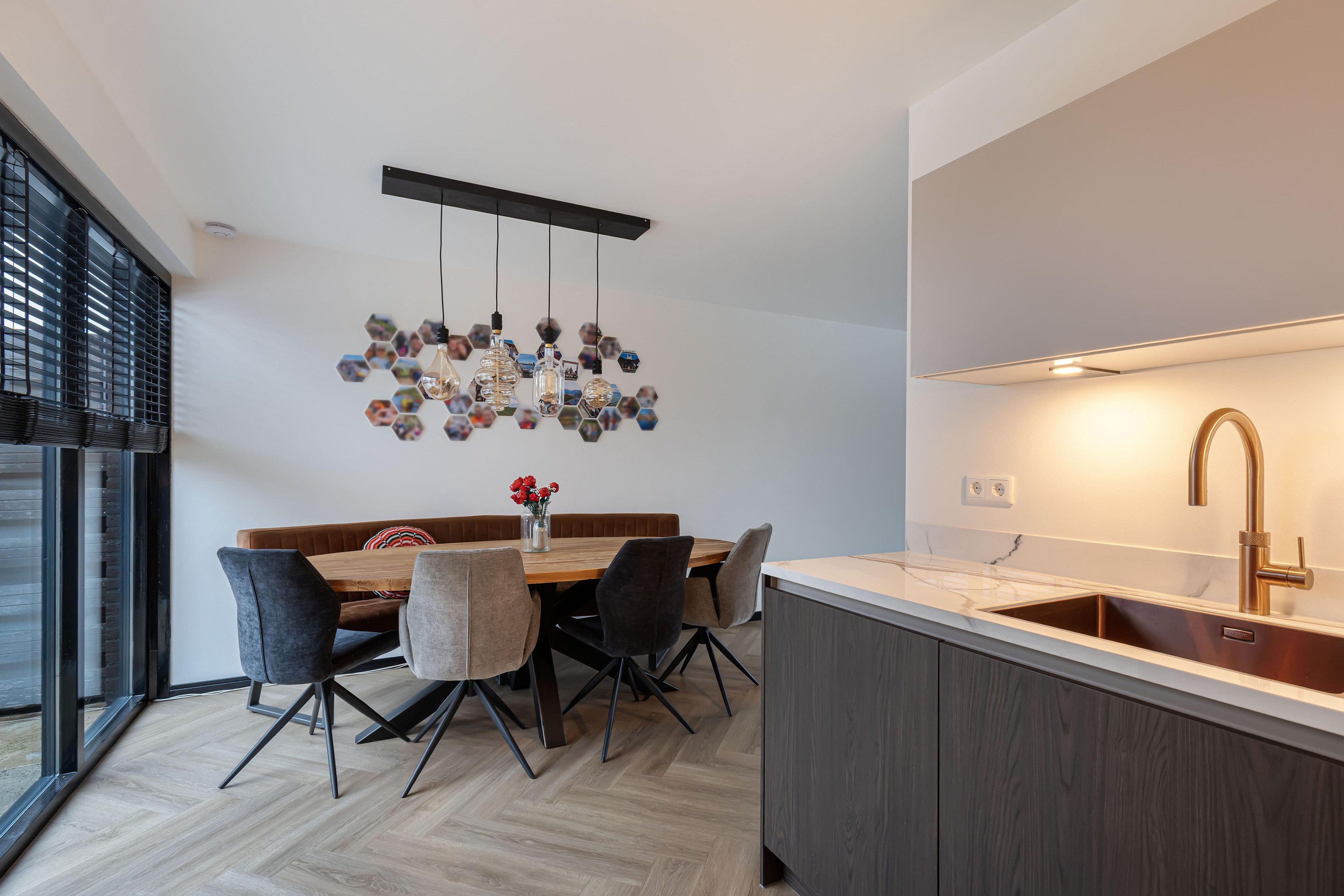 Deze moderne en ruime 2-onder-1-kapwoning is ideaal voor gezinnen en ligt in een kindvriendelijke straat direct naast een mooie speeltuin. De woning beschikt over vijf slaapkamers die ook uitstekend als werk- of hobbyruimte gebruikt kunnen worden, waardoor er volop flexibiliteit is voor het hele gezin. De sfeervolle woonkamer is voorzien van een moderne visgraatvloer met comfortabele vloerverwarming, wat zorgt voor een warme en stijlvolle uitstraling. De vernieuwde keuken heeft een chique uitstraling met keramiekenblad en messingdetails en is uitgerust met inbouwapparatuur, waaronder een wijnkast, waardoor koken en ontspannen in deze woning een plezier wordt.