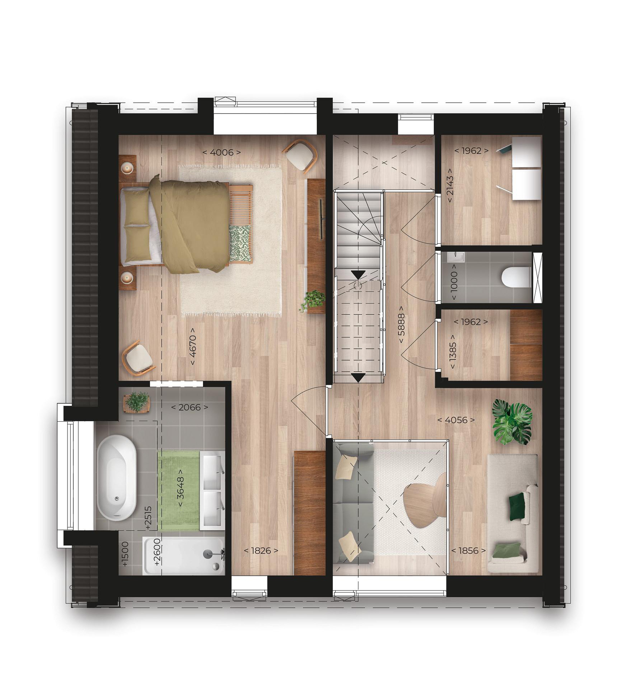 In Houtrijck koop je een huis dat niet alleen goed is voor jou, maar ook voor de volgende generatie. Een toekomstbestendige woning waarmee je nog decennia vooruit kunt. Hier woon je verantwoord en vooruitstrevend. De woningen worden volledig uitgevoerd in houtskeletbouw; een duurzame, biobased bouwmethode die CO₂ opslaat in plaats van uitstoot.