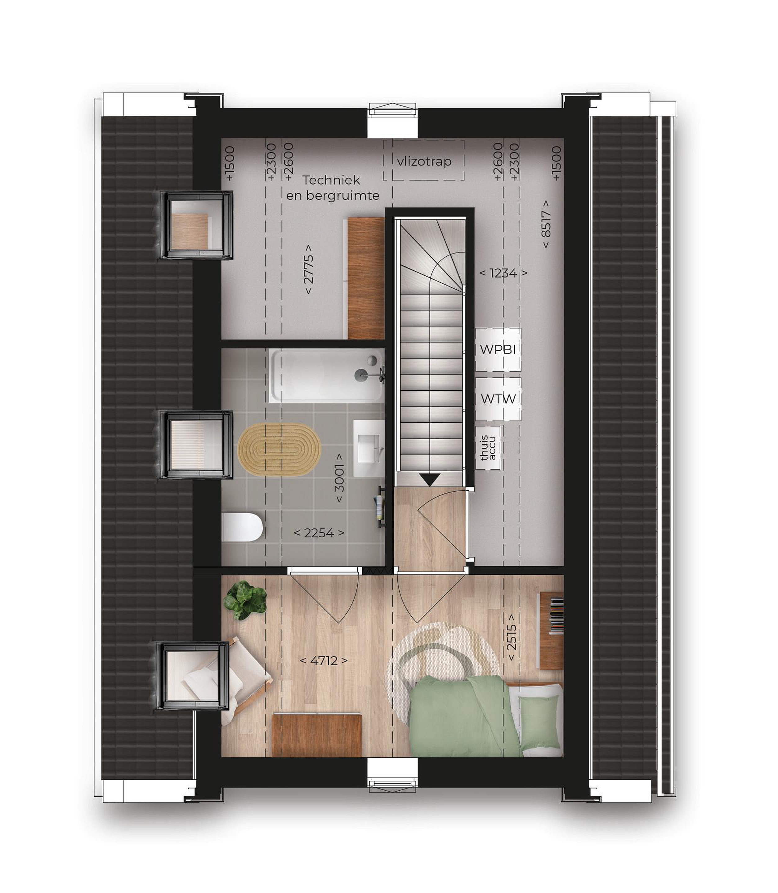 In Houtrijck koop je een huis dat niet alleen goed is voor jou, maar ook voor de volgende generatie. Een toekomstbestendige woning waarmee je nog decennia vooruit kunt. Hier woon je verantwoord en vooruitstrevend. De woningen worden volledig uitgevoerd in houtskeletbouw; een duurzame, biobased bouwmethode die CO₂ opslaat in plaats van uitstoot.
