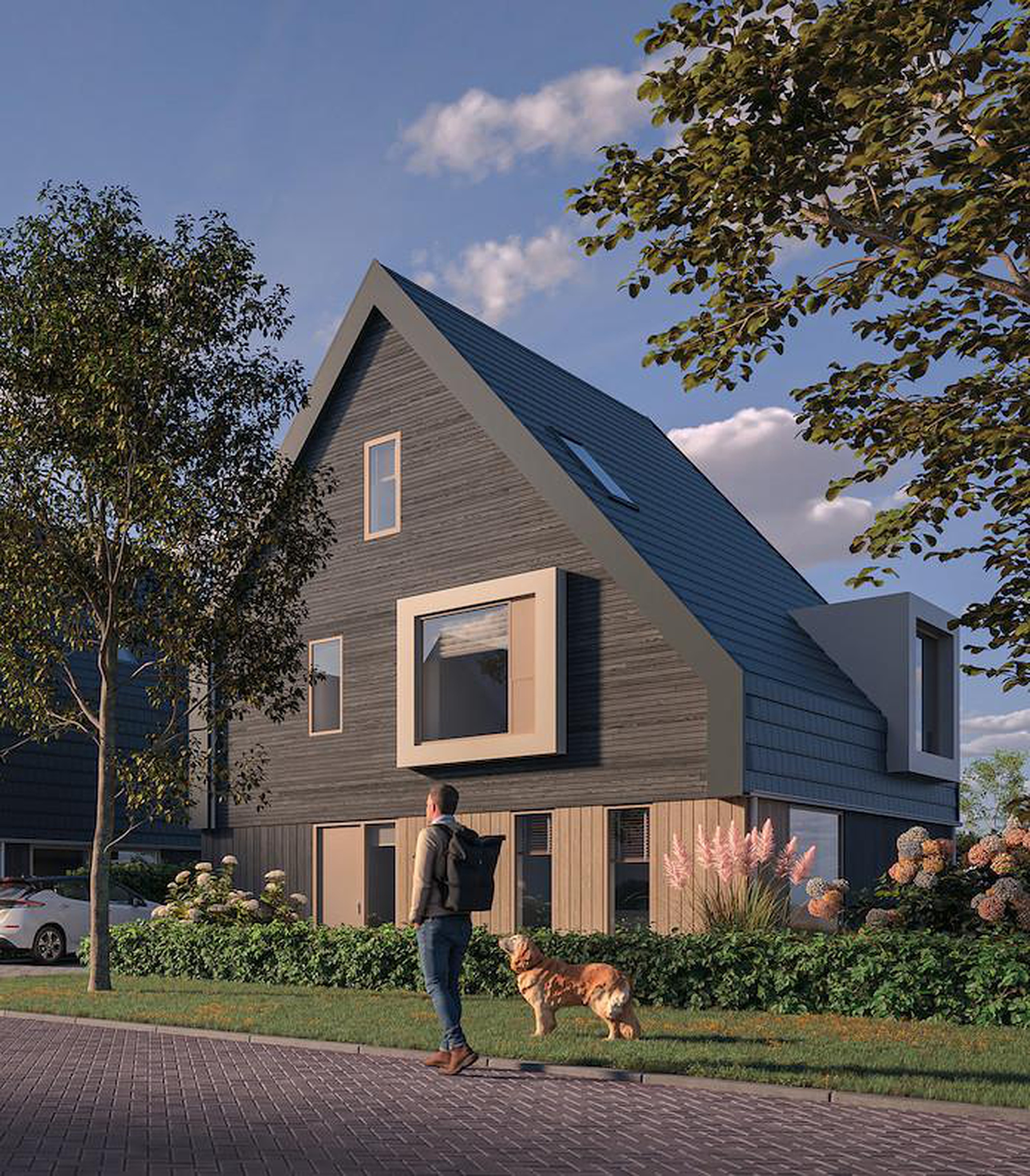 In Houtrijck koop je een huis dat niet alleen goed is voor jou, maar ook voor de volgende generatie. Een toekomstbestendige woning waarmee je nog decennia vooruit kunt. Hier woon je verantwoord en vooruitstrevend. De woningen worden volledig uitgevoerd in houtskeletbouw; een duurzame, biobased bouwmethode die CO₂ opslaat in plaats van uitstoot.