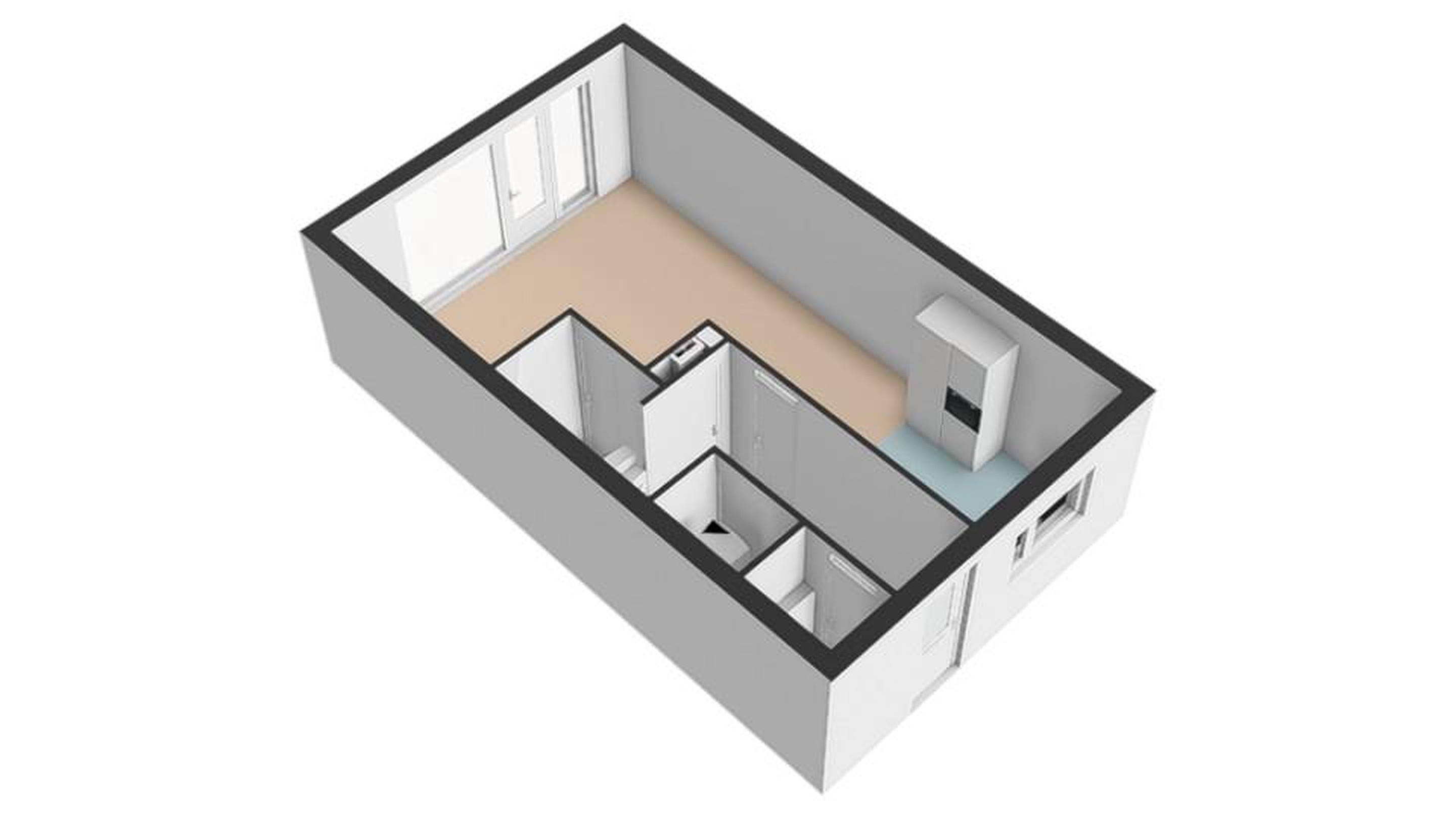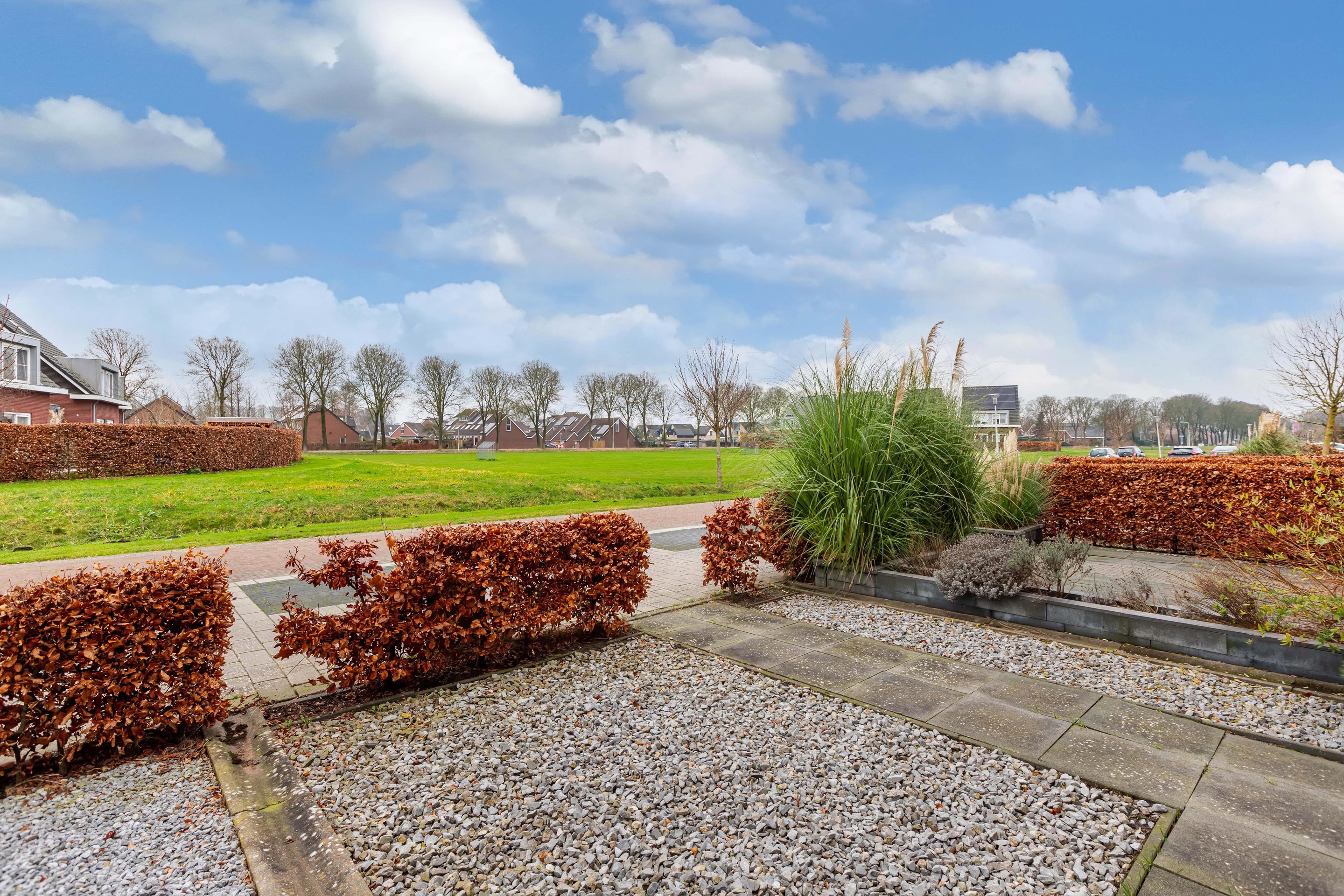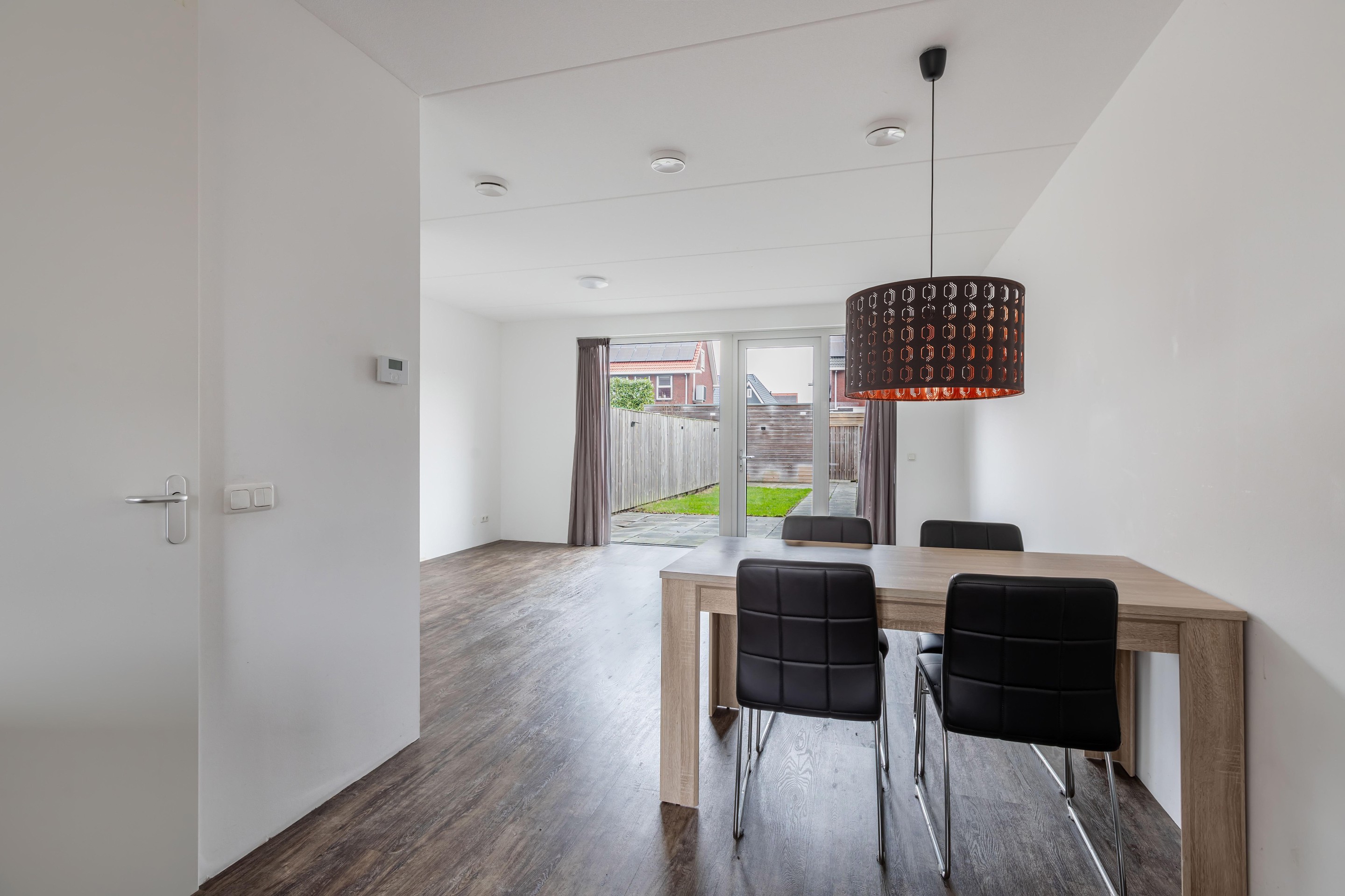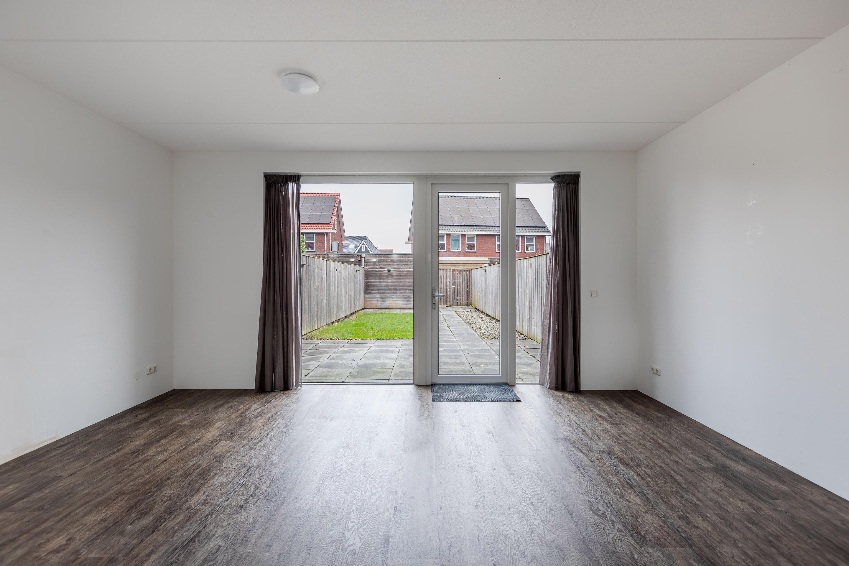 De tuingerichte woonkamer beschikt over een groot raam en een deur naar de royale tuin, waardoor er veel daglicht binnenvalt en je een prettige verbinding hebt met buiten. Aan de voorzijde bevindt zich de moderne keuken, een fijne plek om te koken met uitzicht op het vrije straatbeeld.