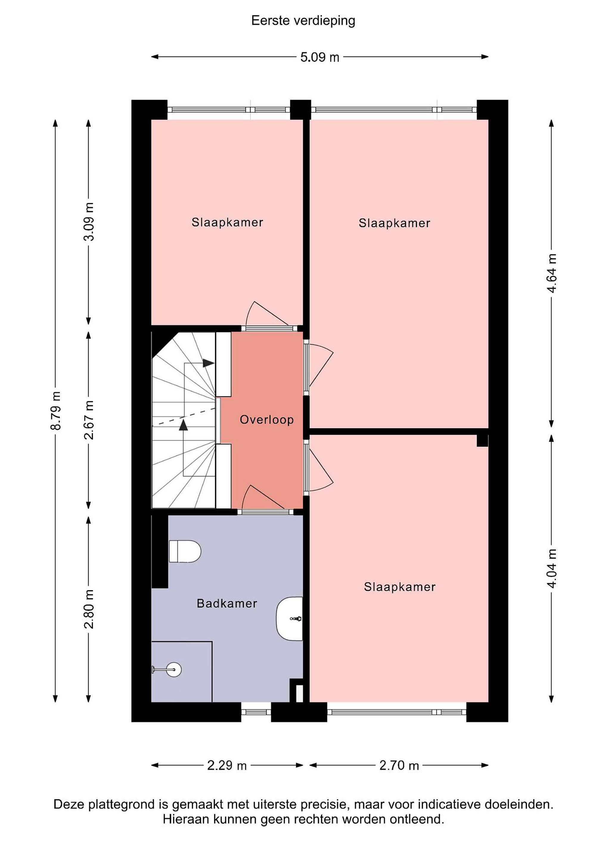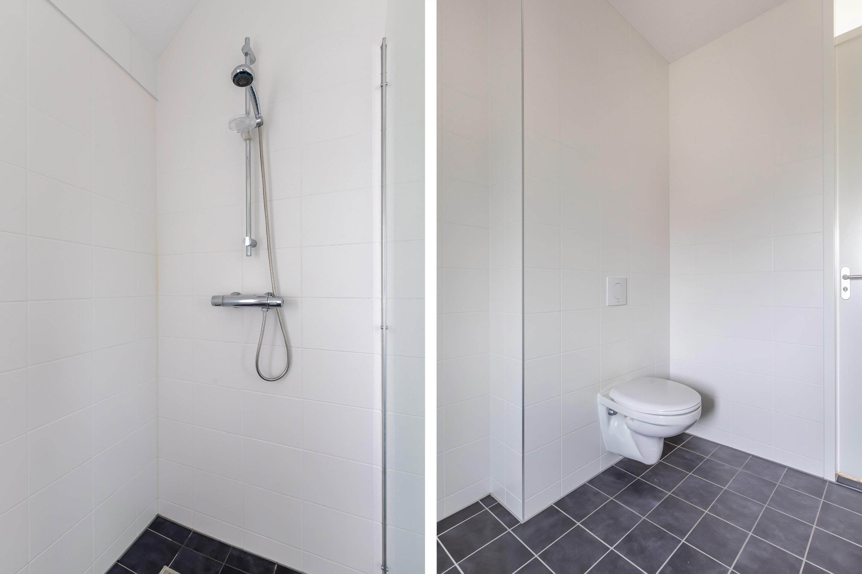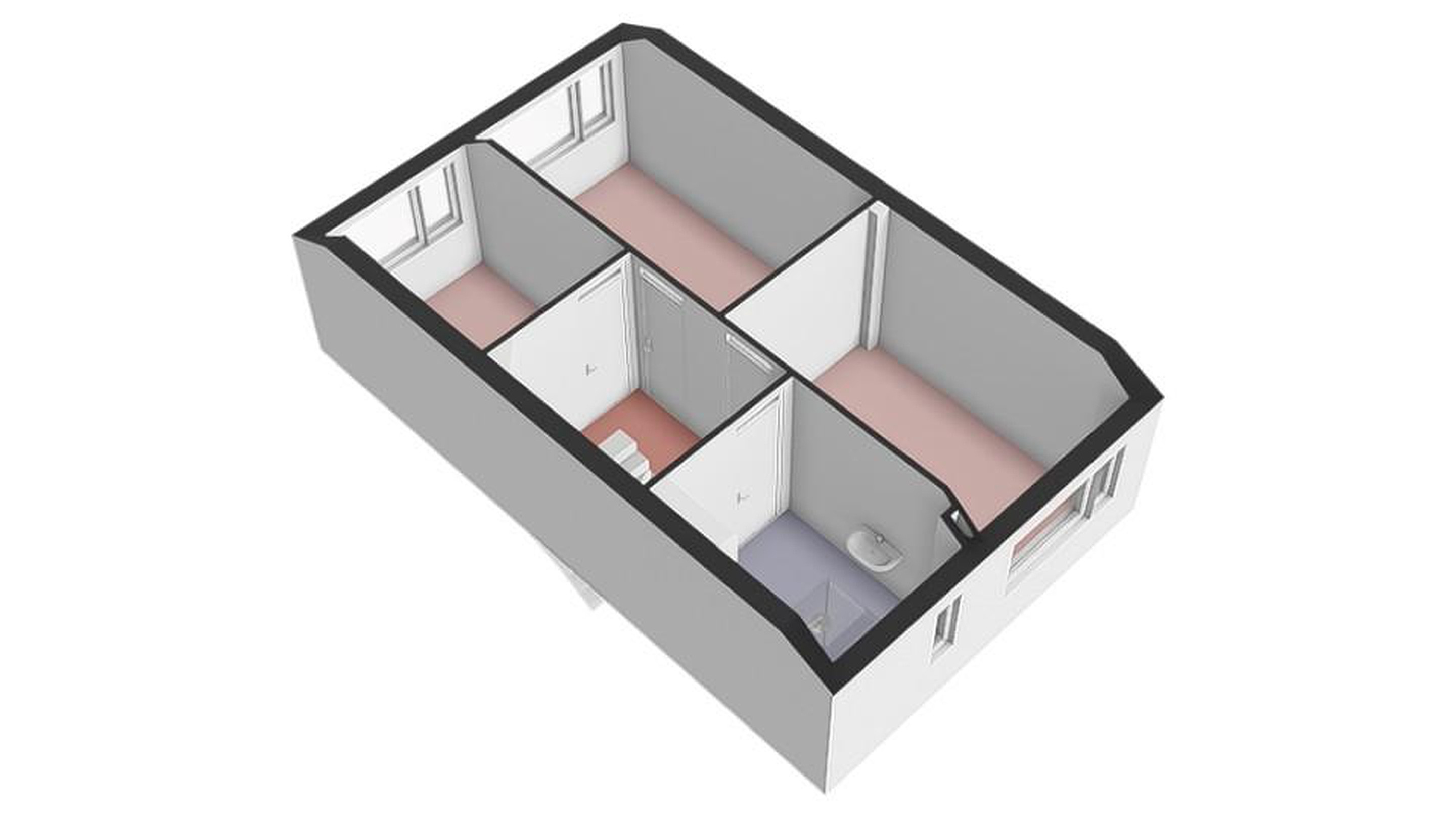 Eerste verdieping overloop, 3 slaapkamers en badkamer voorzien van toilet, douchehoek en wastafel.
