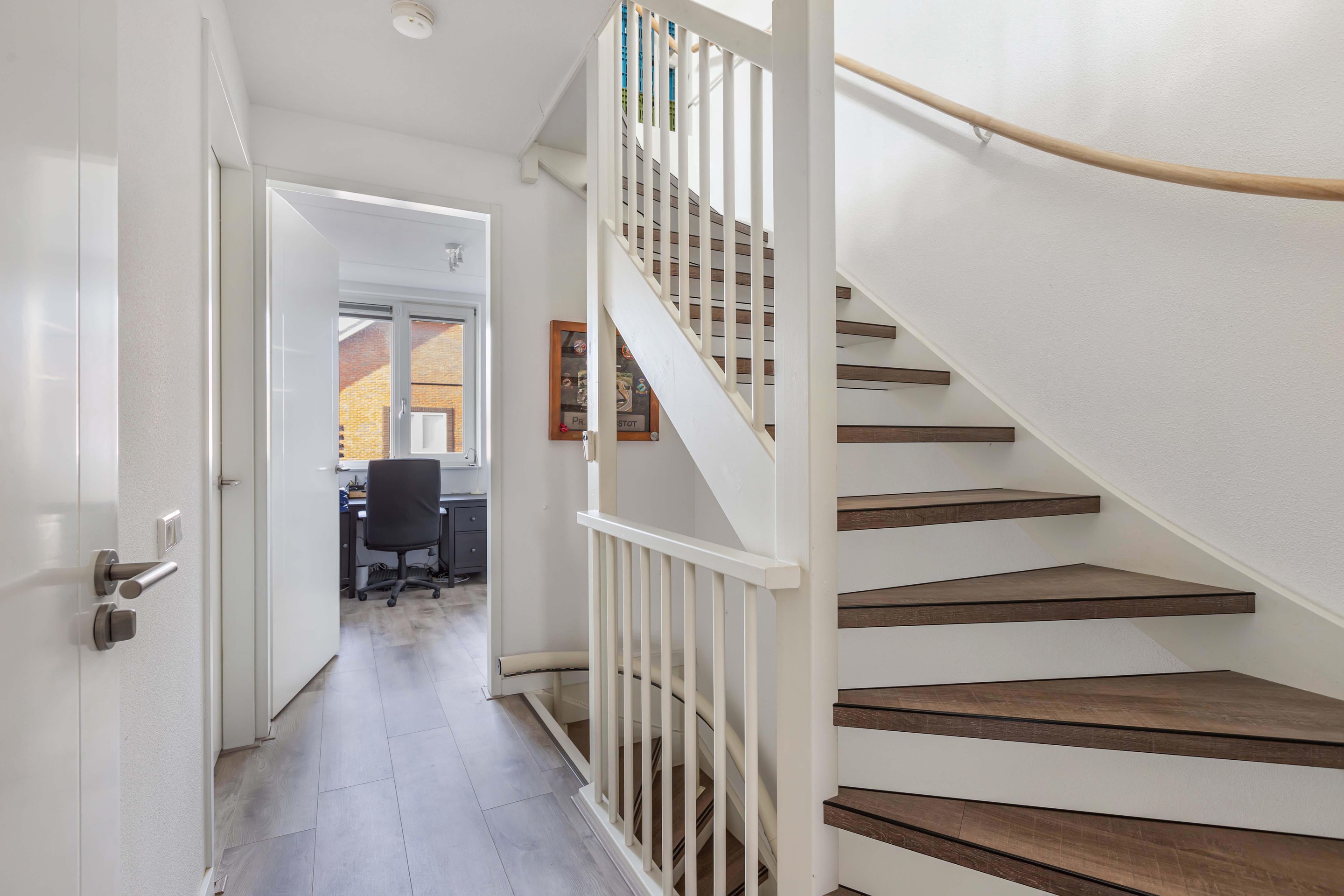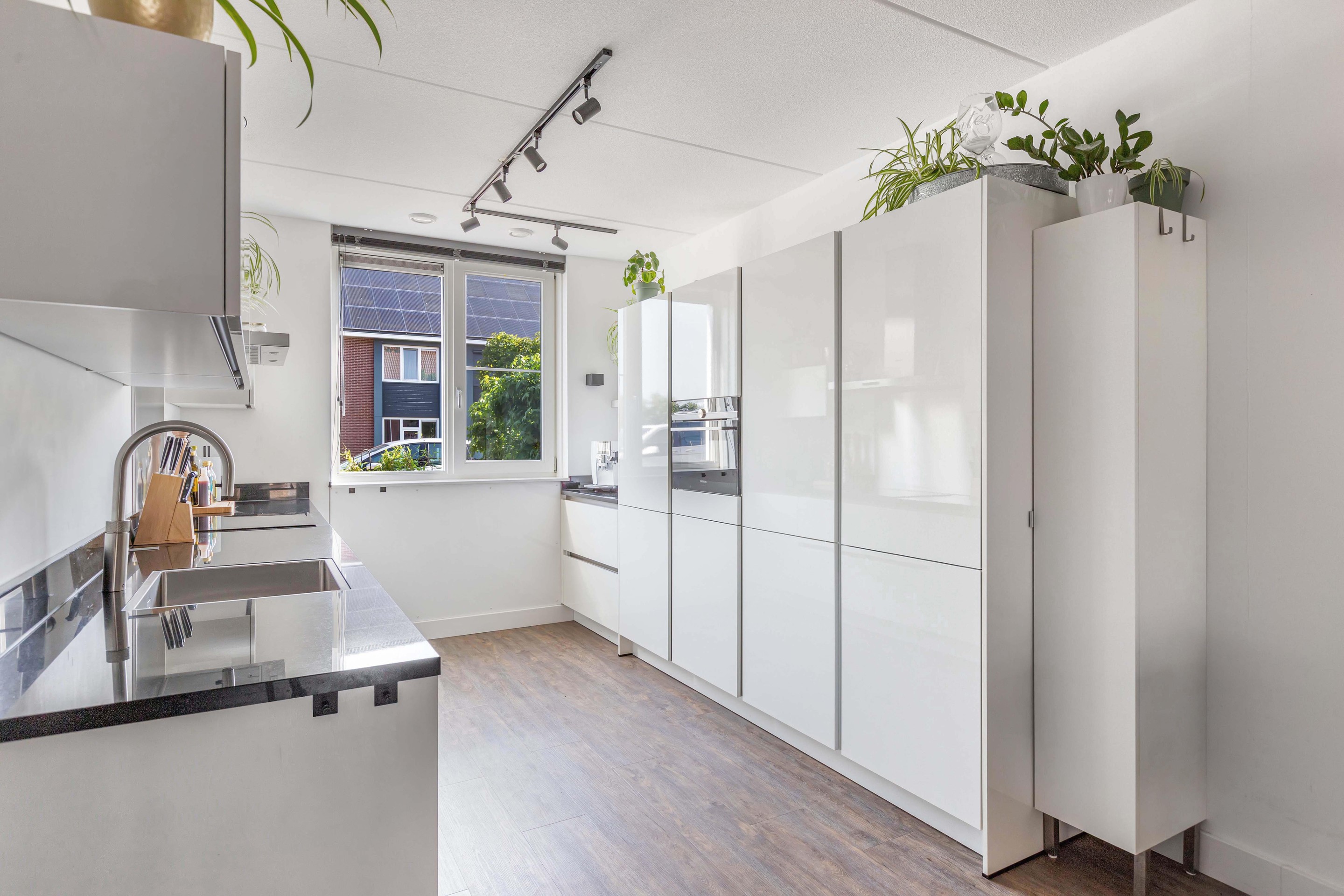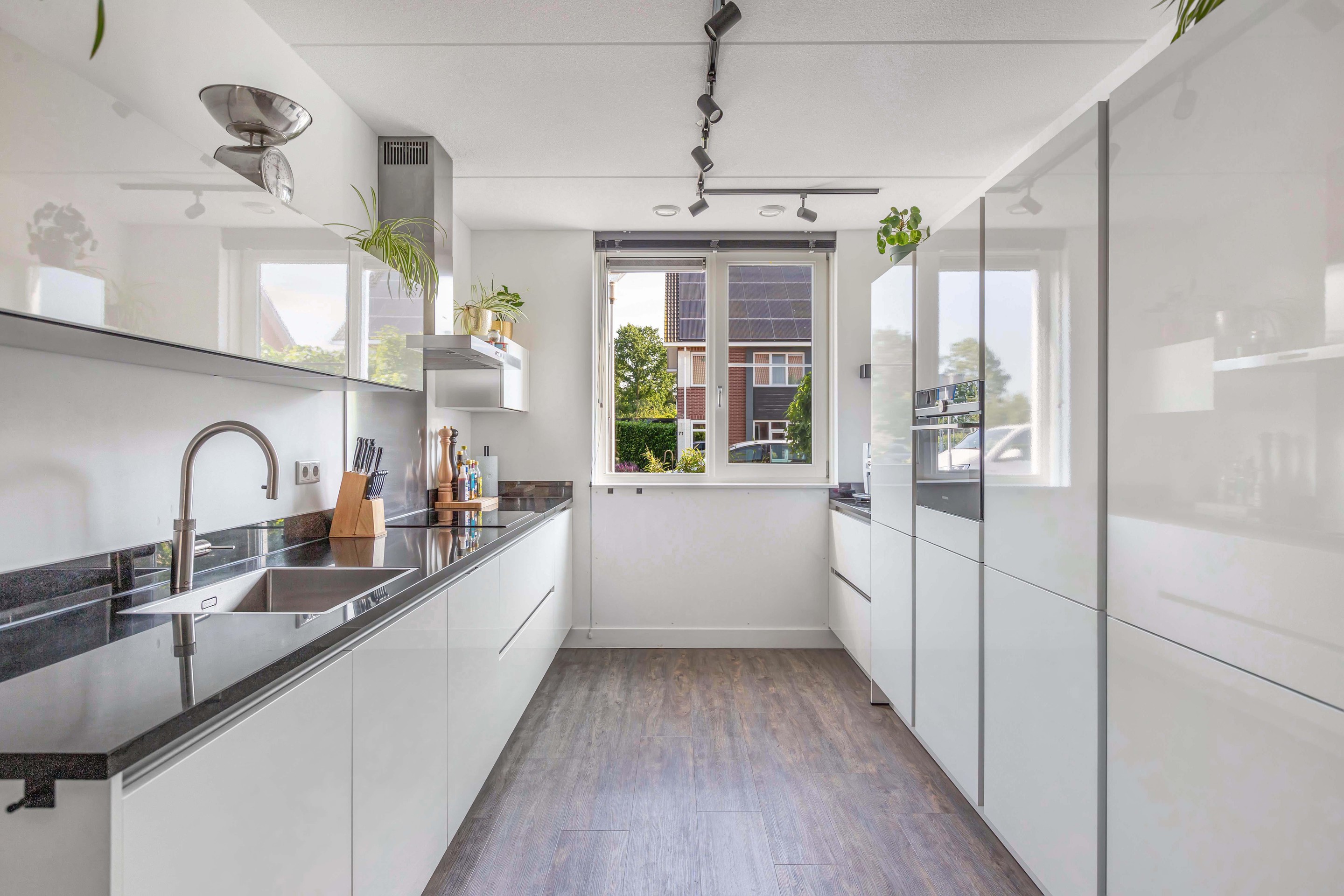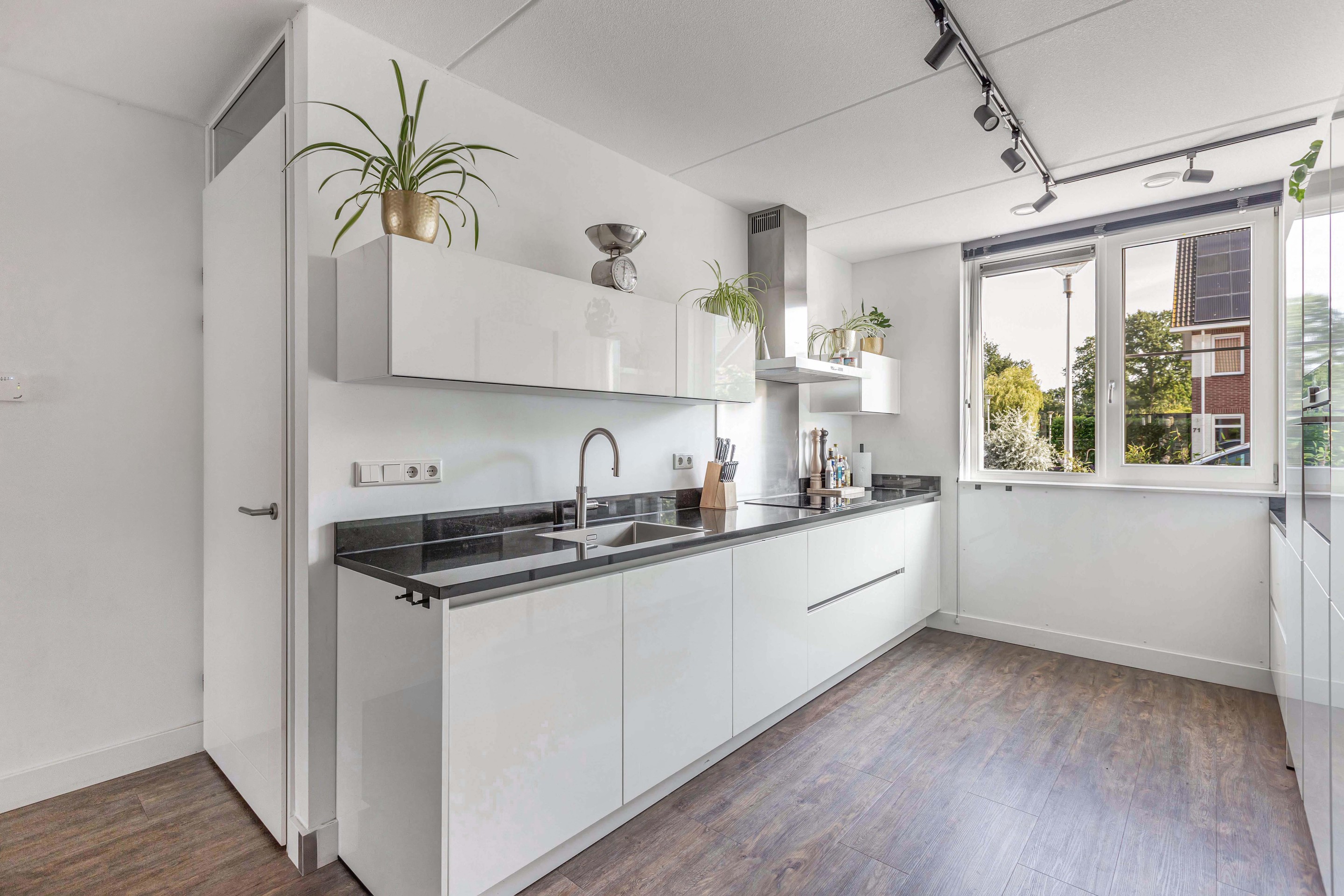 De keuken aan de voorzijde is strak en modern, voorzien van inbouwapparatuur en een Quooker, een ideale plek voor iedere thuiskok. Op de eerste verdieping bevinden zich drie volwaardige slaapkamers en een eigentijdse badkamer, waarbij de rechte wanden zorgen voor optimaal gebruik van de ruimte. De zolderverdieping biedt plaats aan een vierde slaapkamer en handige bergruimte.