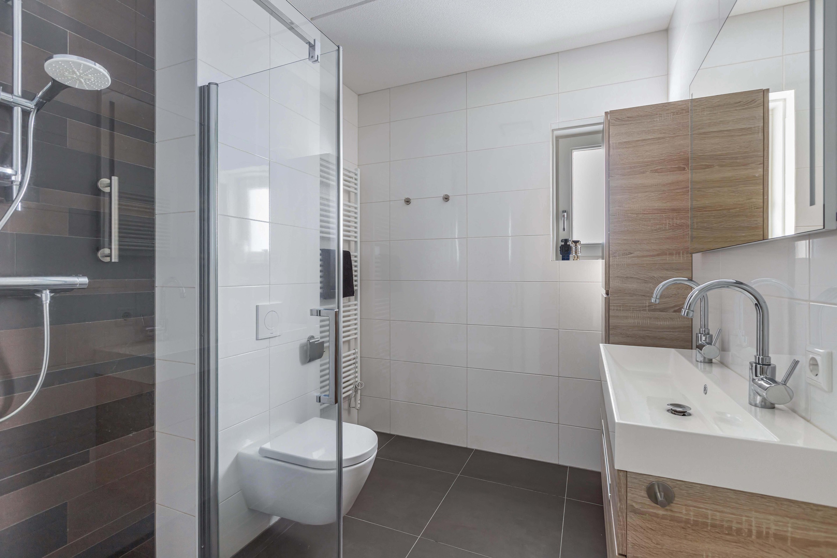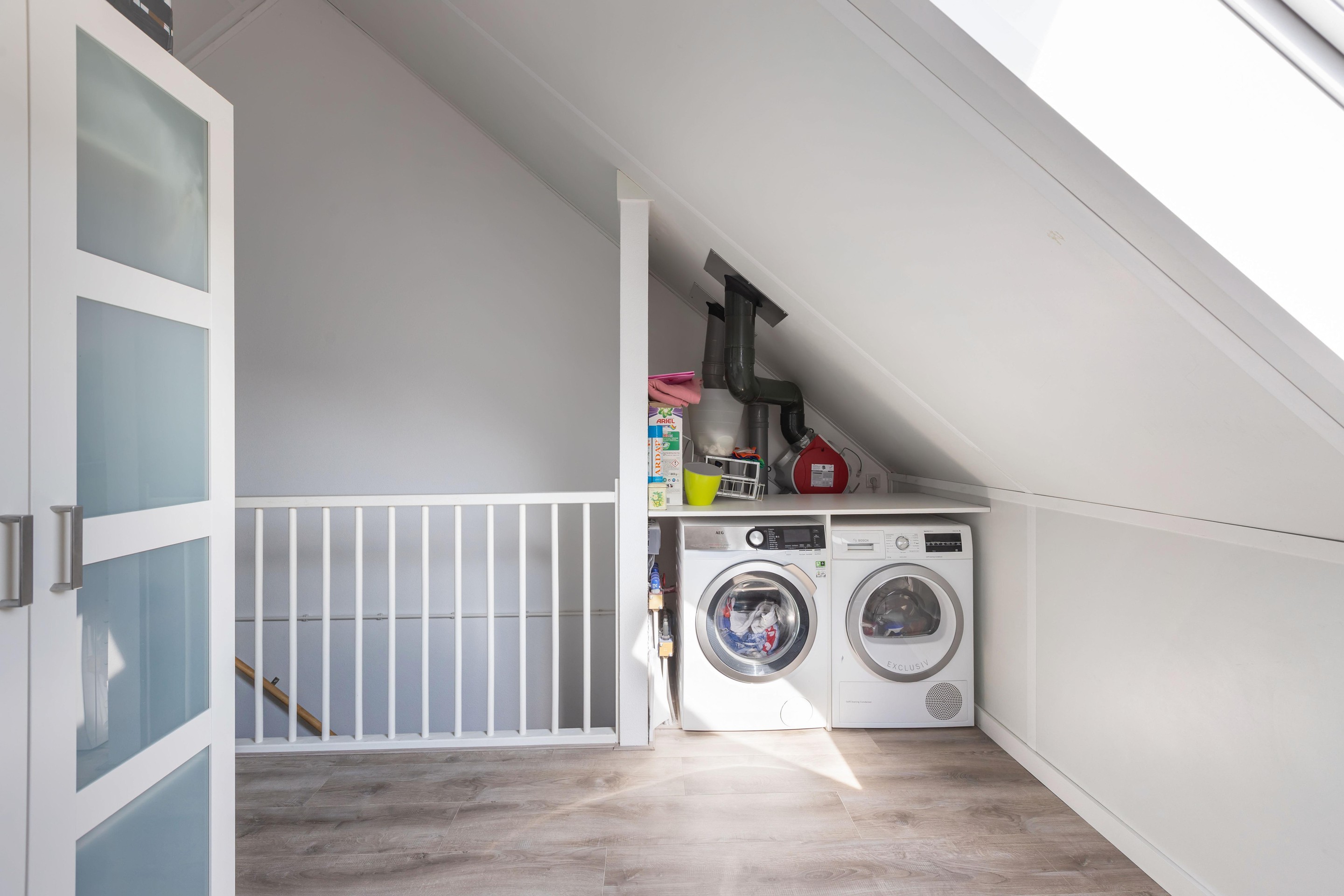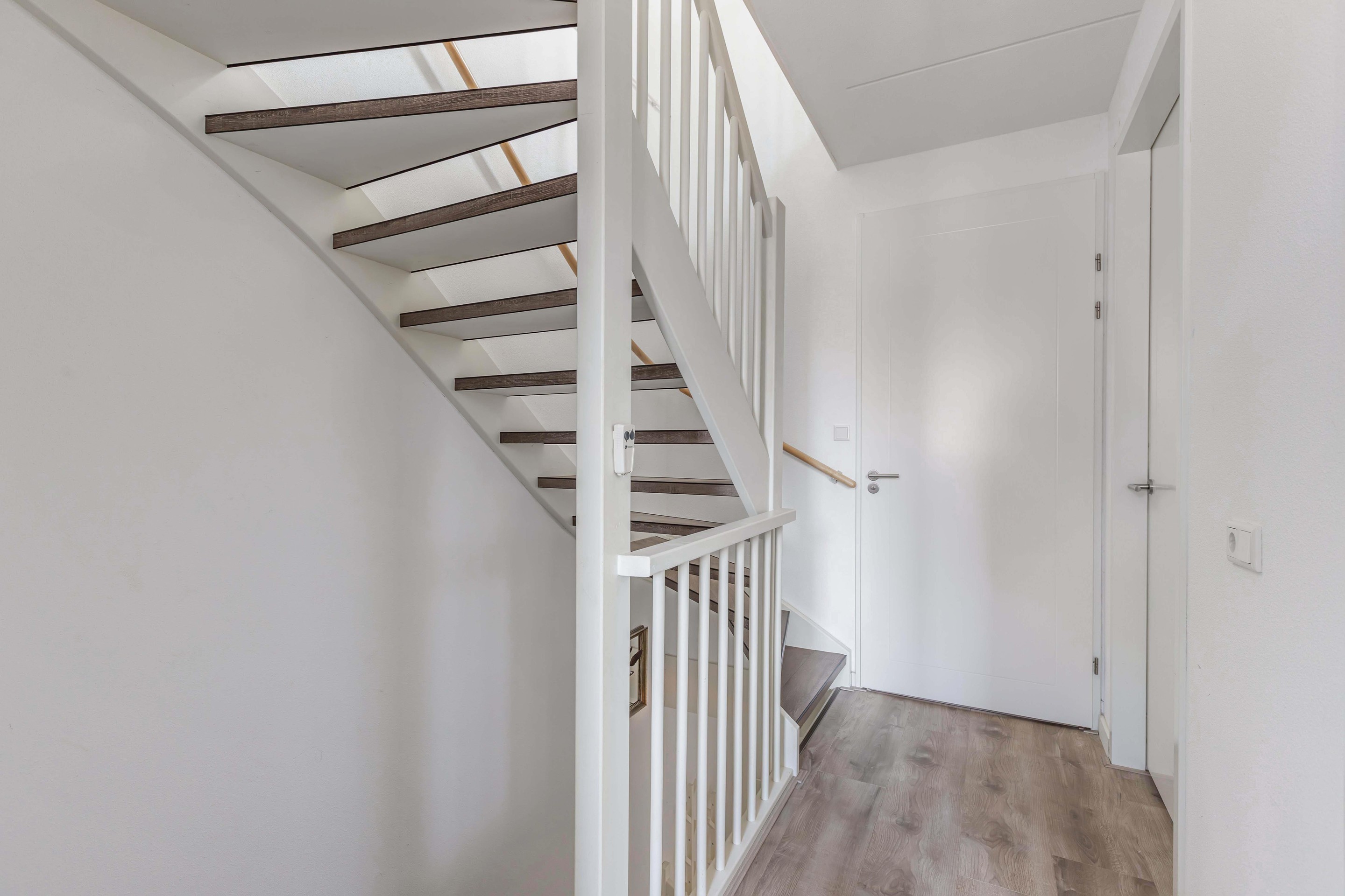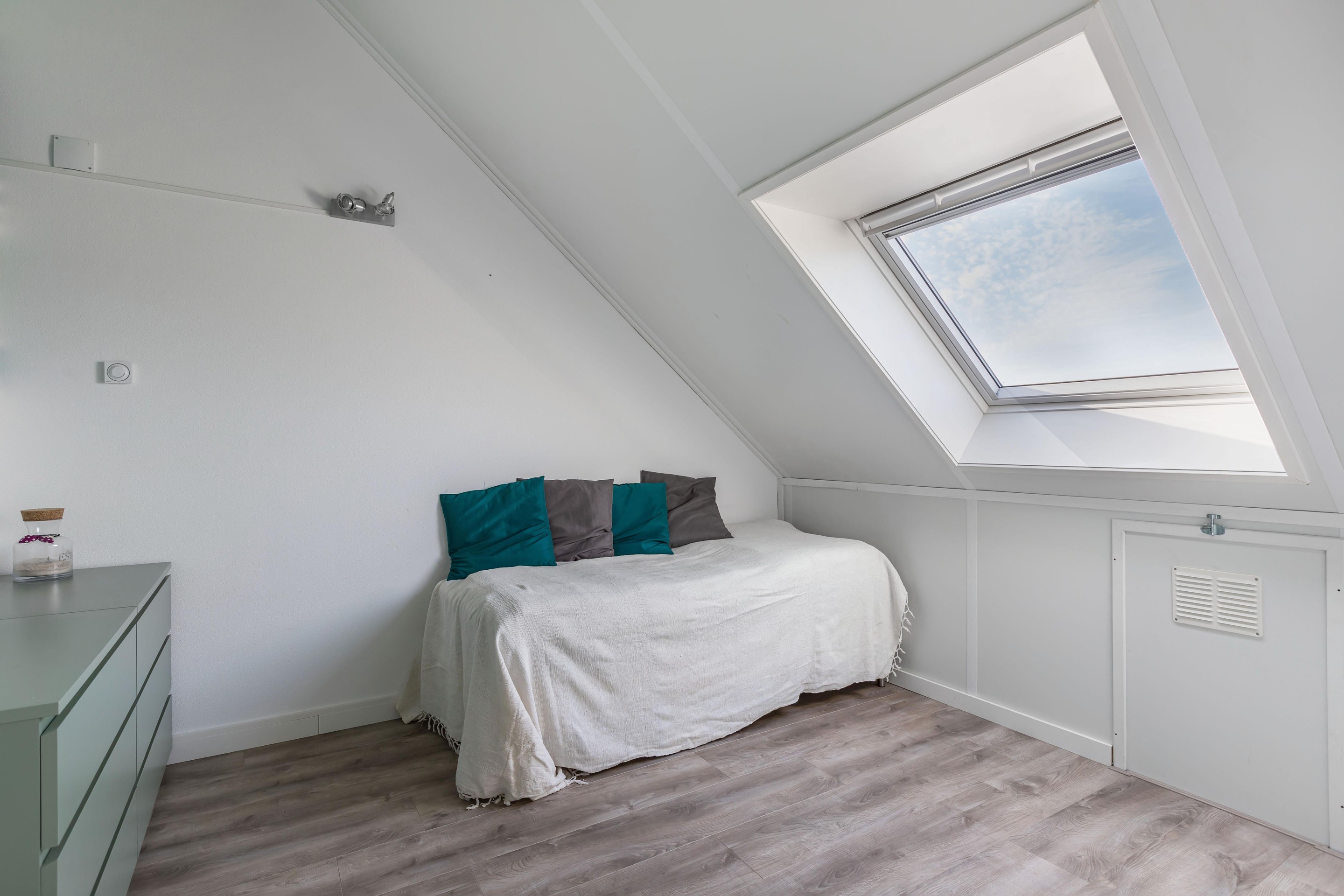 De keuken aan de voorzijde is strak en modern, voorzien van inbouwapparatuur en een Quooker, een ideale plek voor iedere thuiskok. Op de eerste verdieping bevinden zich drie volwaardige slaapkamers en een eigentijdse badkamer, waarbij de rechte wanden zorgen voor optimaal gebruik van de ruimte. De zolderverdieping biedt plaats aan een vierde slaapkamer en handige bergruimte.