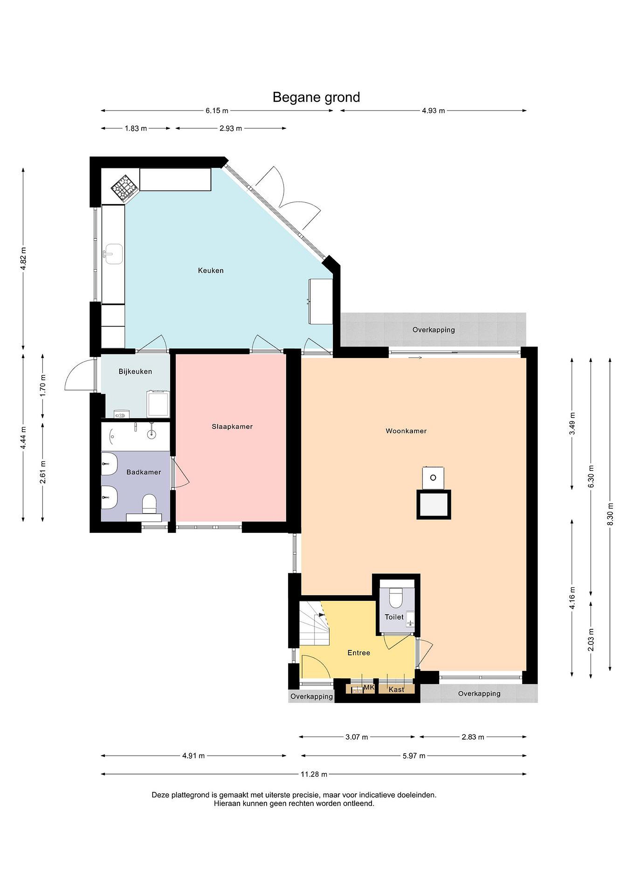 Begane grond Indeling: Entree/hal, meterkast, kast, trapopgang, toilet met fontein, woonkamer voorzien van pelletkachel en schuifpui naar de tuin, woonkeuken met openslaande deuren voorzien van diverse inbouwapparatuur zoals: koelkast, vaatwasser, 5 pits gaskookplaat met oven en afzuigkap. Via de keuken kom je in de bijkeuken en slaapkamer met badkamer en suite welke voorzien is van dubbele wastafel, ligbad, douche en toilet.