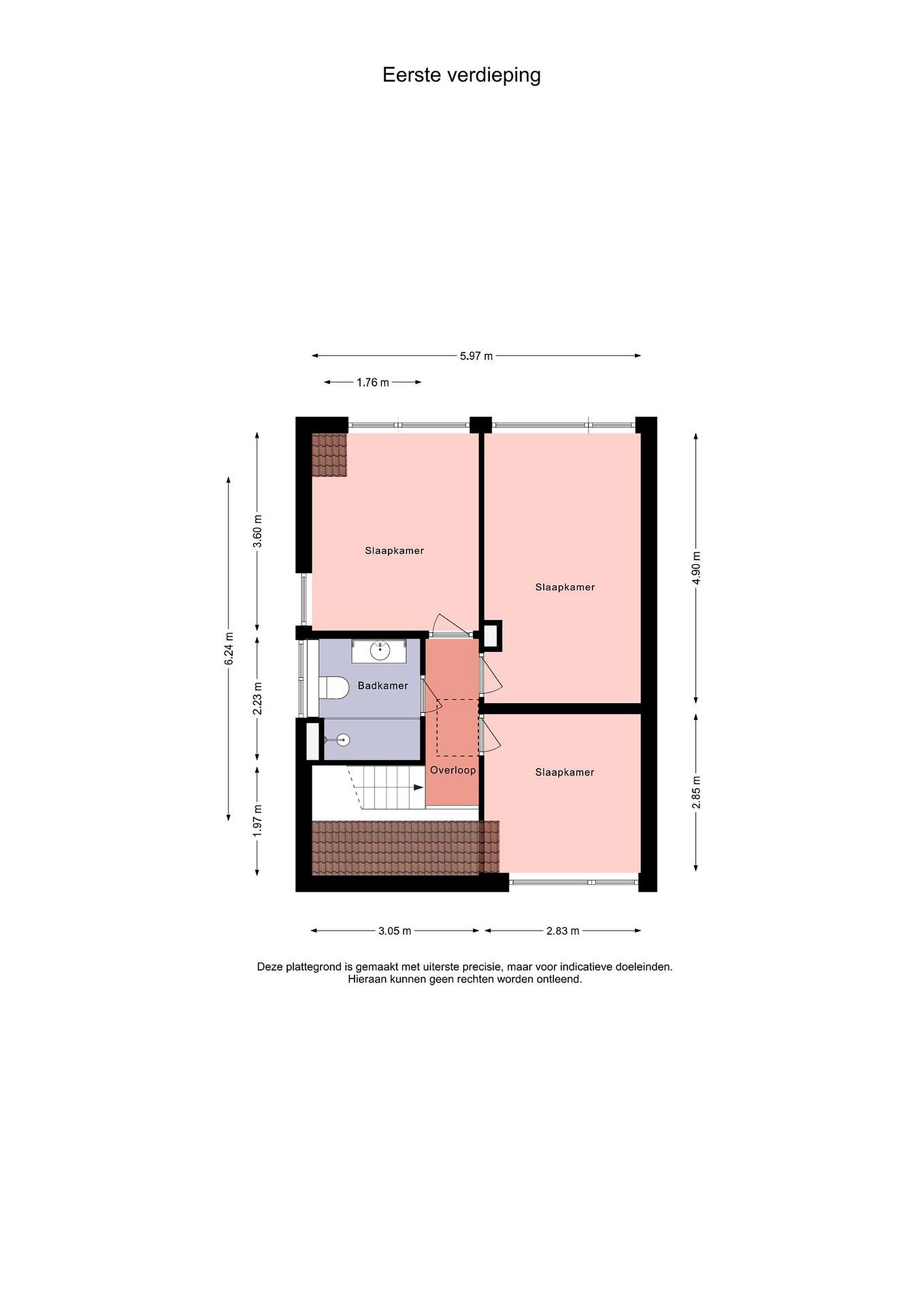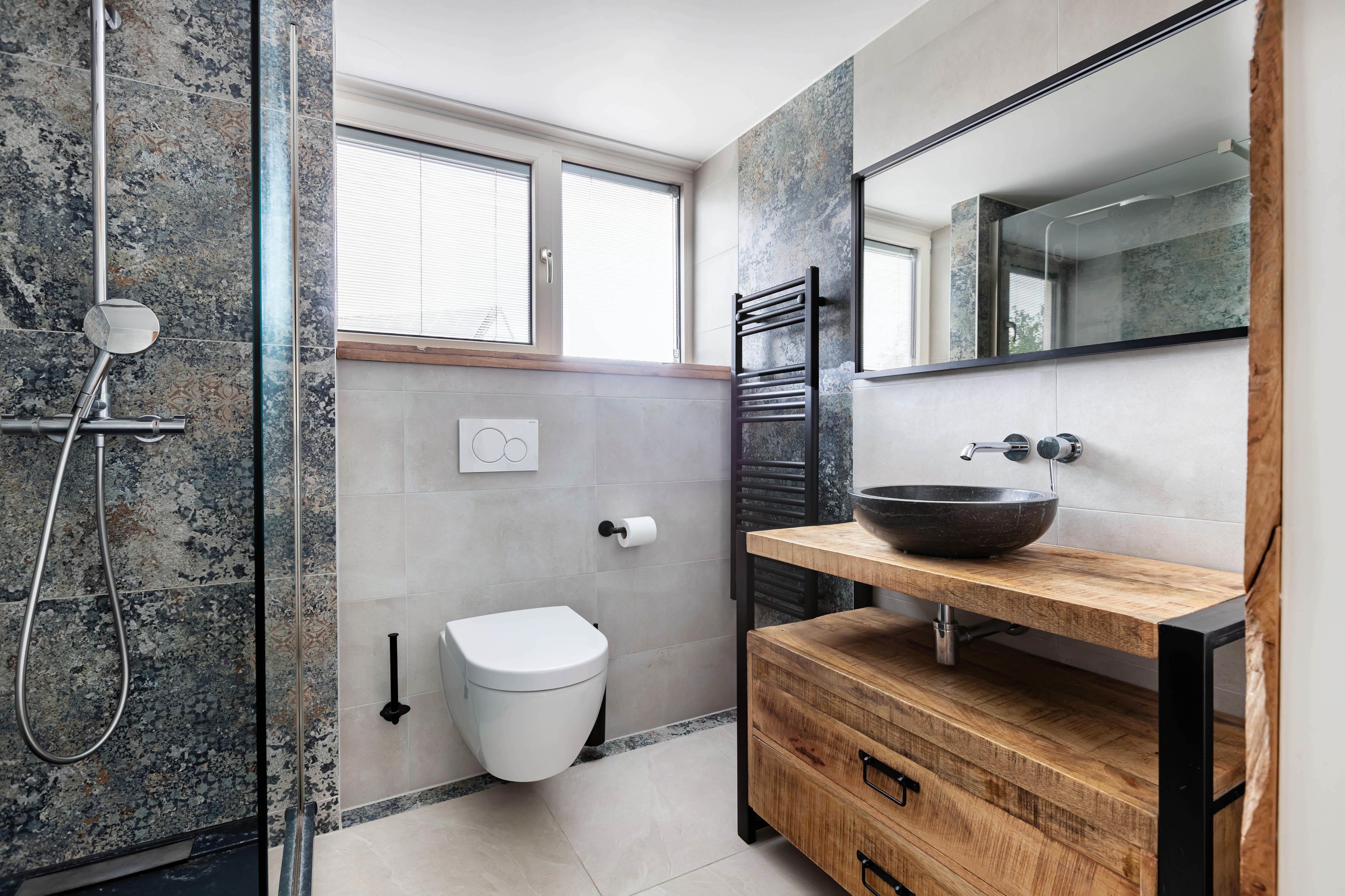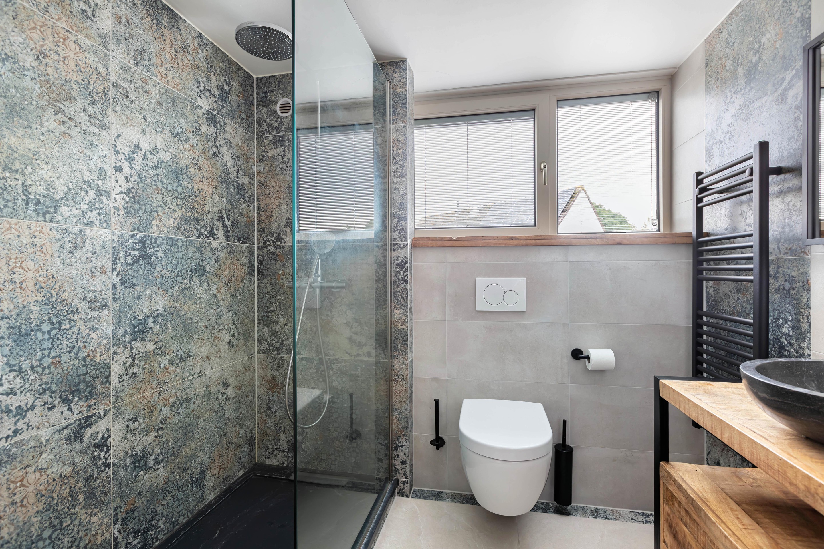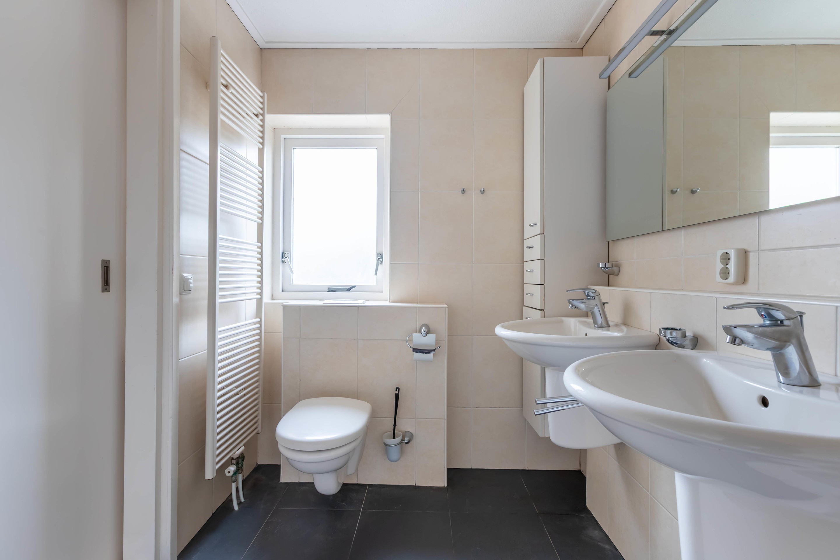Eerste verdieping overloop, 3 slaapkamers, moderne badkamer voorzien van: wastafelmeubel, toilet, inloopdouche.