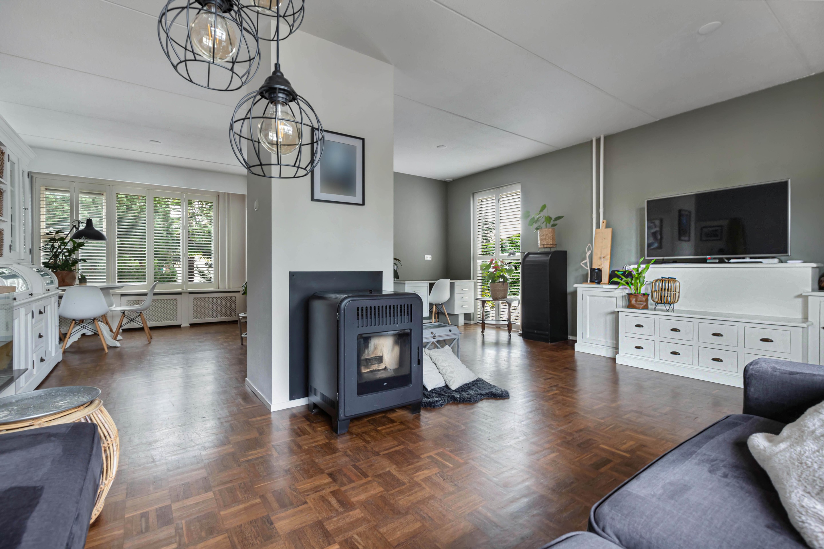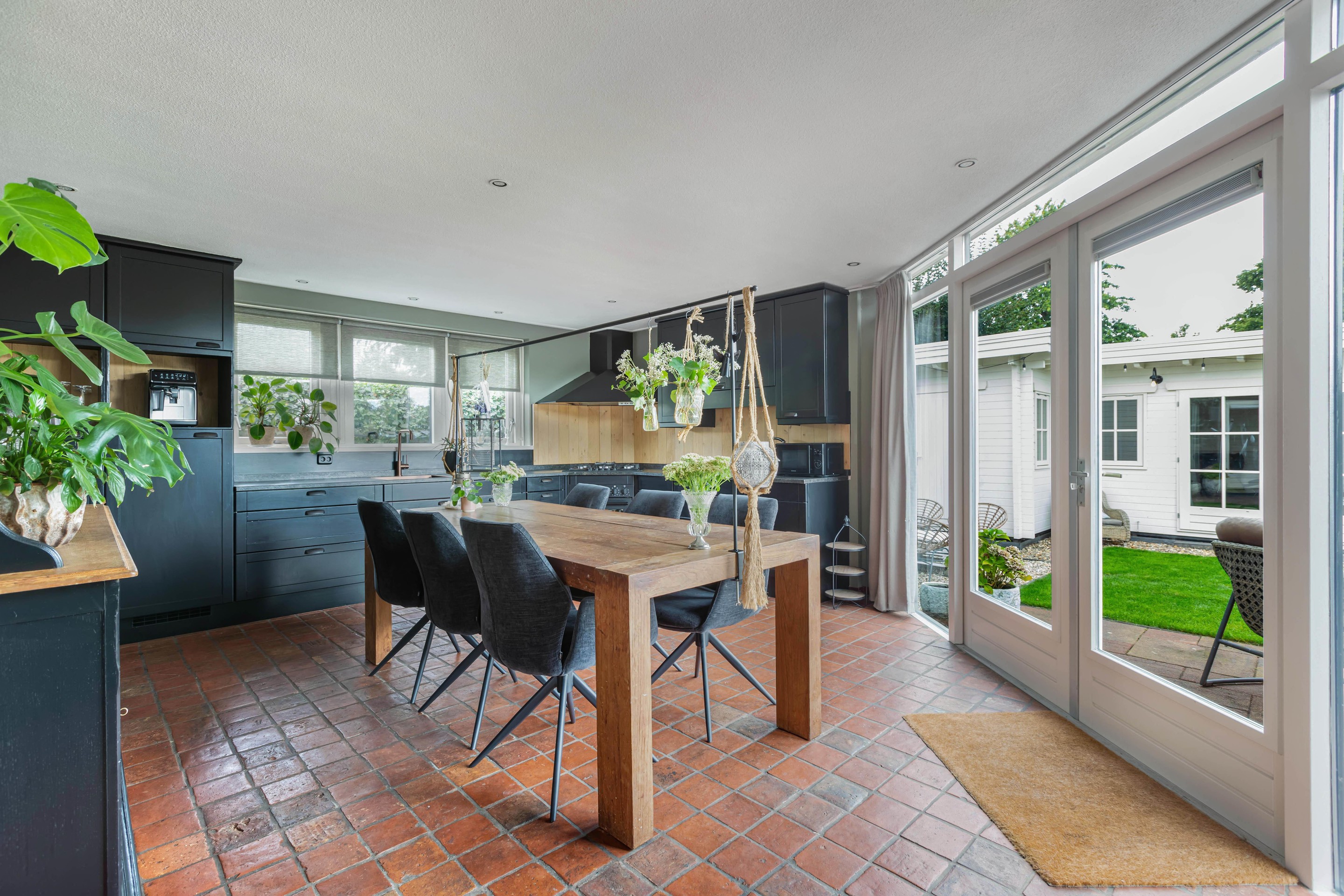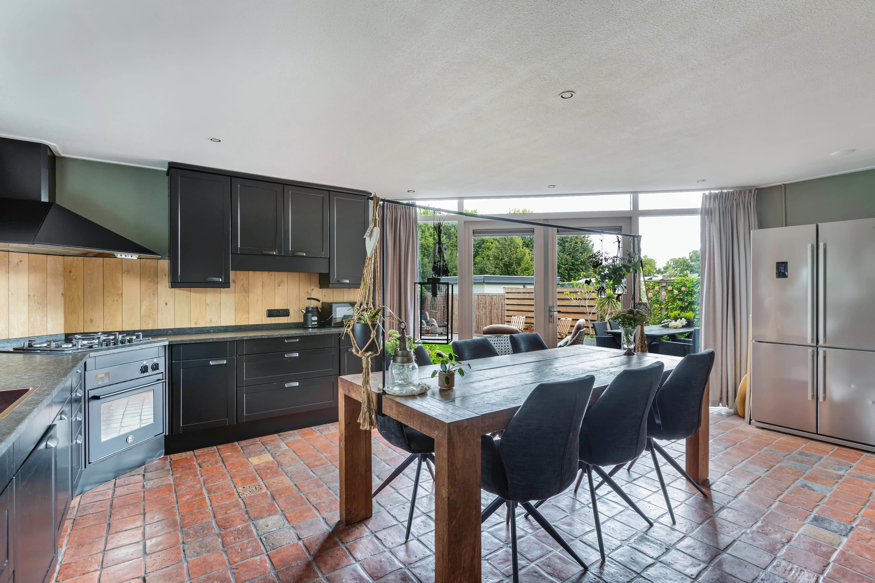 De woning zelf verrast met ruimte en mogelijkheden. Dankzij de royale uitbouw vind je op de begane grond een sfeervolle woonkamer met haard in het midden en een schuifpui naar de tuin, een grote woonkeuken van ruim 25 m2 en bovendien een slaapkamer met en suite badkamer en een praktische bijkeuken. Daarmee is de woning niet alleen levensloopbestendig, maar ook perfect geschikt voor een praktijk of kantoor aan huis.