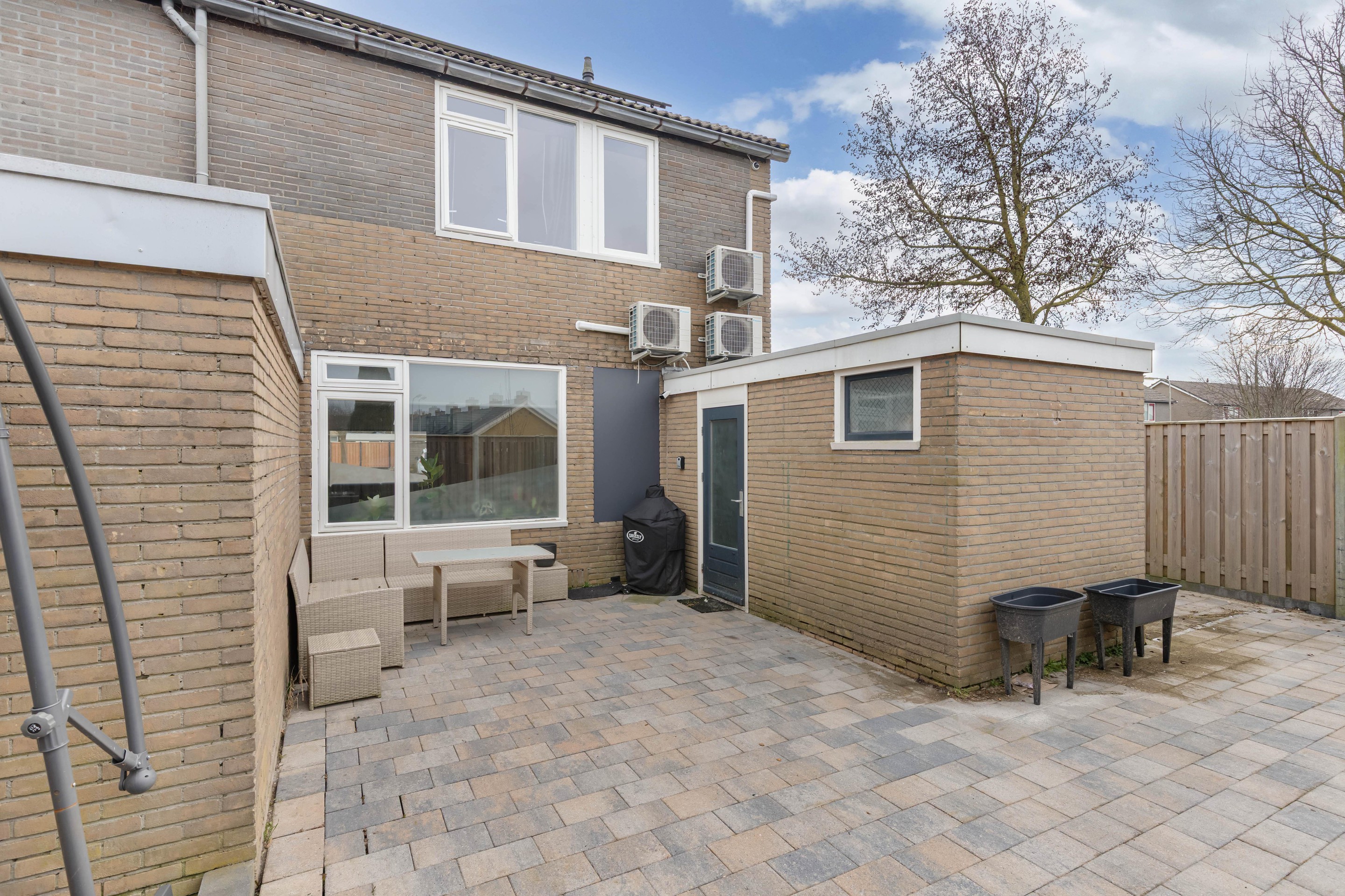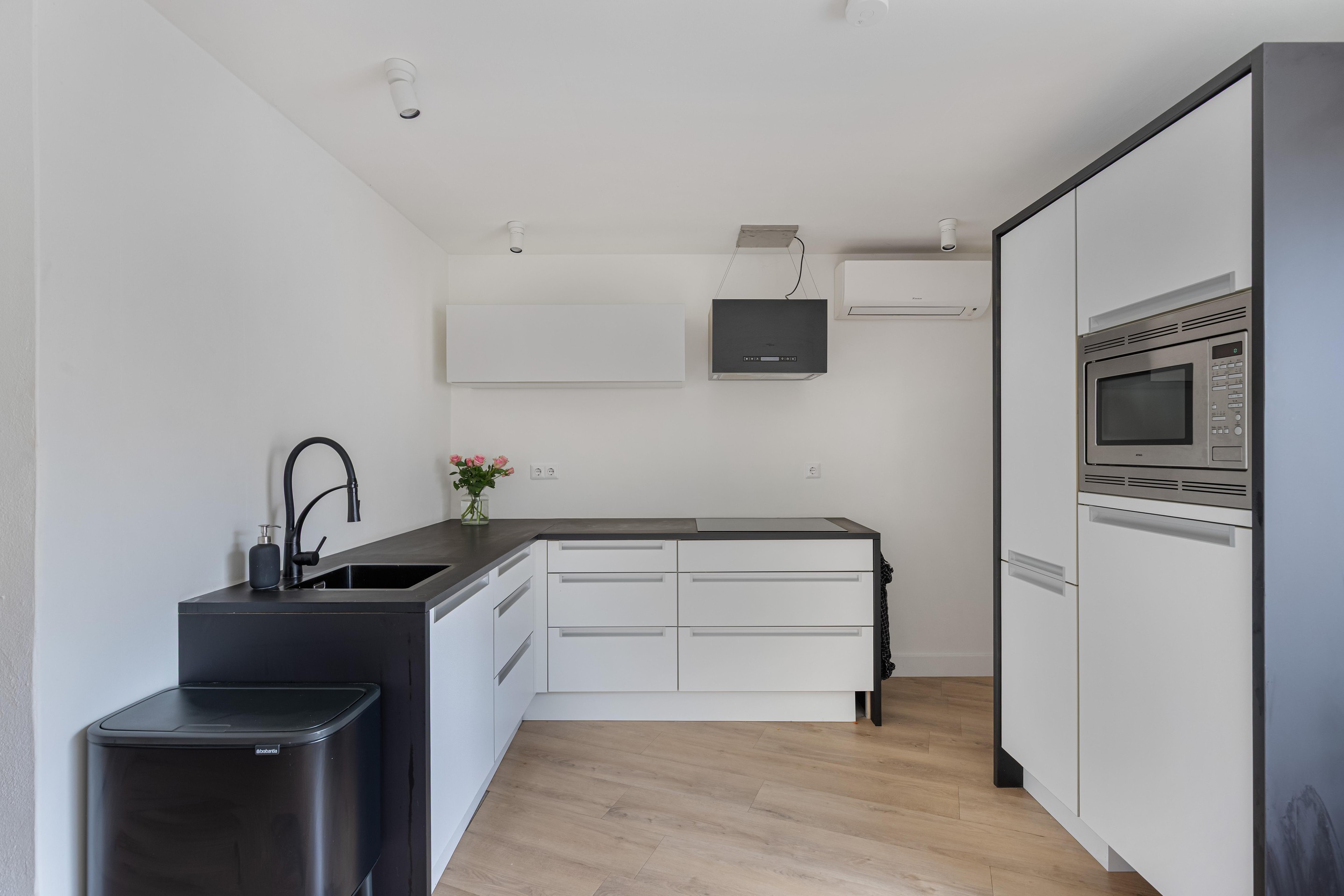 De stijlvolle houtlook PVC-vloer, die diagonaal is gelegd voor een speels effect, geven het huis een luxe en eigentijdse uitstraling. De lichte doorzonwoonkamer vormt een fijne leefruimte en staat in verbinding met de moderne hoekkeuken, die is voorzien van een inductiekookplaat. Vanuit de keuken bereik je de praktische bijkeuken met extra bergruimte en aansluitingen voor het witgoed. Op de verdieping bevinden zich vier slaapkamers, waardoor deze woning zeer geschikt is voor gezinnen, thuiswerkers of mensen die graag extra ruimte willen. De vernieuwde badkamer beschikt over een inloopdouche en een stijlvol wastafelmeubel en sluit perfect aan bij de moderne uitstraling van de rest van het huis.
