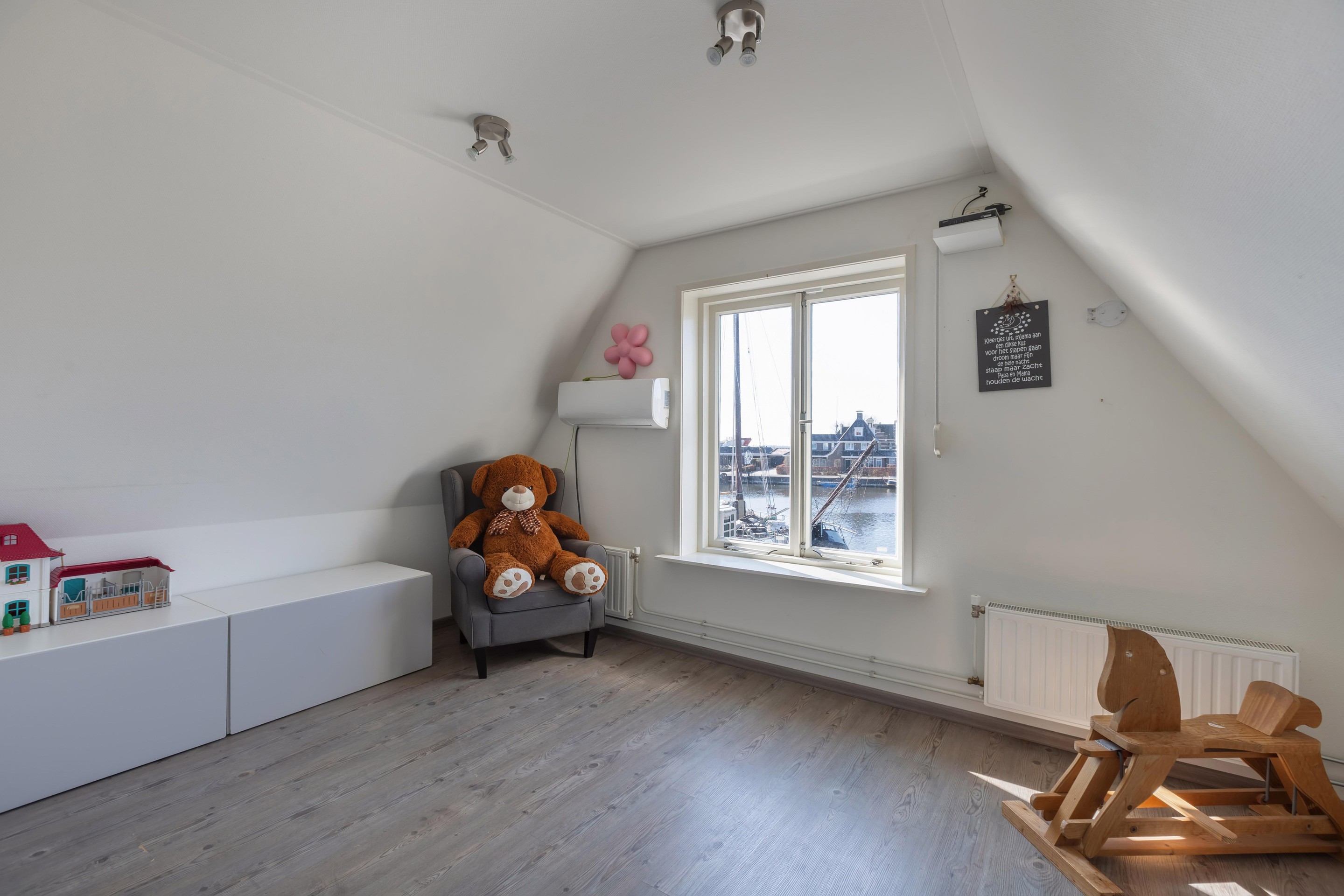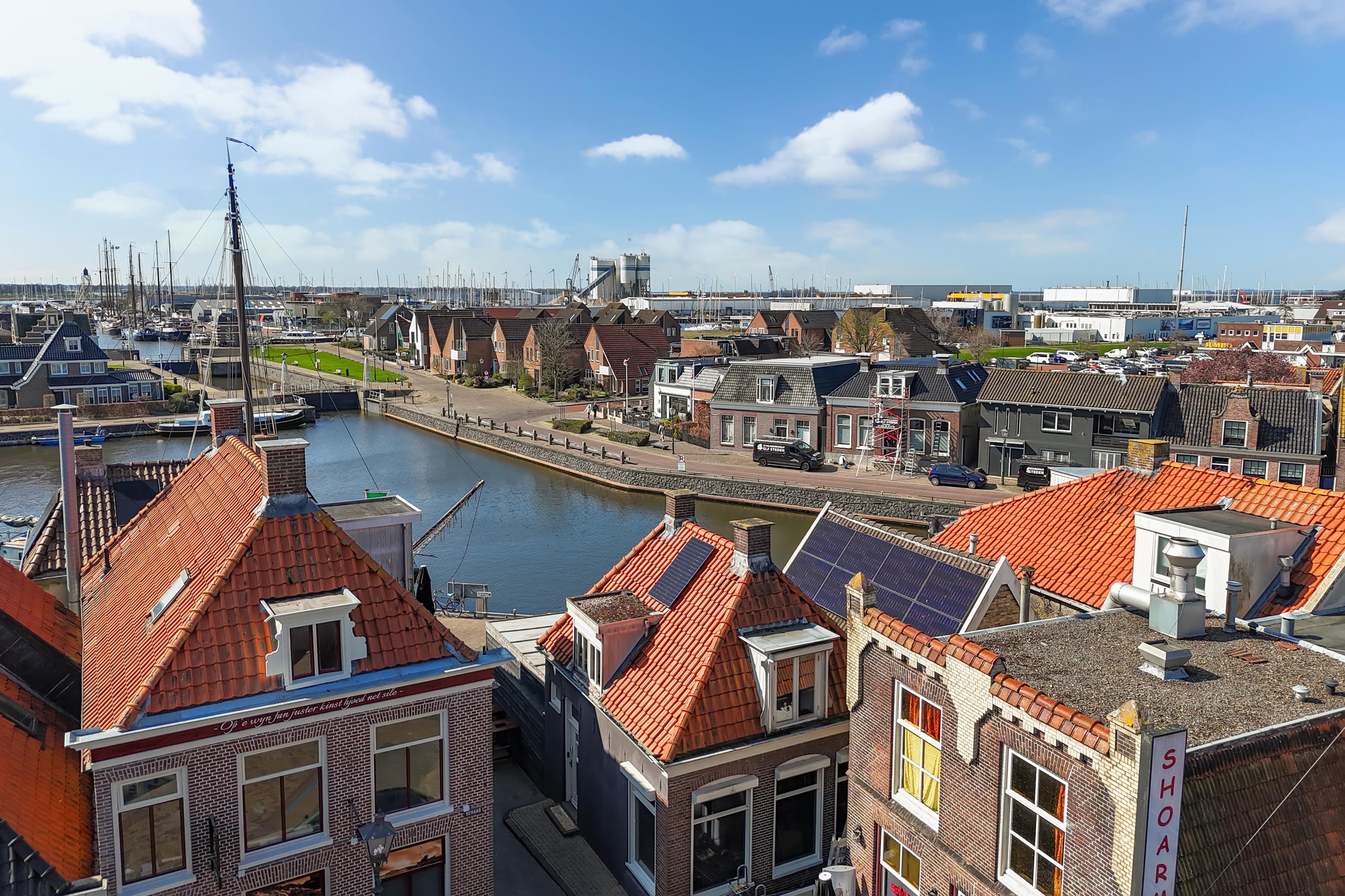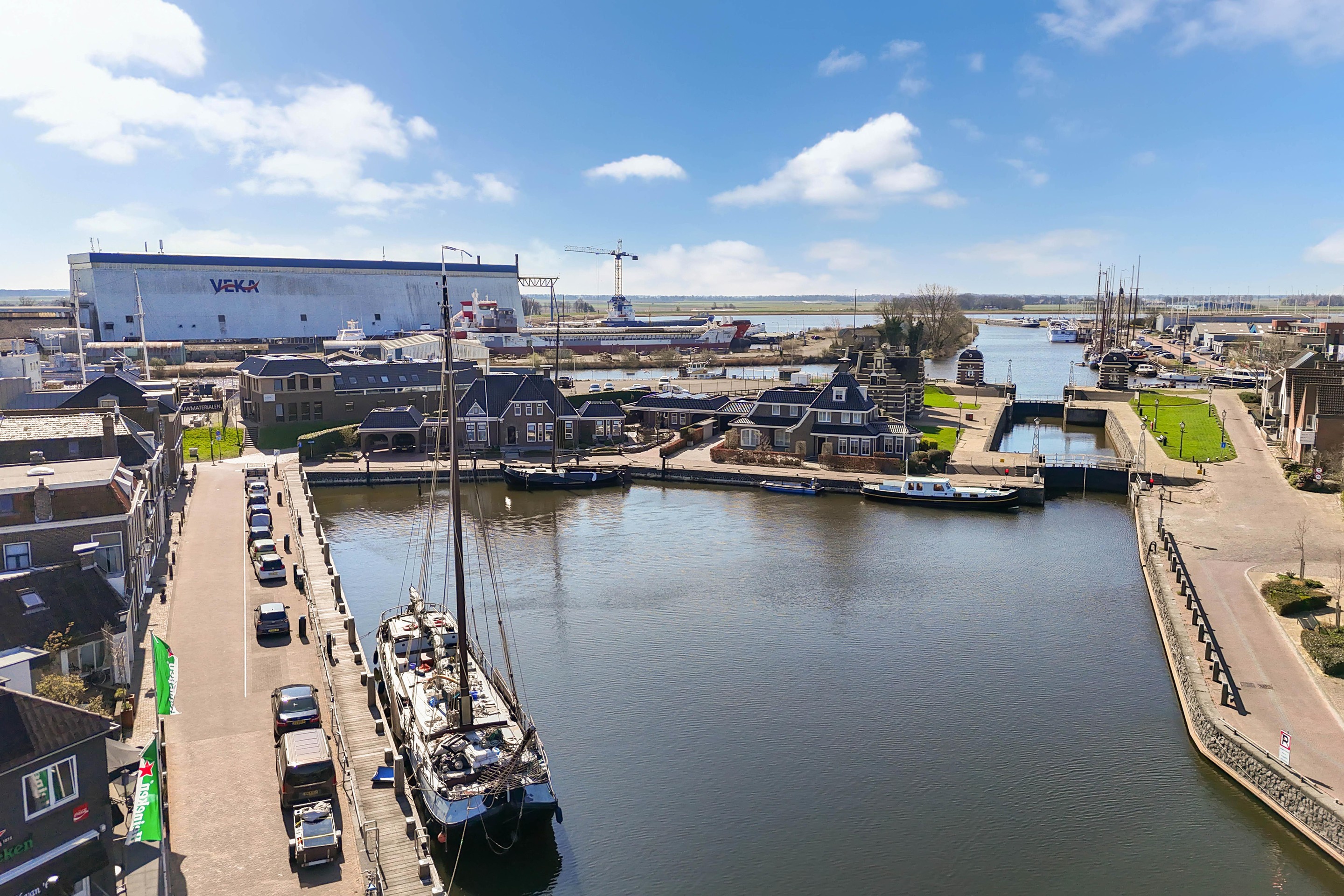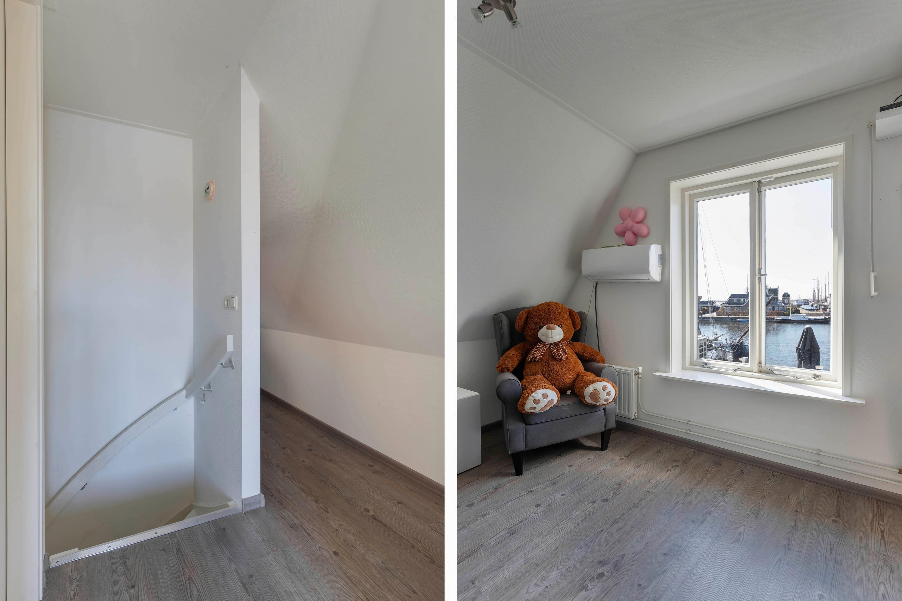 Wat vroeger 2 woonhuizen waren is samengevoegd tot een geheel waarbij het karakter van de woningen behouden is gebleven. Binnen tref je een sfeervolle woonkamer met een authentiek balkenplafond die direct warmte en gezelligheid uitstraalt. De ruime leefkeuken nodigt uit tot lange avonden tafelen met zicht op het water en de bedrijvigheid rondom de haven. Boven zijn er twee royale slaapkamers, elk met een eigen trapopgang, wat de woning niet alleen bijzonder maakt, maar ook uitermate geschikt als kleinschalige bed and breakfast of gastenverblijf.