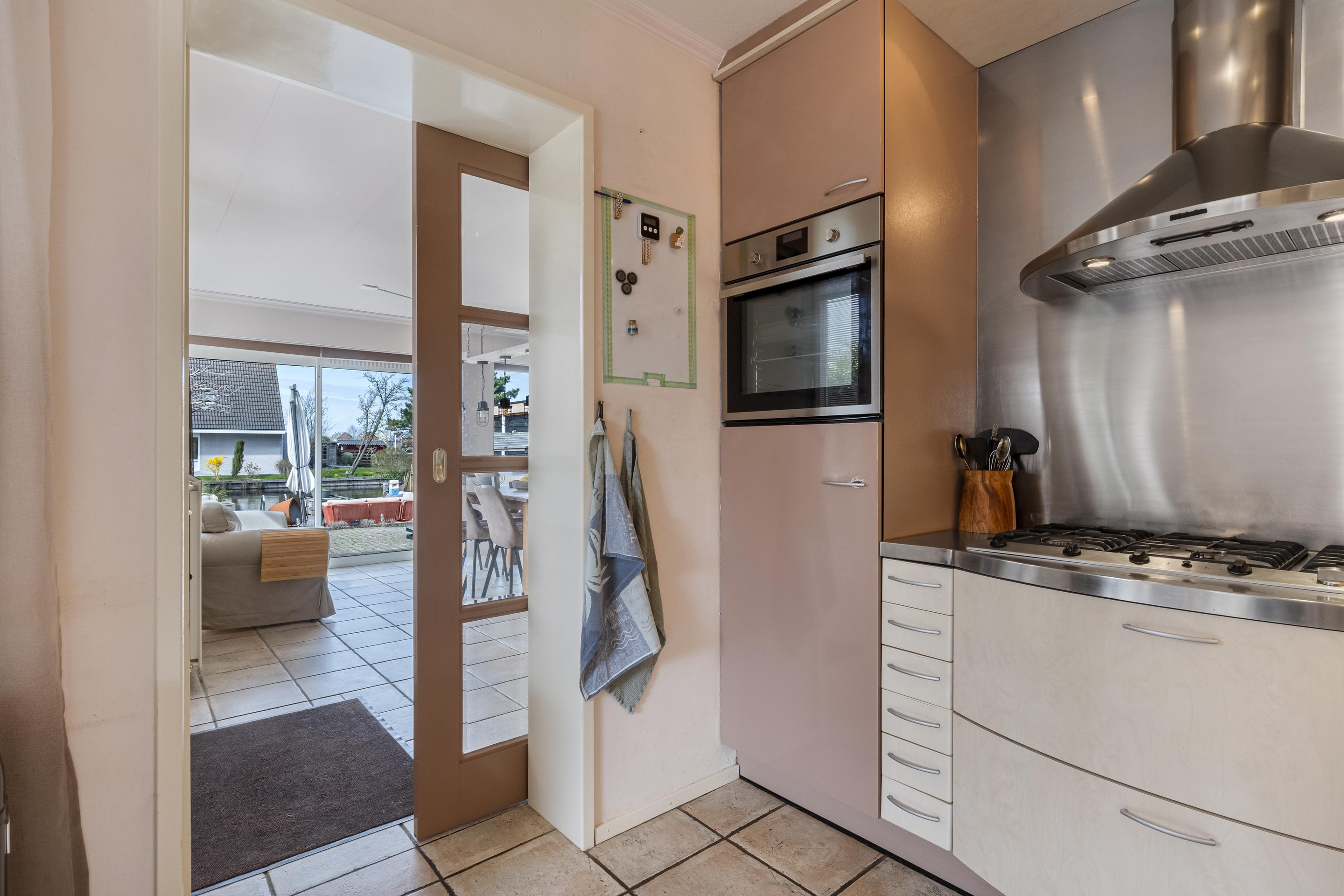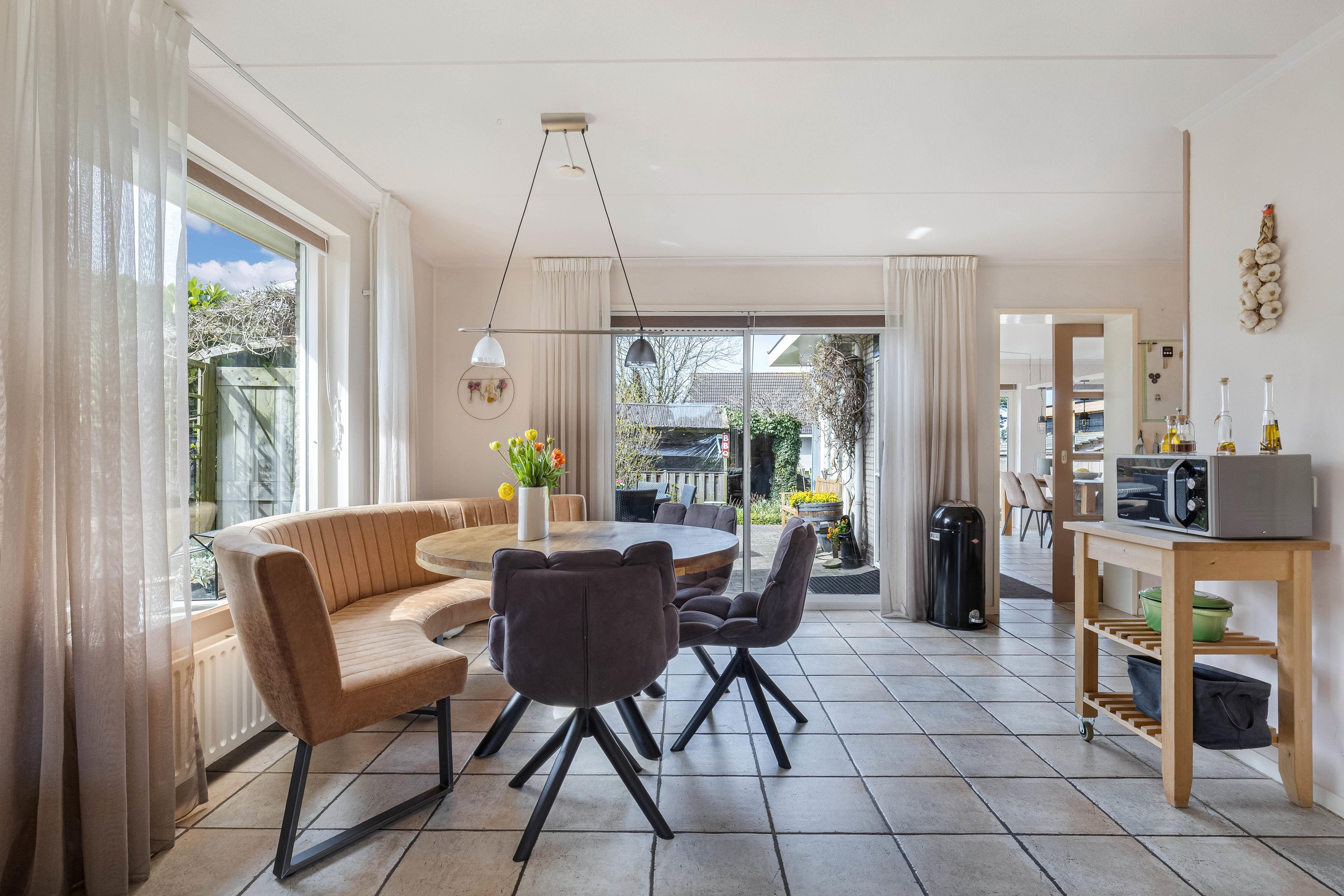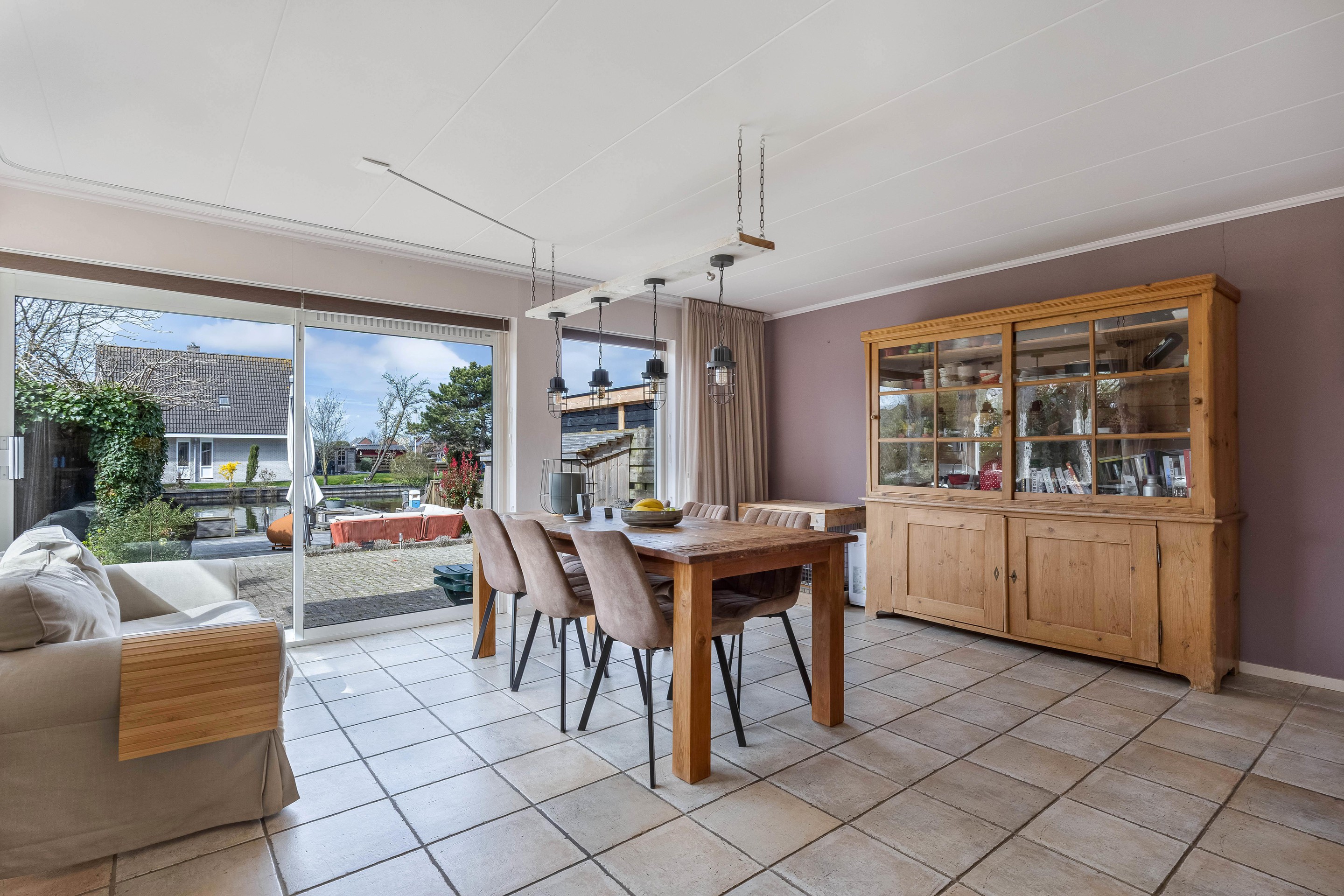 Zodra je binnenkomt valt direct het prettige licht in de woonkamer op. De ruimte voelt open en uitnodigend en loopt mooi over in de aangebouwde eetkamer. Hier zorgen de schuifpui en het vrije uitzicht over het water voor een fijne verbinding tussen binnen en buiten. Het is zo’n plek waar je ieder seizoen van het uitzicht blijft genieten, van zonnige dagen tot sfeervolle avonden.