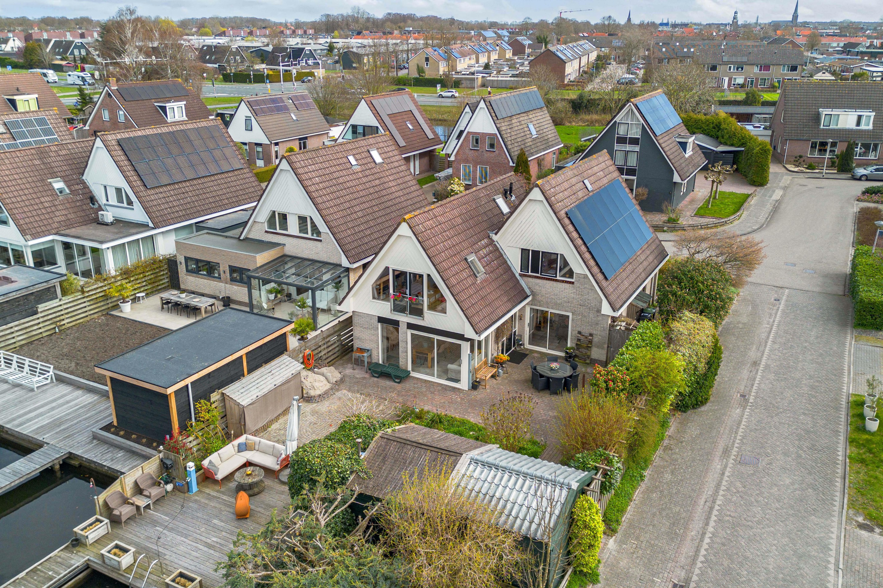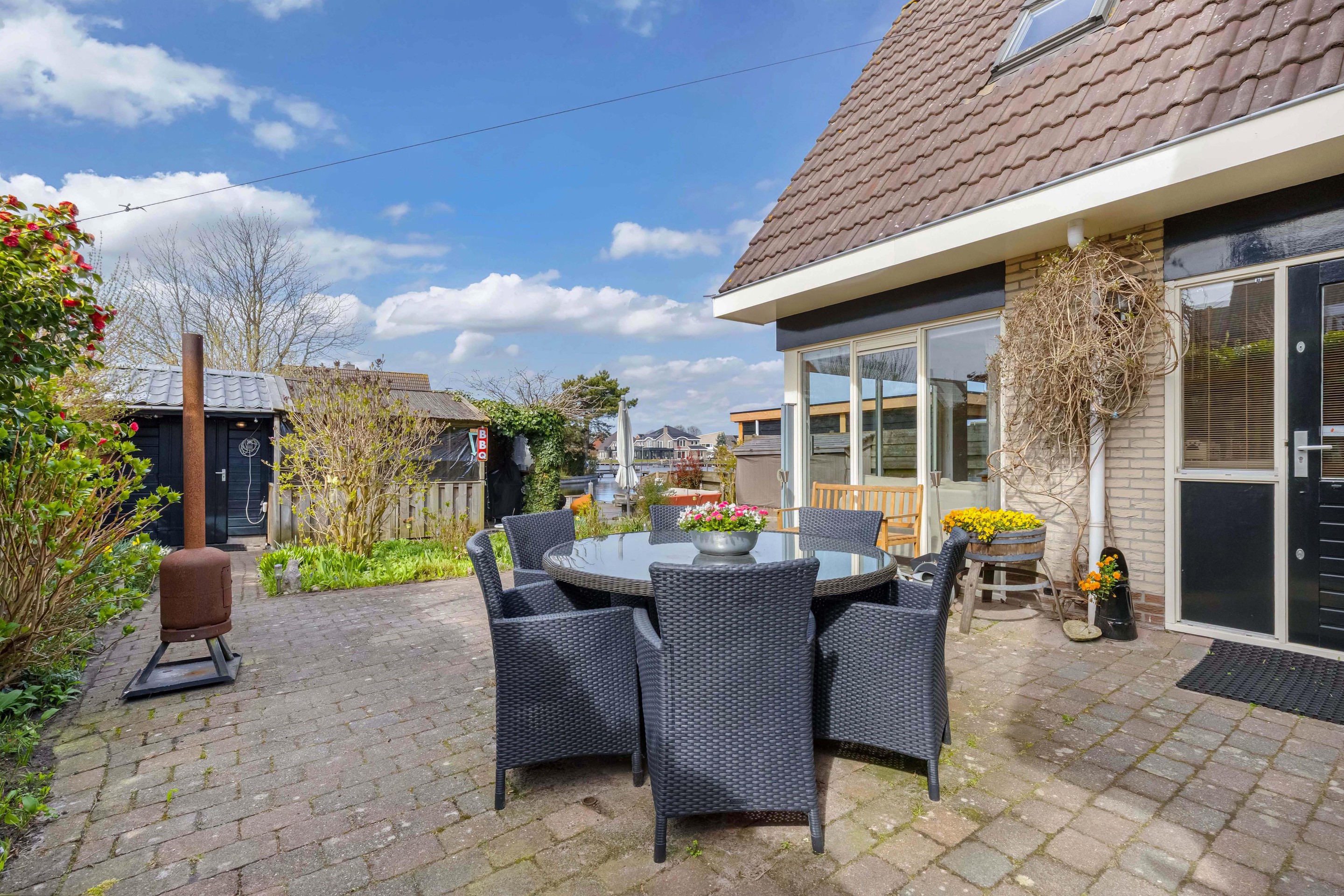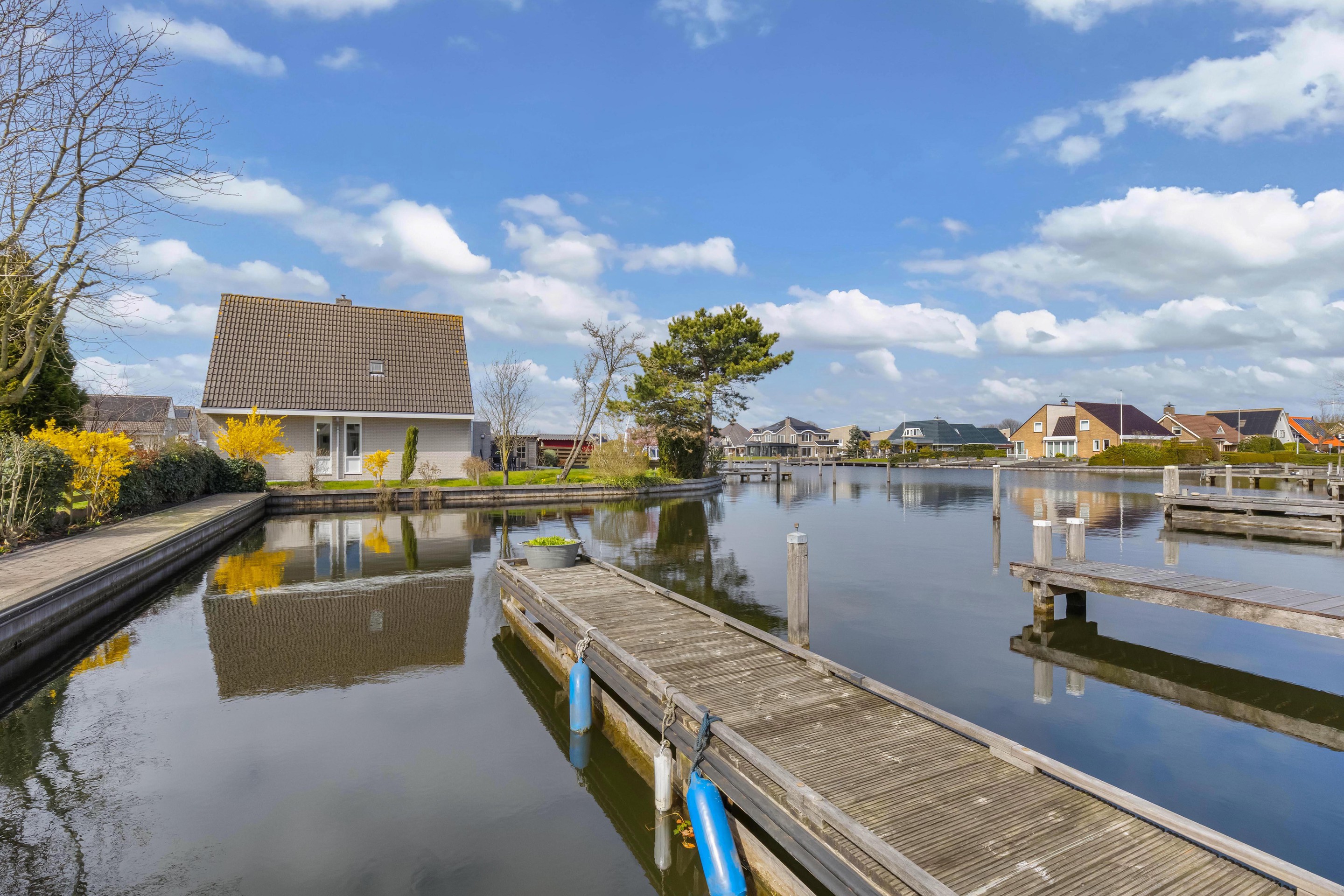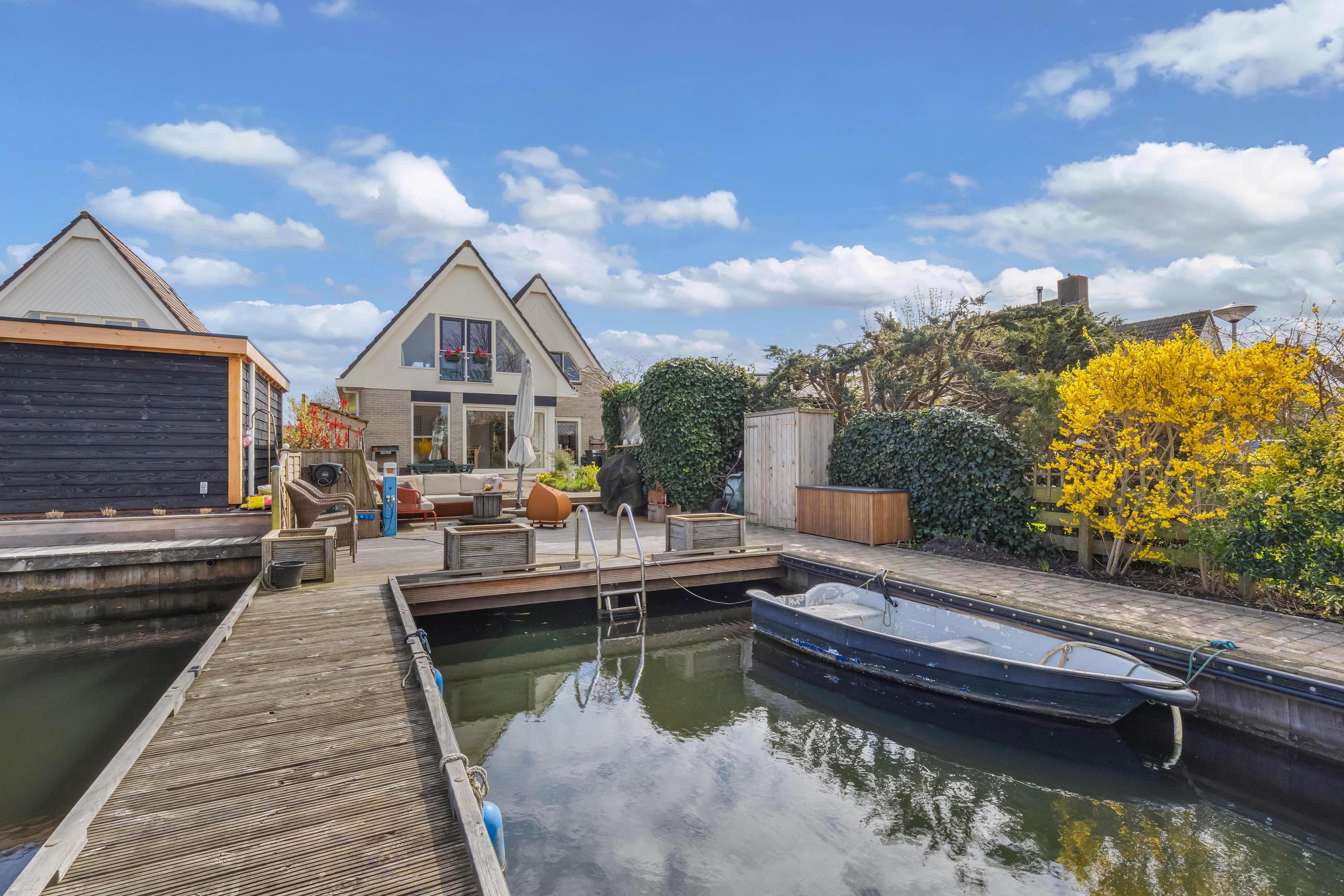 Buiten wordt het woongenot compleet. De achtertuin ligt gunstig op het westen, waardoor je hier volop van de middag- en avondzon kunt genieten. De extra lange aanlegsteiger, de vlonder aan het water en de gezellige overkapping met berging maken dit een ideale plek voor liefhebbers van varen en buitenleven. Vanuit je eigen tuin vaar je zo richting de Friese meren en het IJsselmeer.