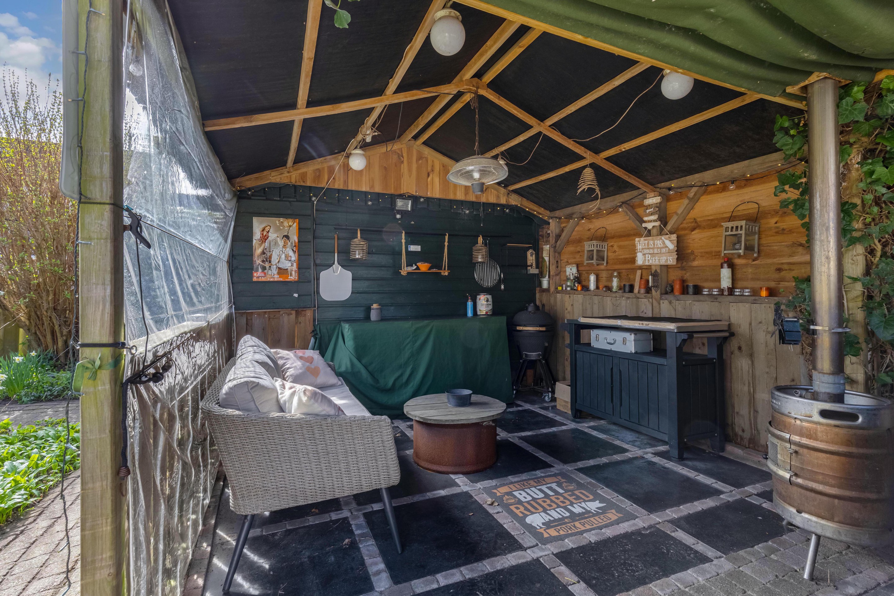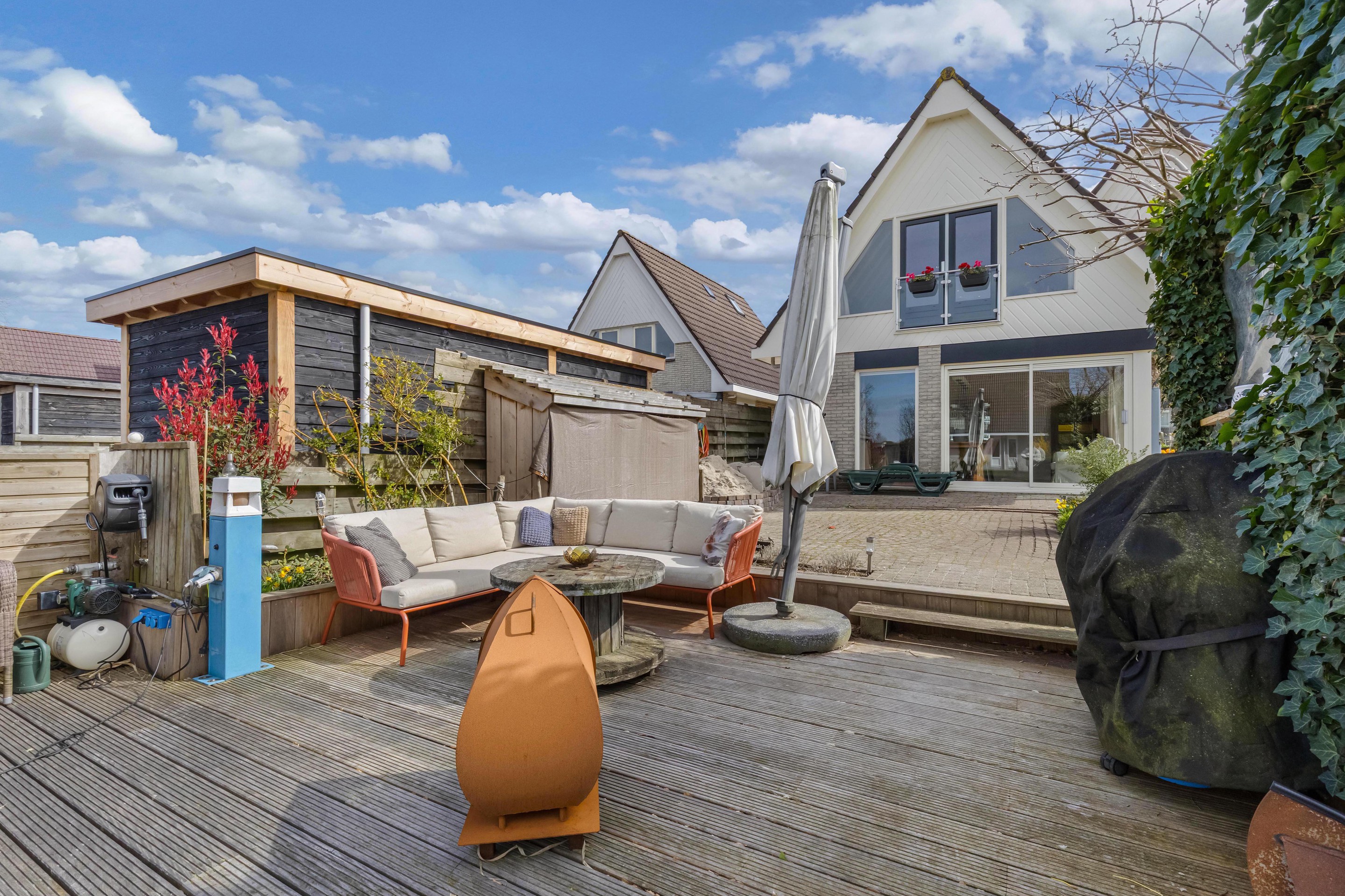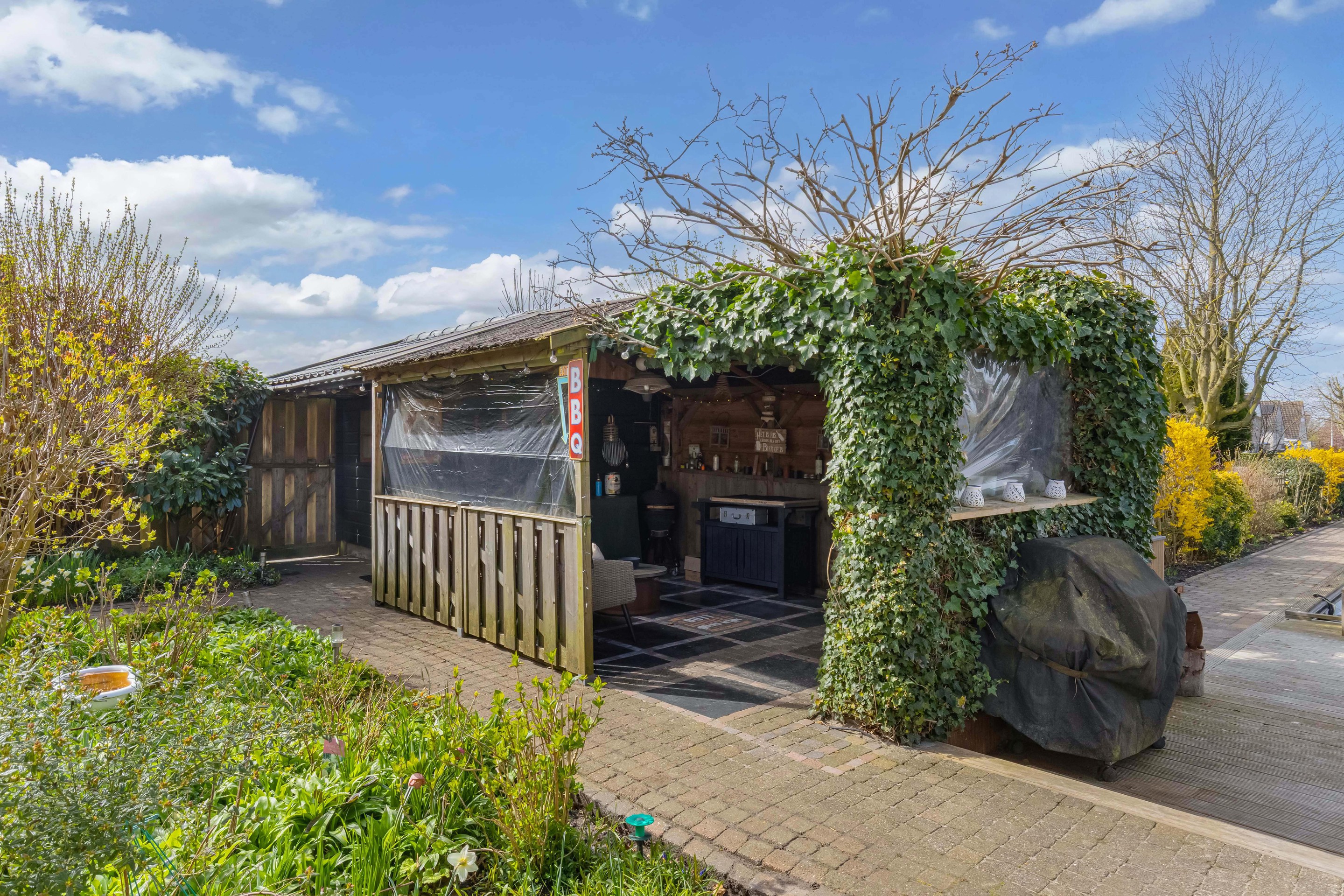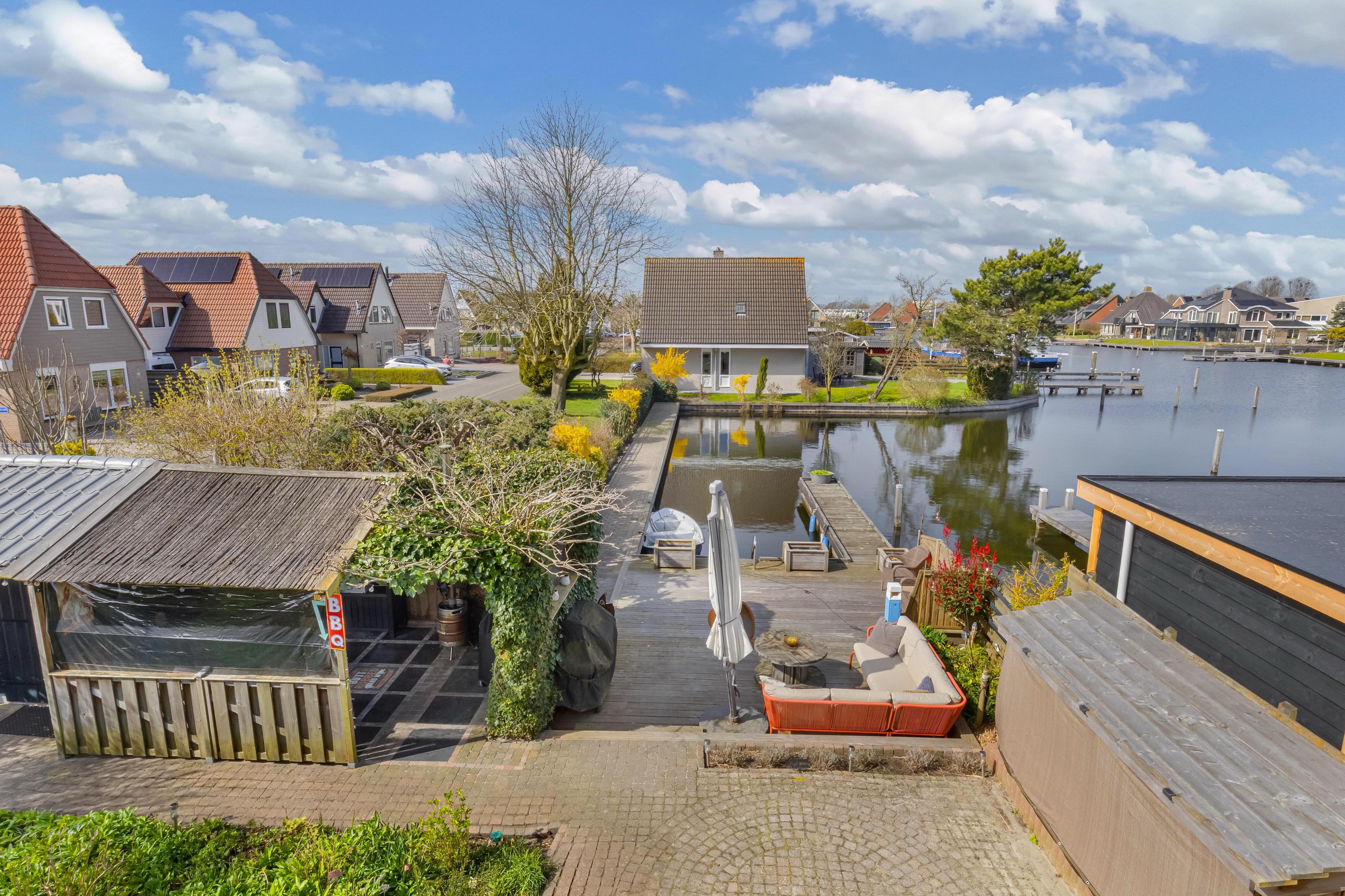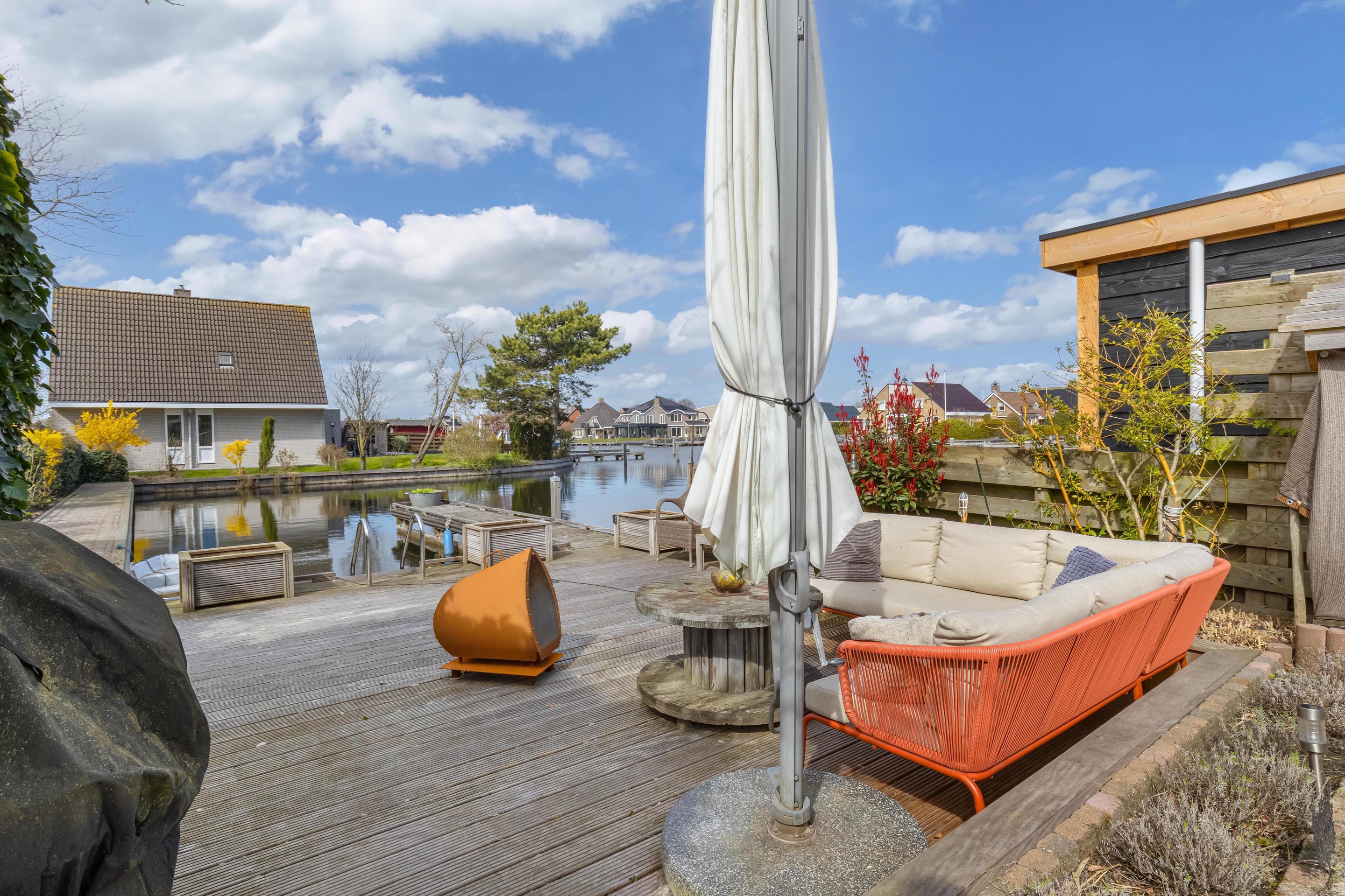 Buiten wordt het woongenot compleet. De achtertuin ligt gunstig op het westen, waardoor je hier volop van de middag- en avondzon kunt genieten. De extra lange aanlegsteiger, de vlonder aan het water en de gezellige overkapping met berging maken dit een ideale plek voor liefhebbers van varen en buitenleven. Vanuit je eigen tuin vaar je zo richting de Friese meren en het IJsselmeer.