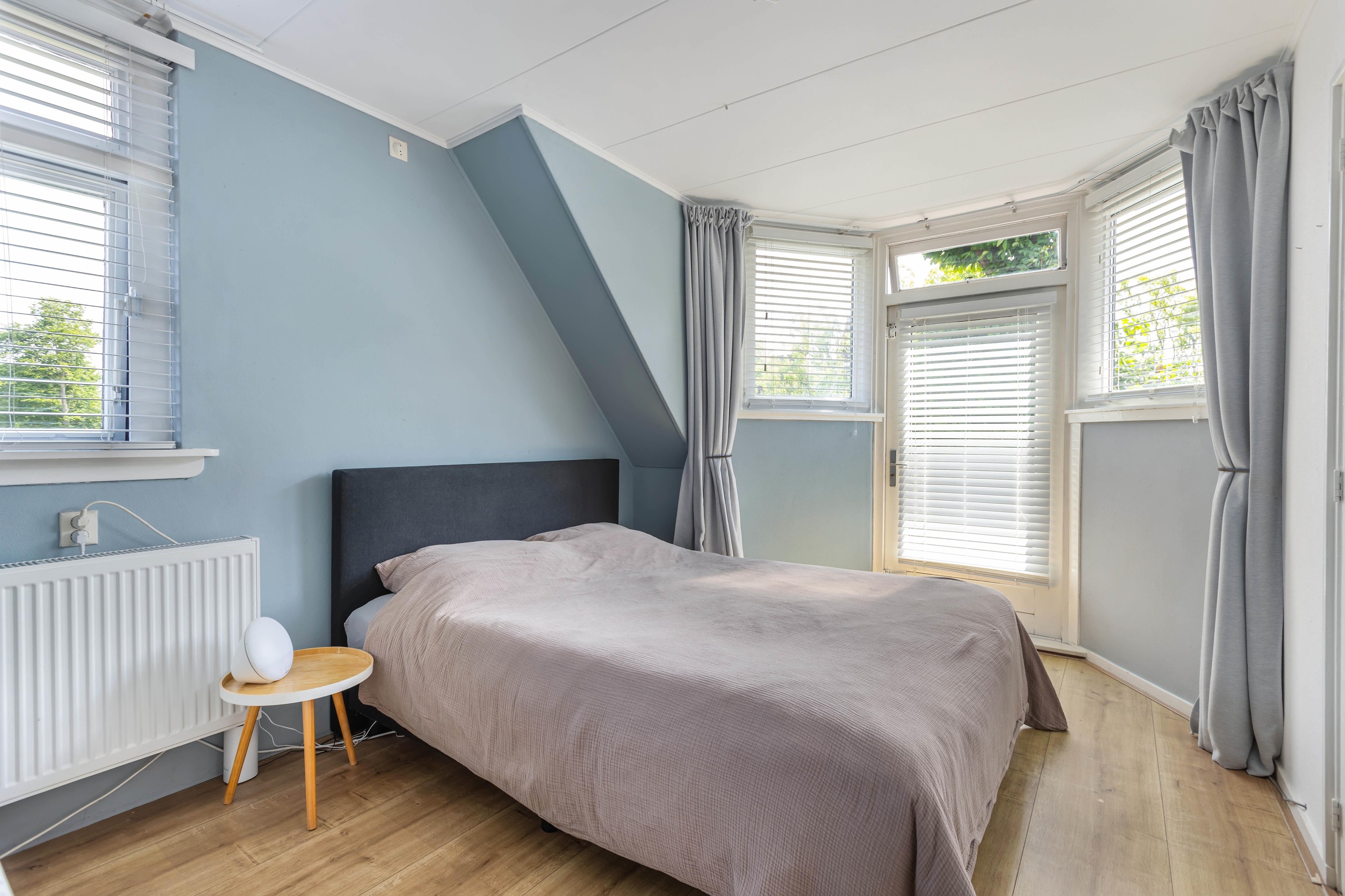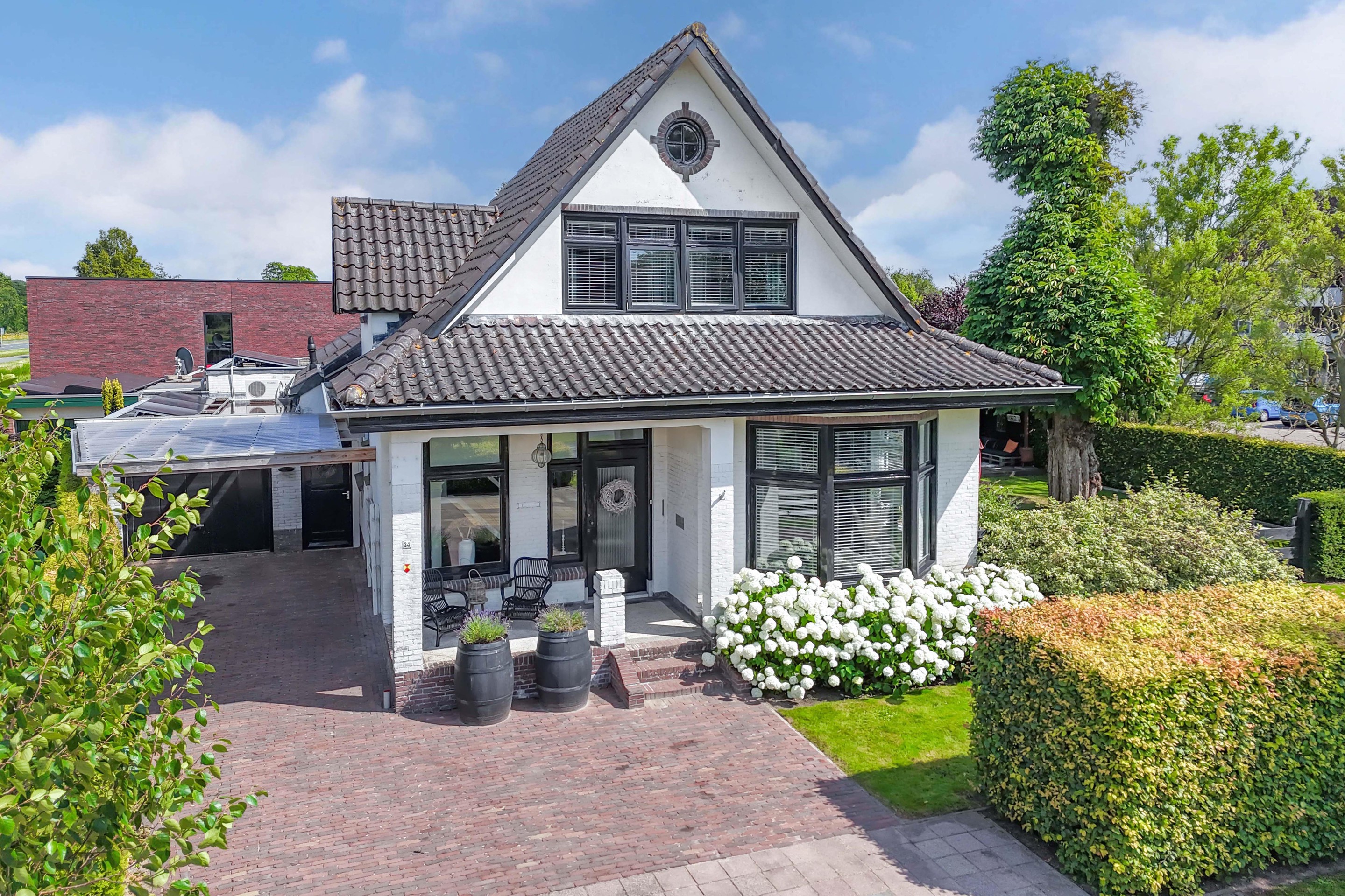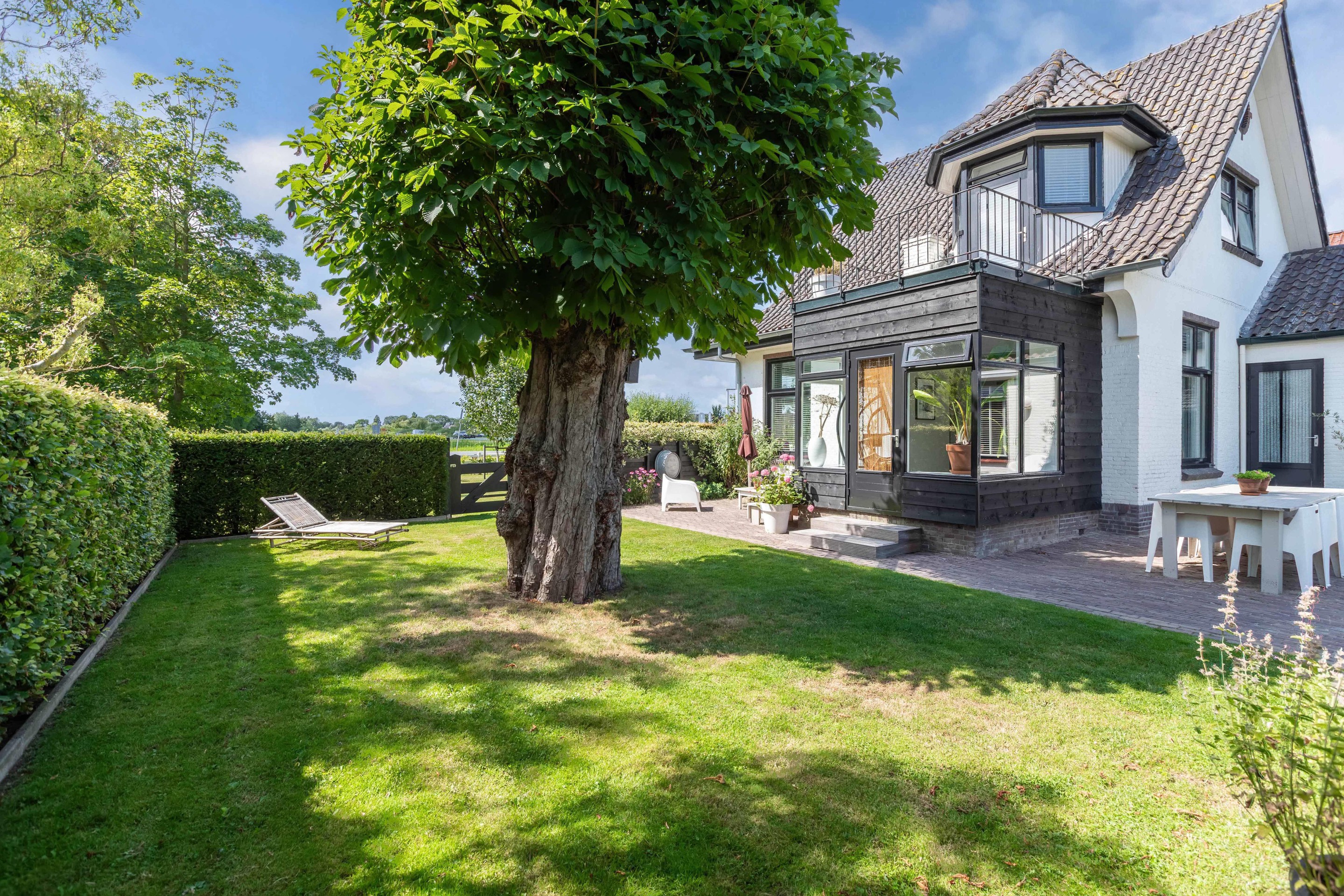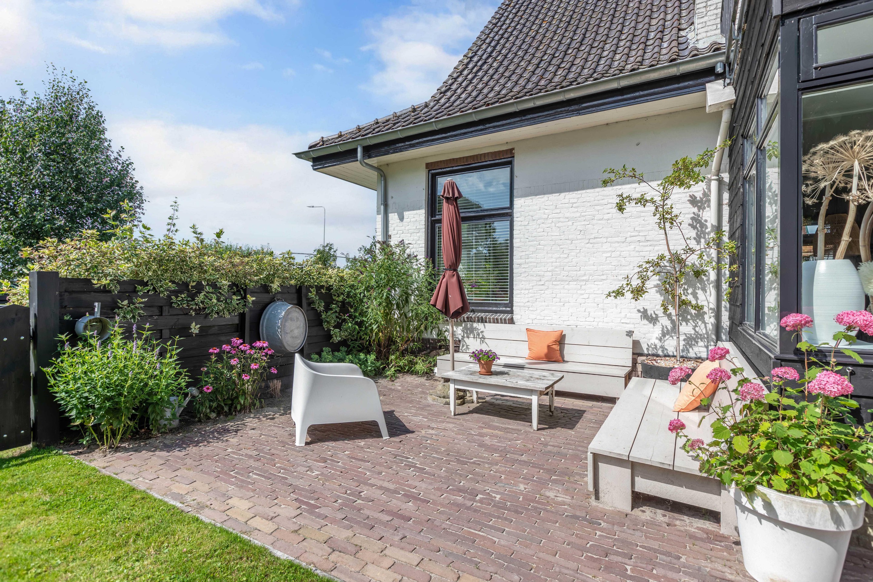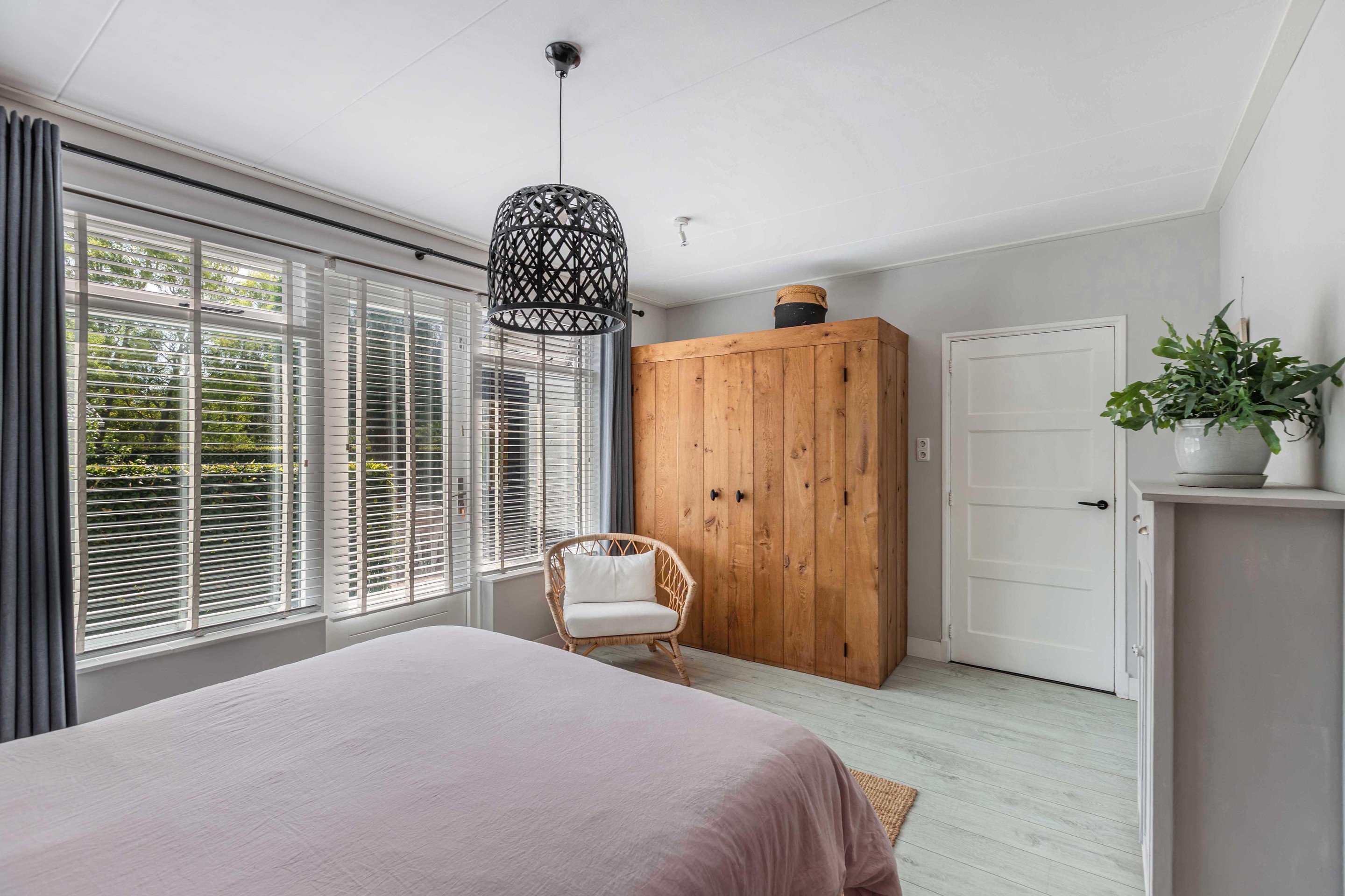 Binnen valt direct het lichte en aangename interieur op. Grote raampartijen zorgen voor een prachtige lichtinval en versterken het ruimtelijke gevoel in huis. De indeling is bijzonder veelzijdig en maakt deze woning geschikt voor uiteenlopende woonwensen. In de oorspronkelijke woning bevinden zich drie slaapkamers en een badkamer op de verdieping. De aanbouw voegt hier nog een extra slaapkamer en badkamer aan toe, terwijl het zelfstandige appartement met eigen keuken, slaapkamer en badkamer tal van mogelijkheden biedt, zoals gebruik voor bed & breakfast, praktijk aan huis, mantelzorg of duowonen.