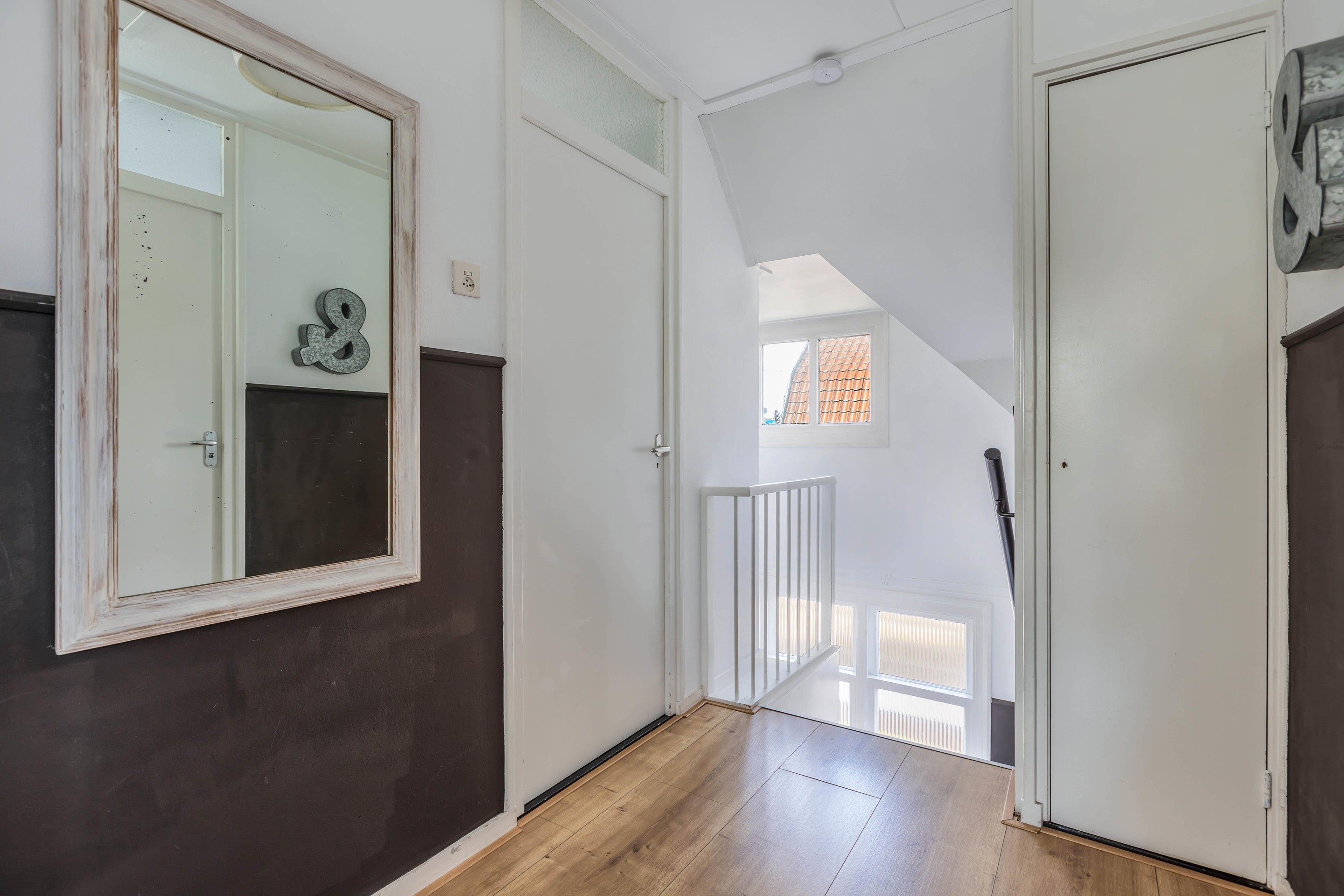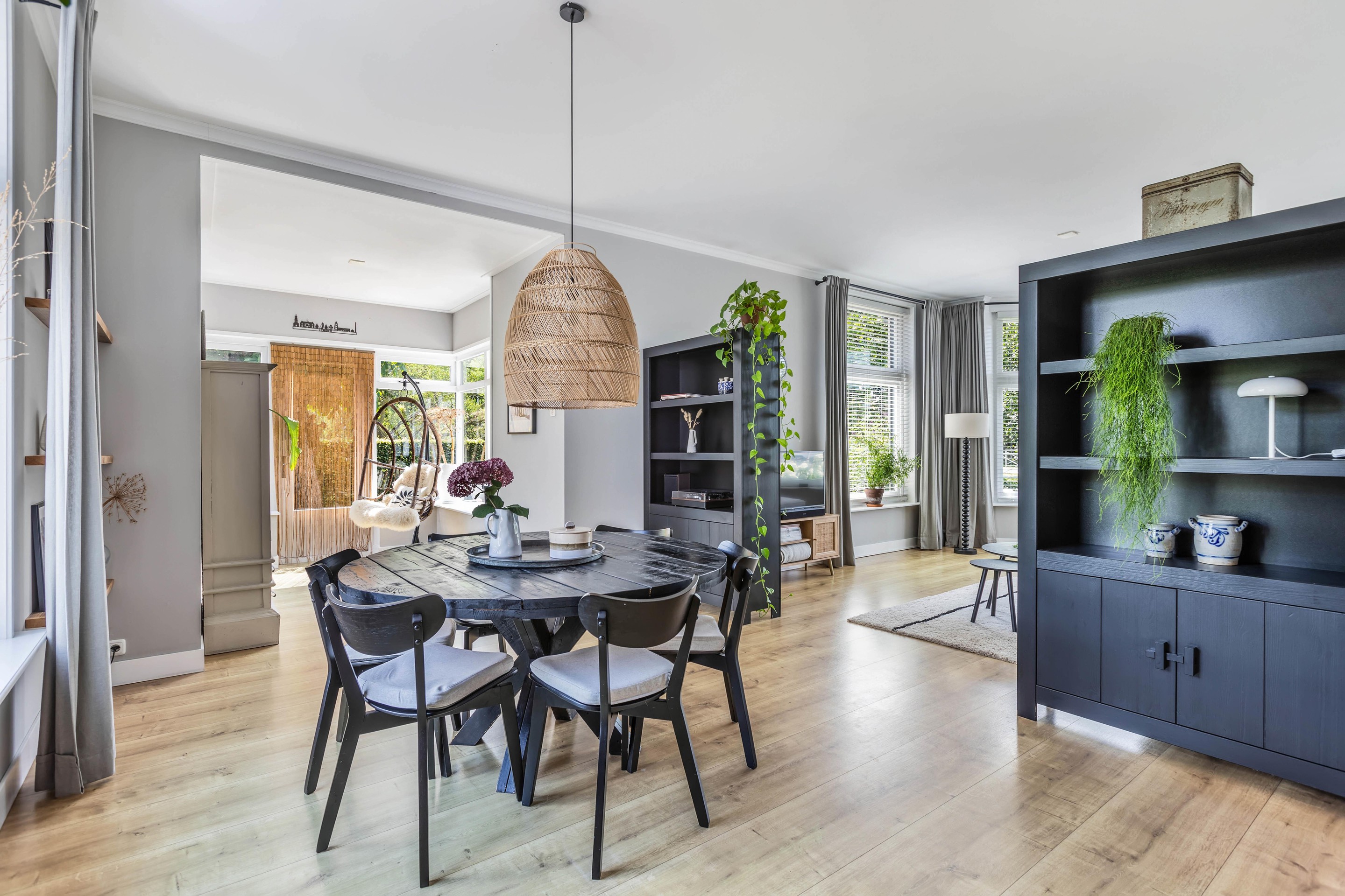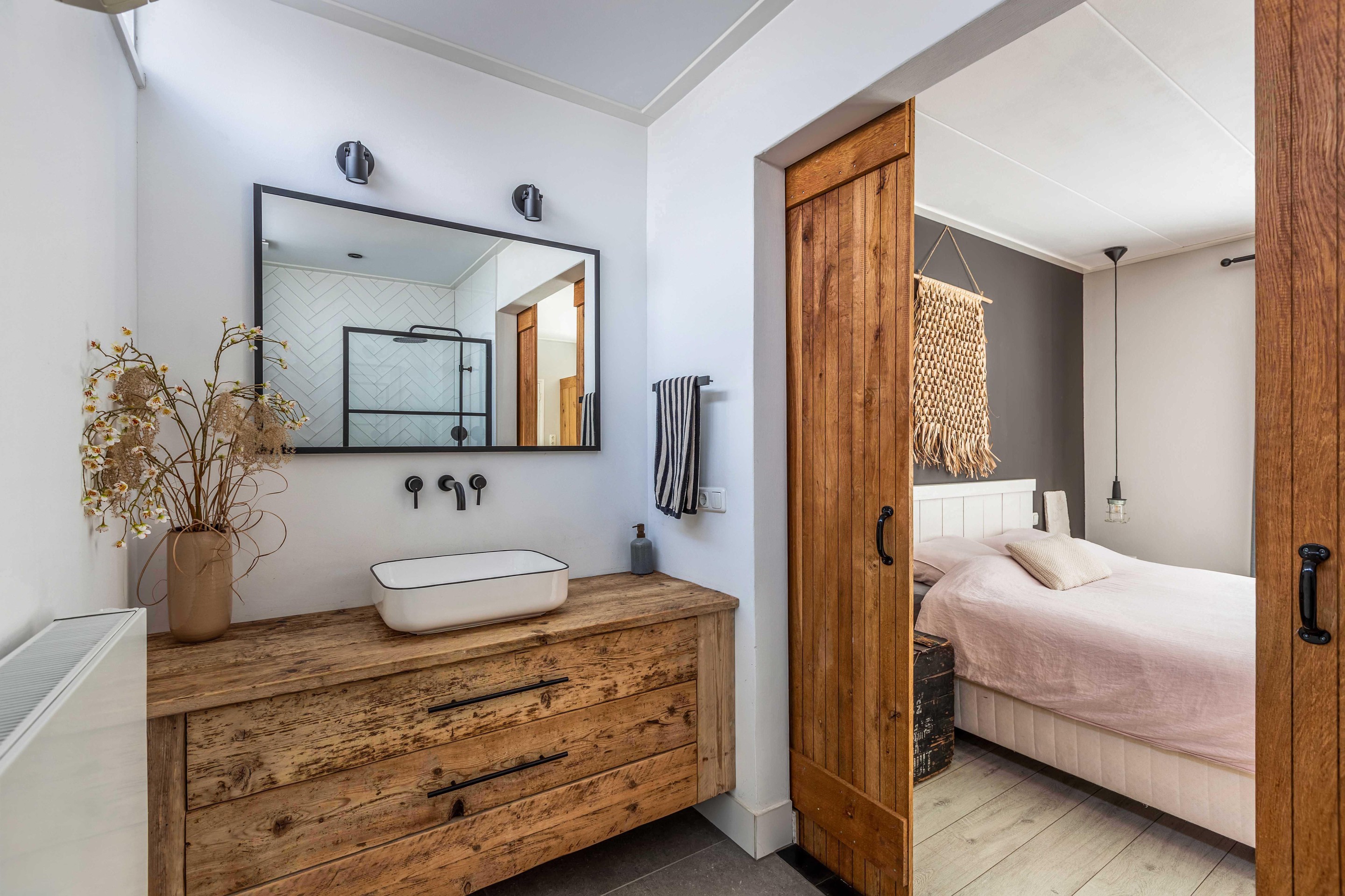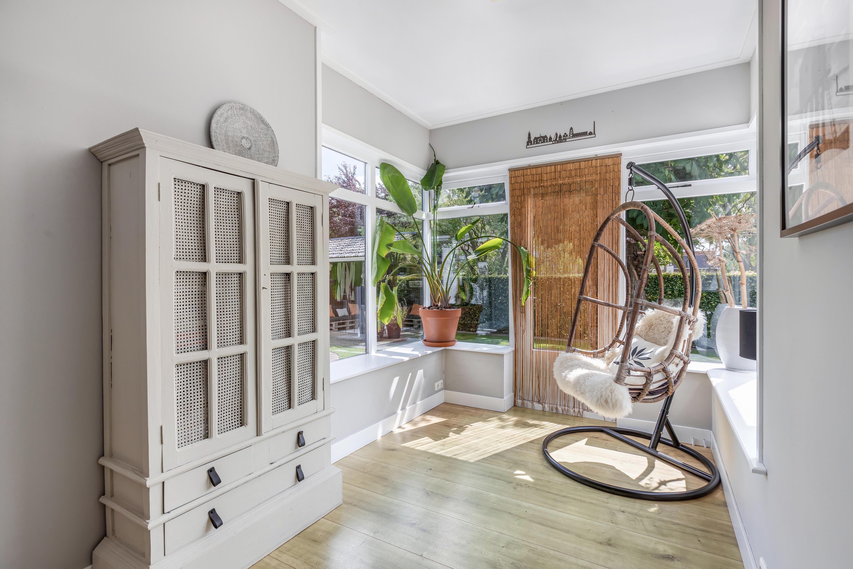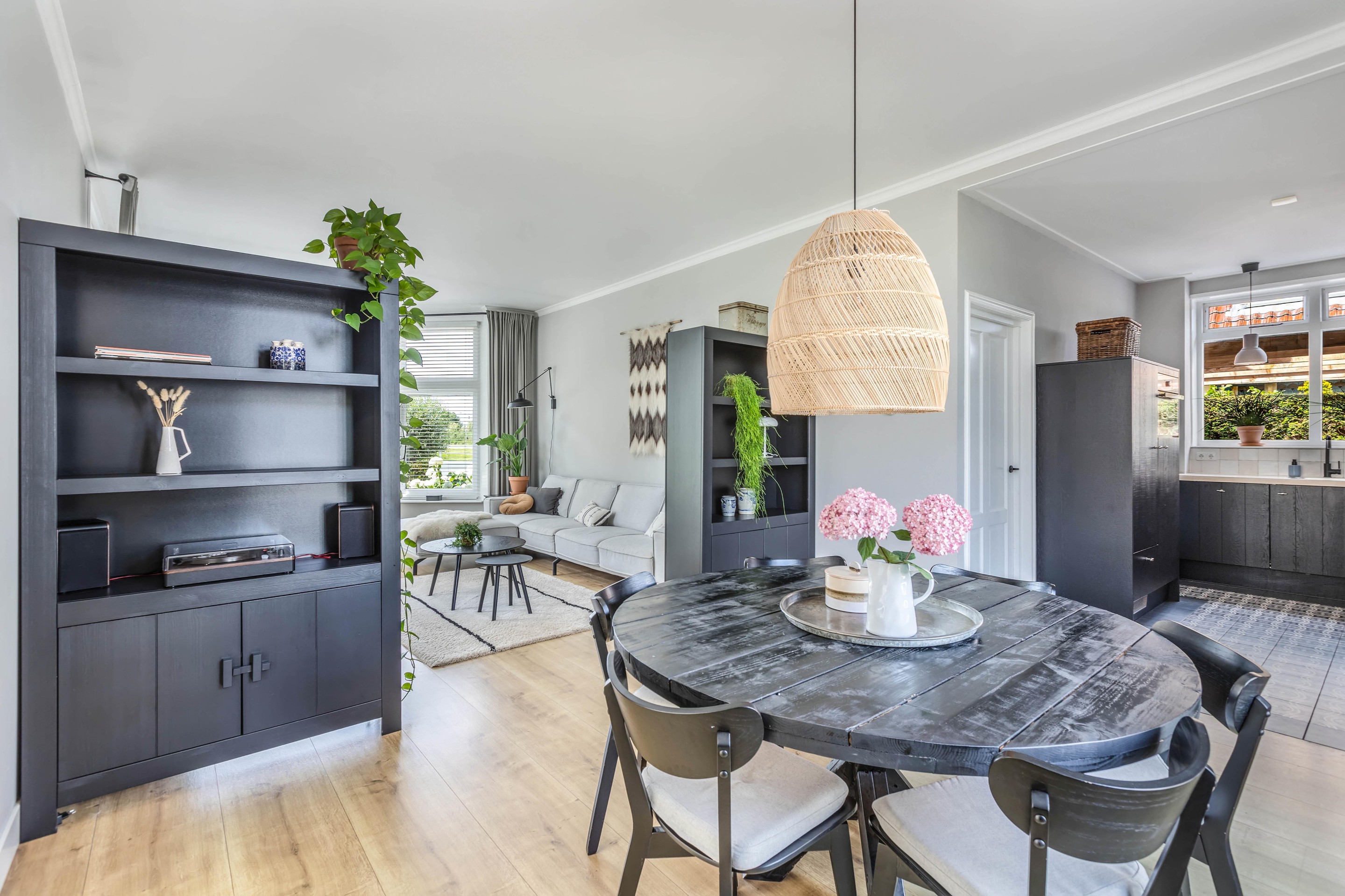 Binnen valt direct het lichte en aangename interieur op. Grote raampartijen zorgen voor een prachtige lichtinval en versterken het ruimtelijke gevoel in huis. De indeling is bijzonder veelzijdig en maakt deze woning geschikt voor uiteenlopende woonwensen. In de oorspronkelijke woning bevinden zich drie slaapkamers en een badkamer op de verdieping. De aanbouw voegt hier nog een extra slaapkamer en badkamer aan toe, terwijl het zelfstandige appartement met eigen keuken, slaapkamer en badkamer tal van mogelijkheden biedt, zoals gebruik voor bed & breakfast, praktijk aan huis, mantelzorg of duowonen.